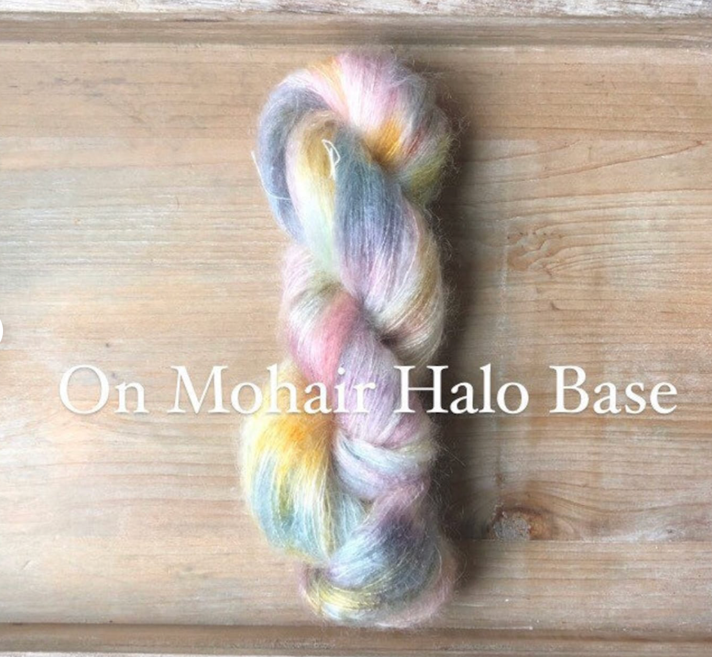 Mohair Halo Base: A delicate, lace weight yarn made up of 72% Superkid Mohair and 28% Mulberry Silk. Each skein is 50 grams and 460 yards, single ply construction. This yarn is lovely on it’s own, but is also amazing when held together with another yarn base. The fuzziness of the mohair creates a halo of colour within your project. Fibres in this base are sourced from South Africa. Hand wash only, lay flat to dry.