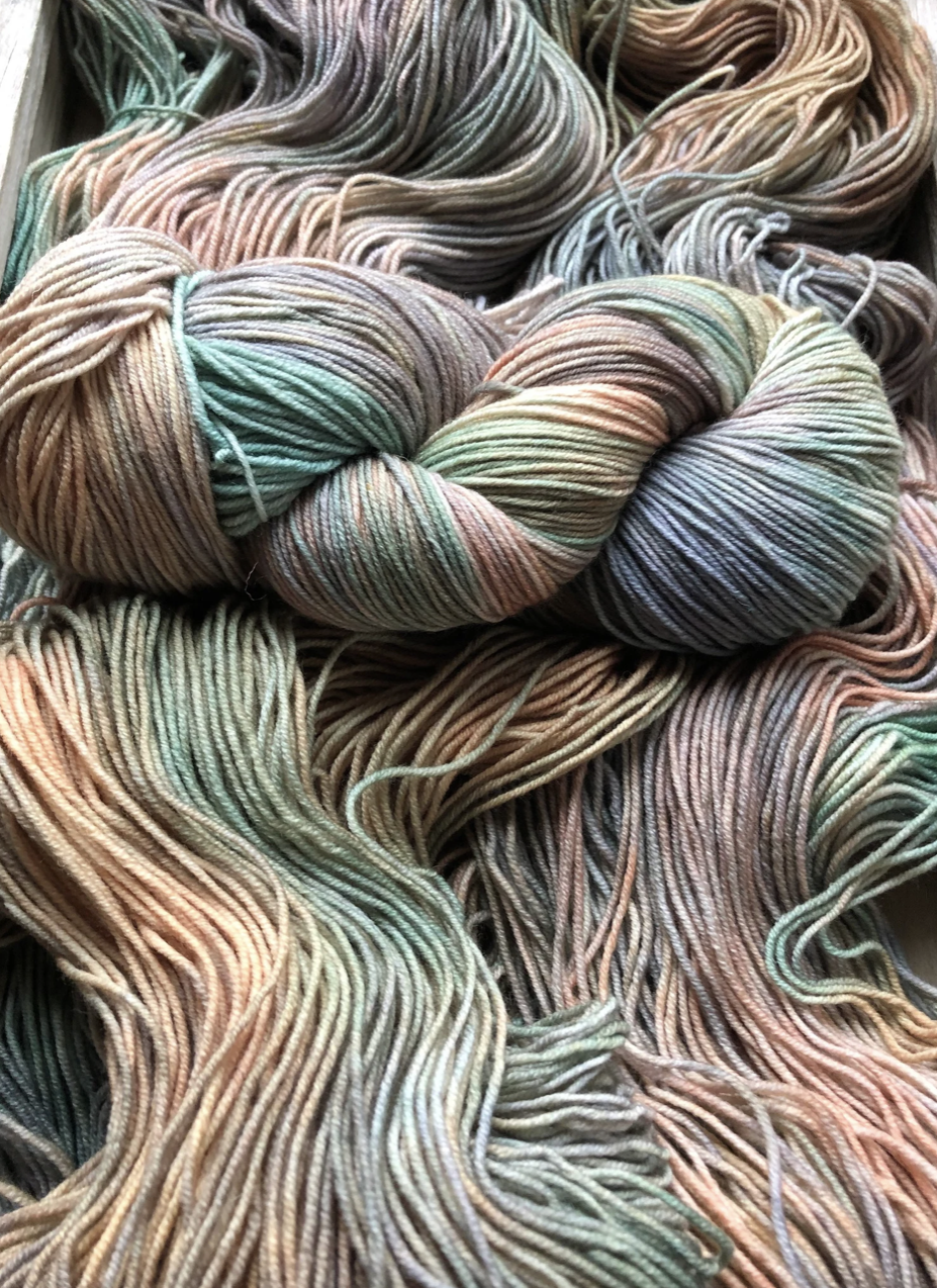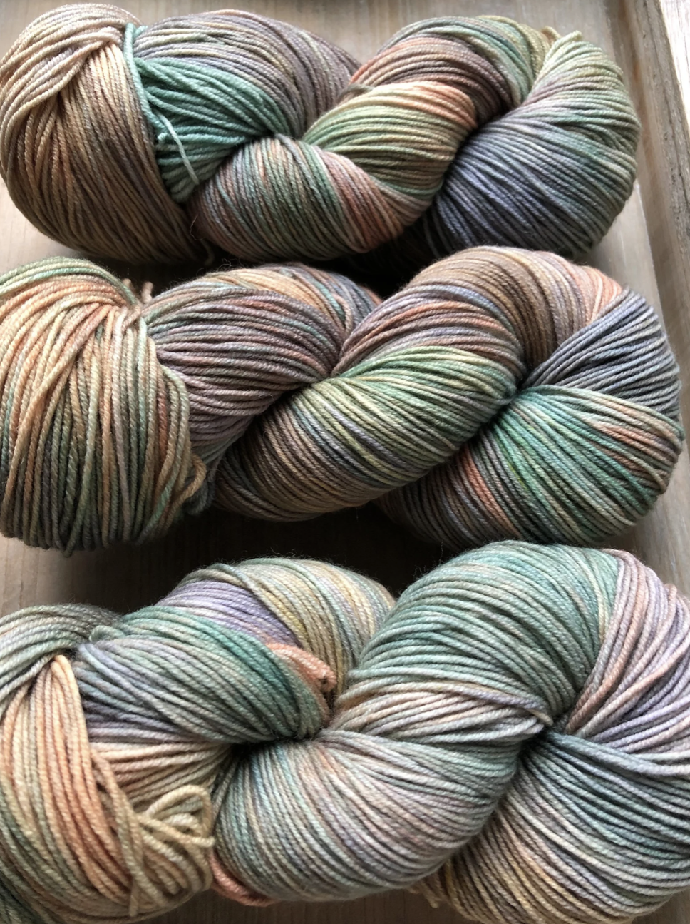 Luxe Sock Base: Luxe Sock is made up of 75% Ultra Fine Merino Wool, 15% Mulberry Silk, and 10% Cashmere. Each skien is 100 grams and 437 yards, 2ply construction. This yarn base is heavenly soft against the skin, and perfect for a special project calling for a high end fingering weight yarn. The Mulberry Silk adds drape and lustre, and the cashmere creates a fuzzy halo effect as you work with it. The colours of dye tend to shine through, looking much more striking and rich compared to some of my samples on Superwash bases. Fibres in this base are sourced from Australia, the wool used in this yarn is ethically produced from sheep that have NOT been mulesed. Hand wash only, lay flat to dry.