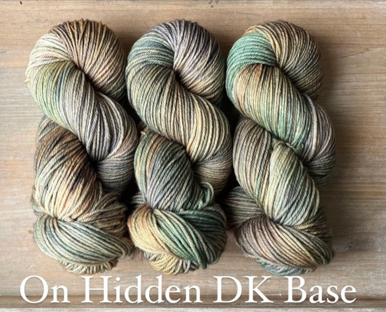 Hidden DK Base: Once a little shop secret, this base is now available all the time! This ultra versatile Double Knit Base is a no-brainer, easy choice for anything meant to wear next to the skin. Made up of 85% Extra Fine Superwash Merino Wool and 15% Nylon, this yarn is unbelievably soft, easy to care for (machine washable on a delicate cycle, in cold water) and takes up the dye colours beautifully. This yarn base (especially) does not agree with the plastic packaging and shipping process, and can often have an off-putting odour upon opening. With a little room to breathe, and some fresh air, you’ll notice it dissipates quickly enough! Each skein is 100 grams and 246 yards, this yarn is a 4ply construction. Fibres in this base are sourced from Australia, the wool used in this yarn is ethically produced from sheep that have NOT been mulesed.