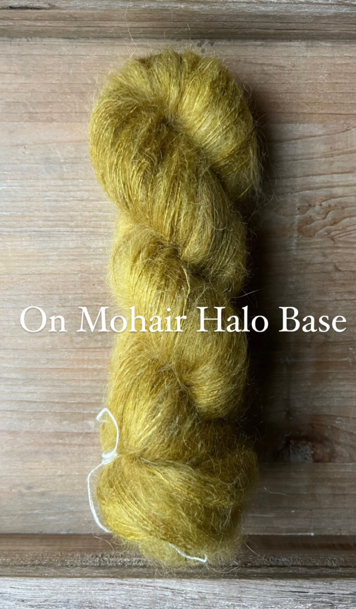 Mohair Halo Base: A delicate, lace weight yarn made up of 72% Superkid Mohair and 28% Mulberry Silk. Each skein is 50 grams and 460 yards, single ply construction. This yarn is lovely on it’s own, but is also amazing when held together with another yarn base. The fuzziness of the mohair creates a halo of colour within your project. Fibres in this base are sourced from South Africa. Hand wash only, lay flat to dry.