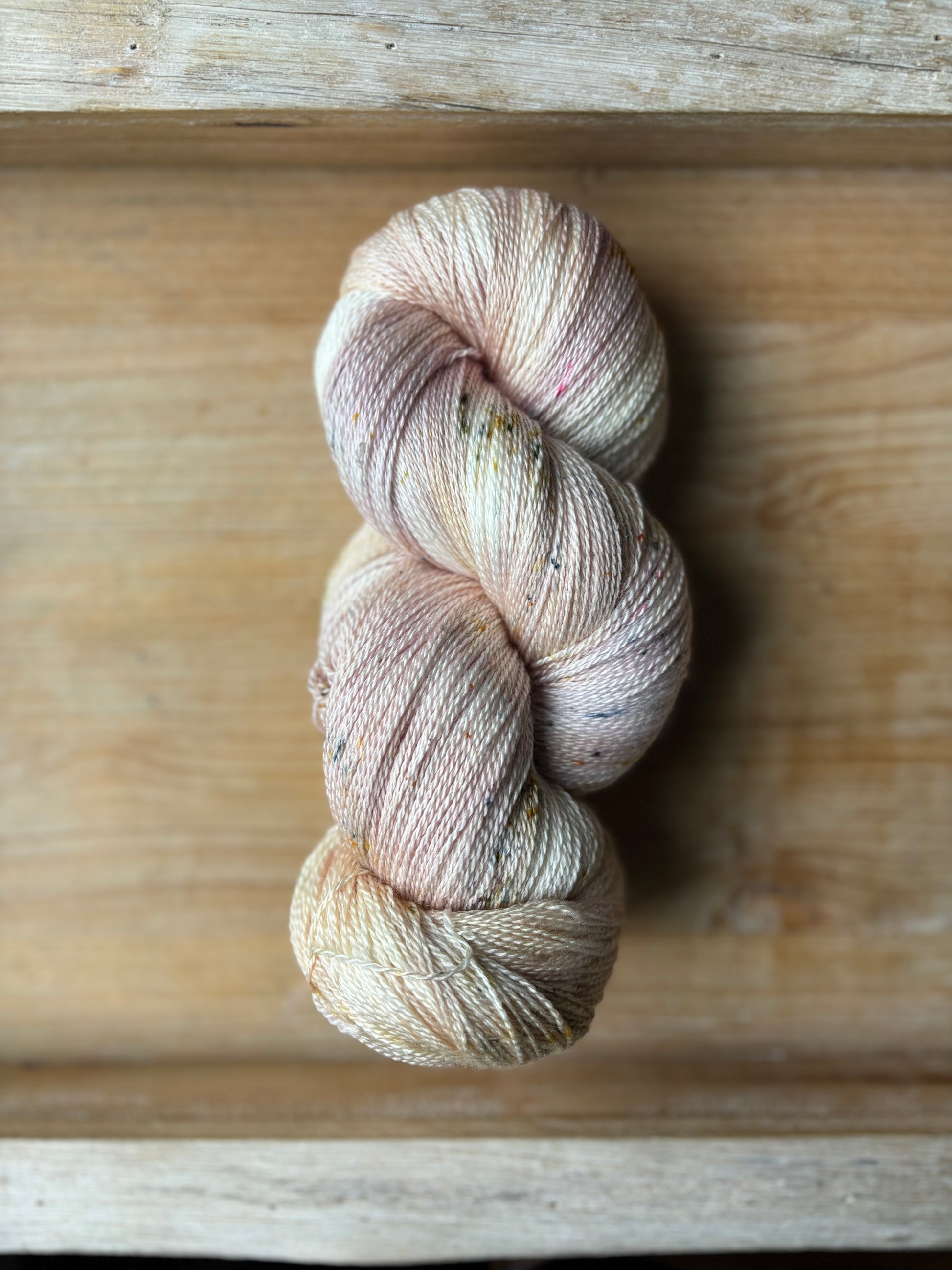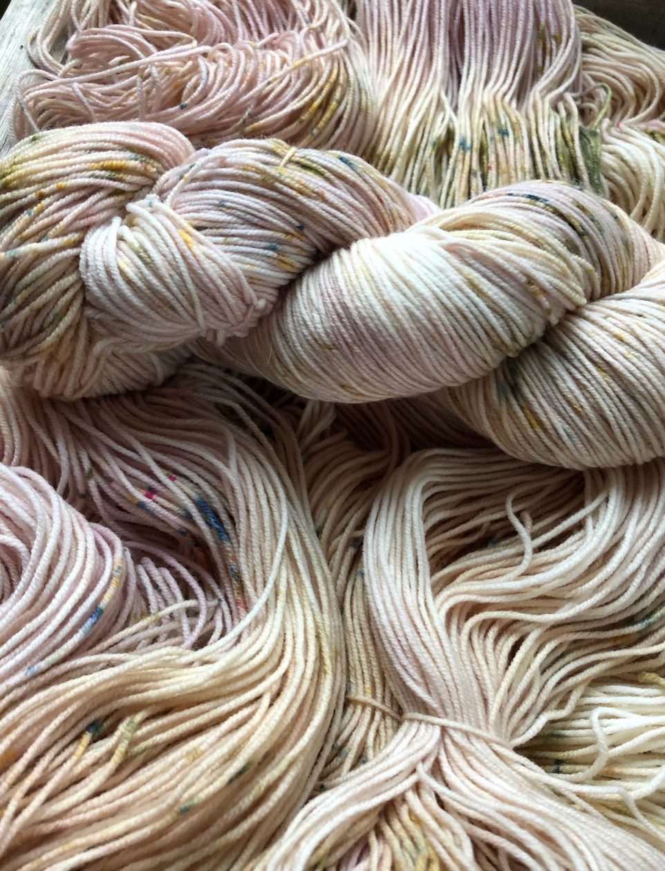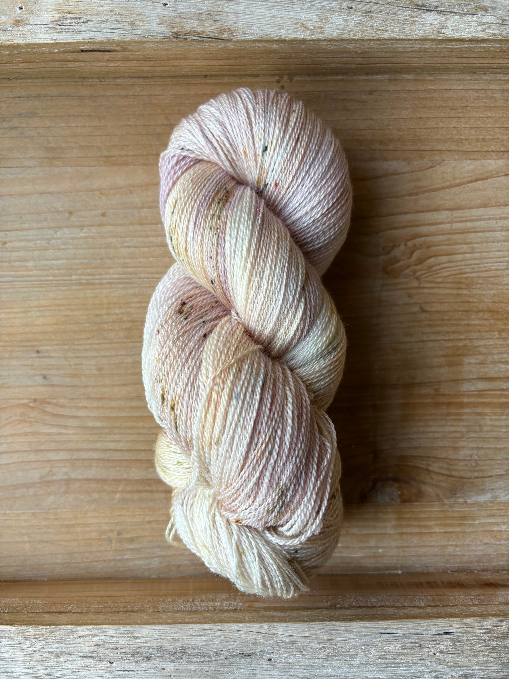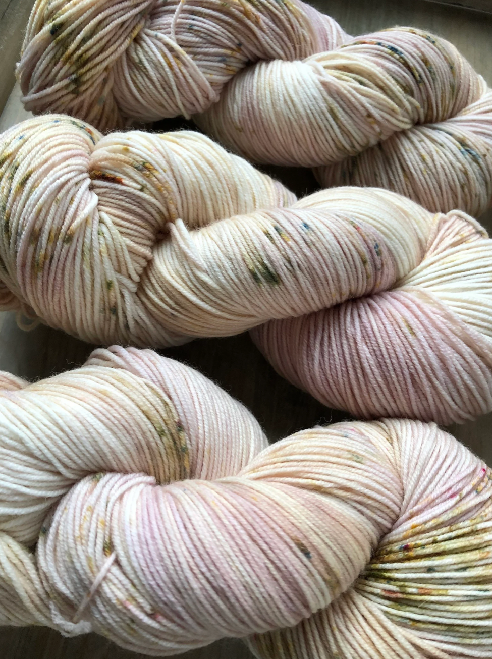 Fairytale is a beautiful, soft and airy pink colourway, with different hues all balanced with hints of creamy beiges, and lots of speckles throughout! A lovely colourway for the romantic at heart.