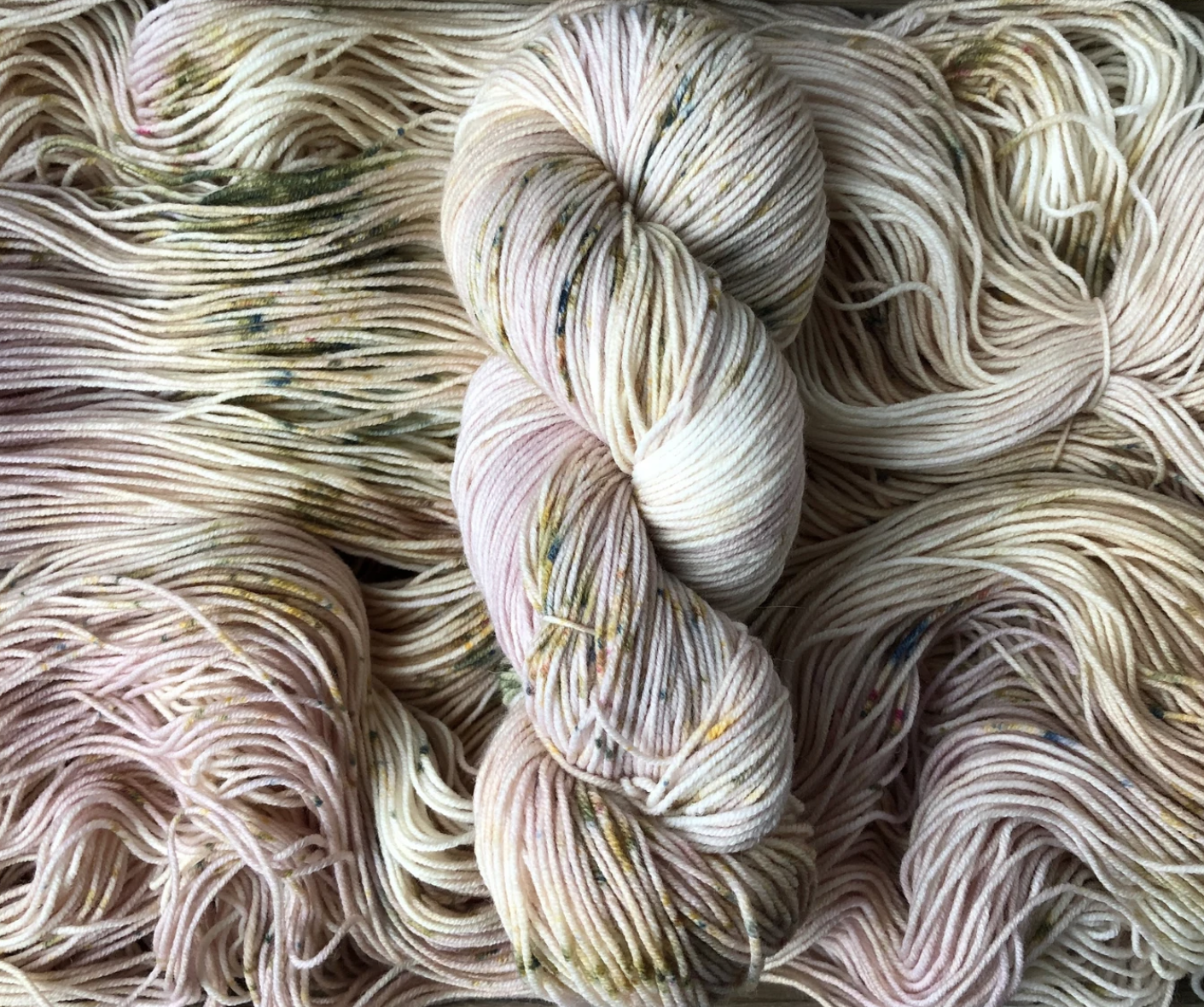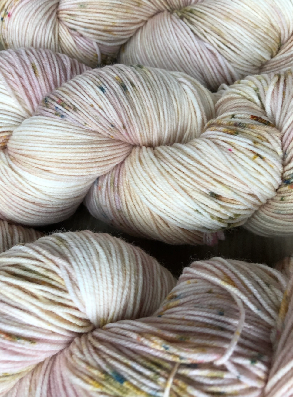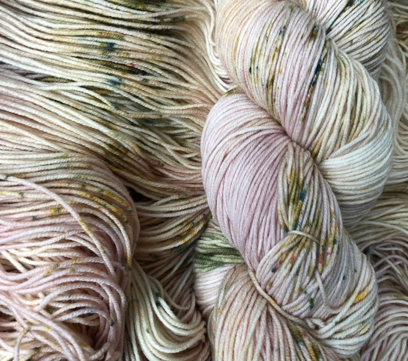 Fairytale is a beautiful, soft and airy pink colourway, with different hues all balanced with hints of creamy beiges, and lots of speckles throughout! A lovely colourway for the romantic at heart.