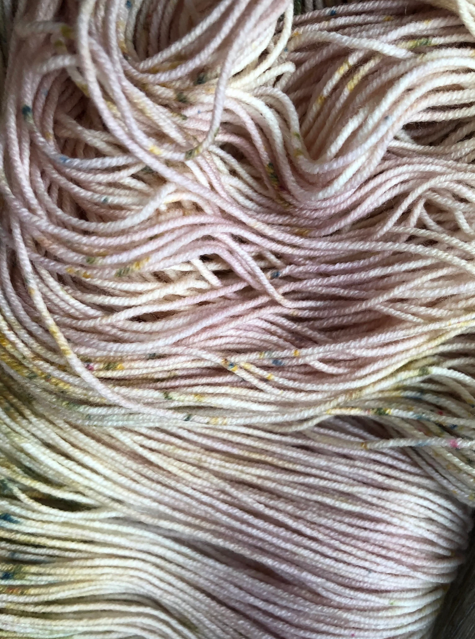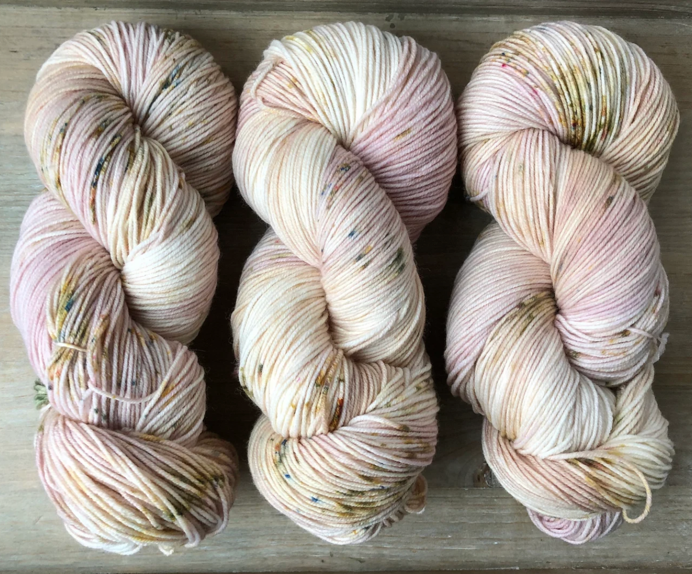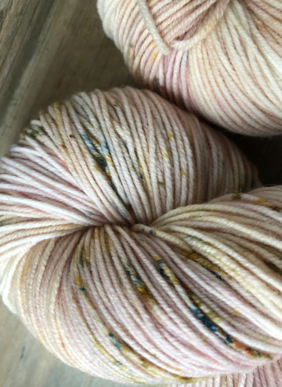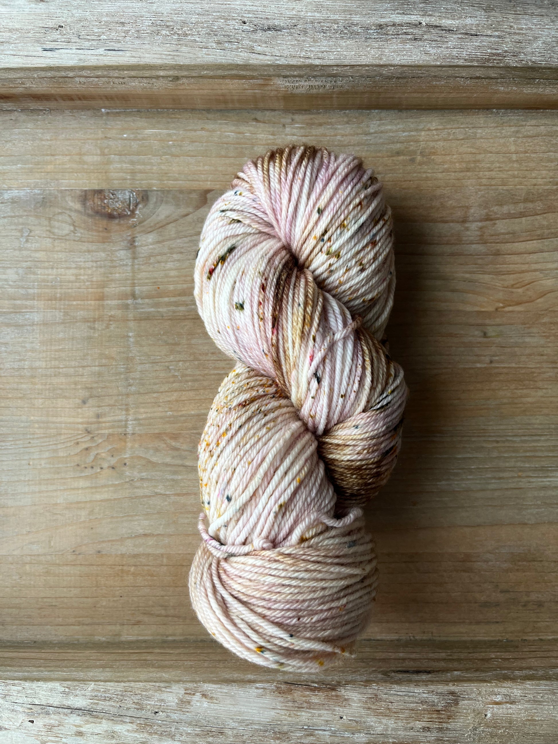 Fairytale is a beautiful, soft and airy pink colourway, with different hues all balanced with hints of creamy beiges, and lots of speckles throughout! A lovely colourway for the romantic at heart.