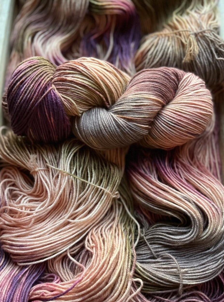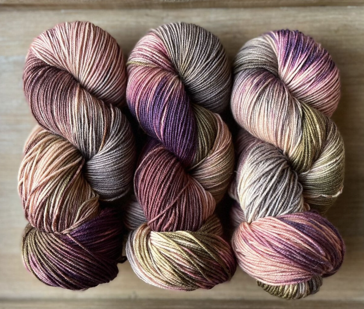 Luxe Sock Base: Luxe Sock is made up of 75% Ultra Fine Merino Wool, 15% Mulberry Silk, and 10% Cashmere. Each skien is 100 grams and 437 yards, 2ply construction. This yarn base is heavenly soft against the skin, and perfect for a special project calling for a high end fingering weight yarn. The Mulberry Silk adds drape and lustre, and the cashmere creates a fuzzy halo effect as you work with it. The colours of dye tend to shine through, looking much more striking and rich compared to some of my samples on Superwash bases. Fibres in this base are sourced from Australia, the wool used in this yarn is ethically produced from sheep that have NOT been mulesed. Hand wash only, lay flat to dry.