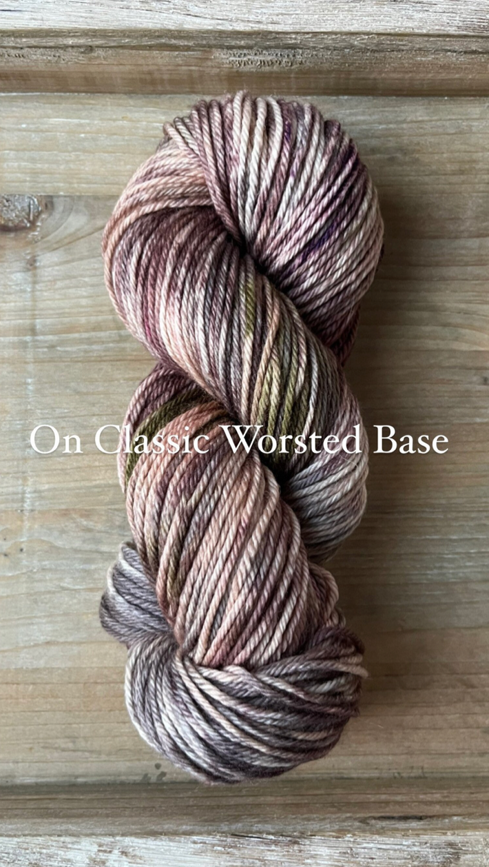Classic Worsted Base: A soft and full Worsted Base yarn, made up of 100% Superwash Merino Wool. Each skein is 110 grams and 205 yards, with a 4 ply construction. It is plush, and versatile, with terrific stitch definition. And thanks to it’s superwash treatment, it is also machine washable on a delicate cycle. A great, practical choice for any project calling for a Worsted Weight base. Fibres in this base are sourced from Australia.