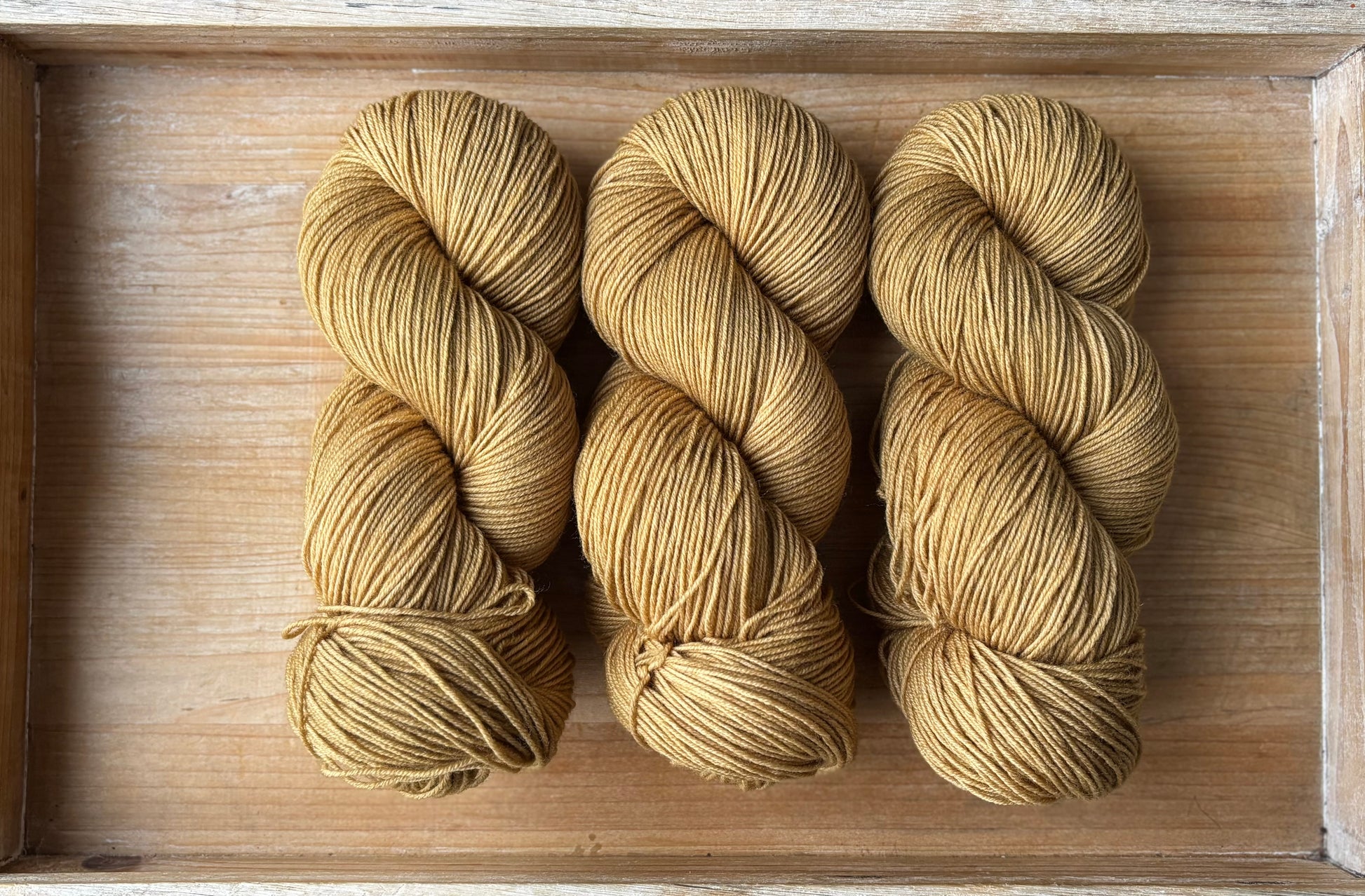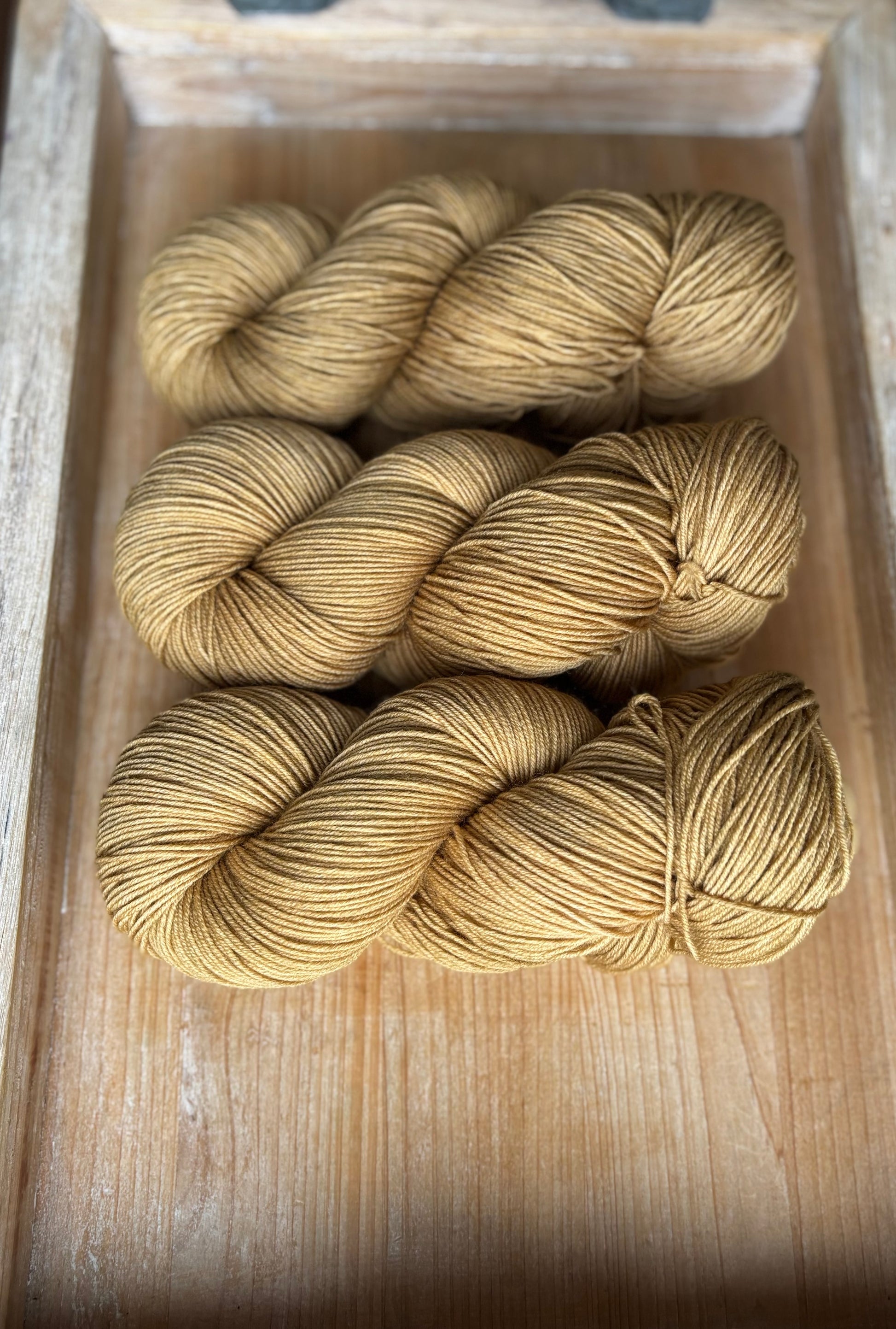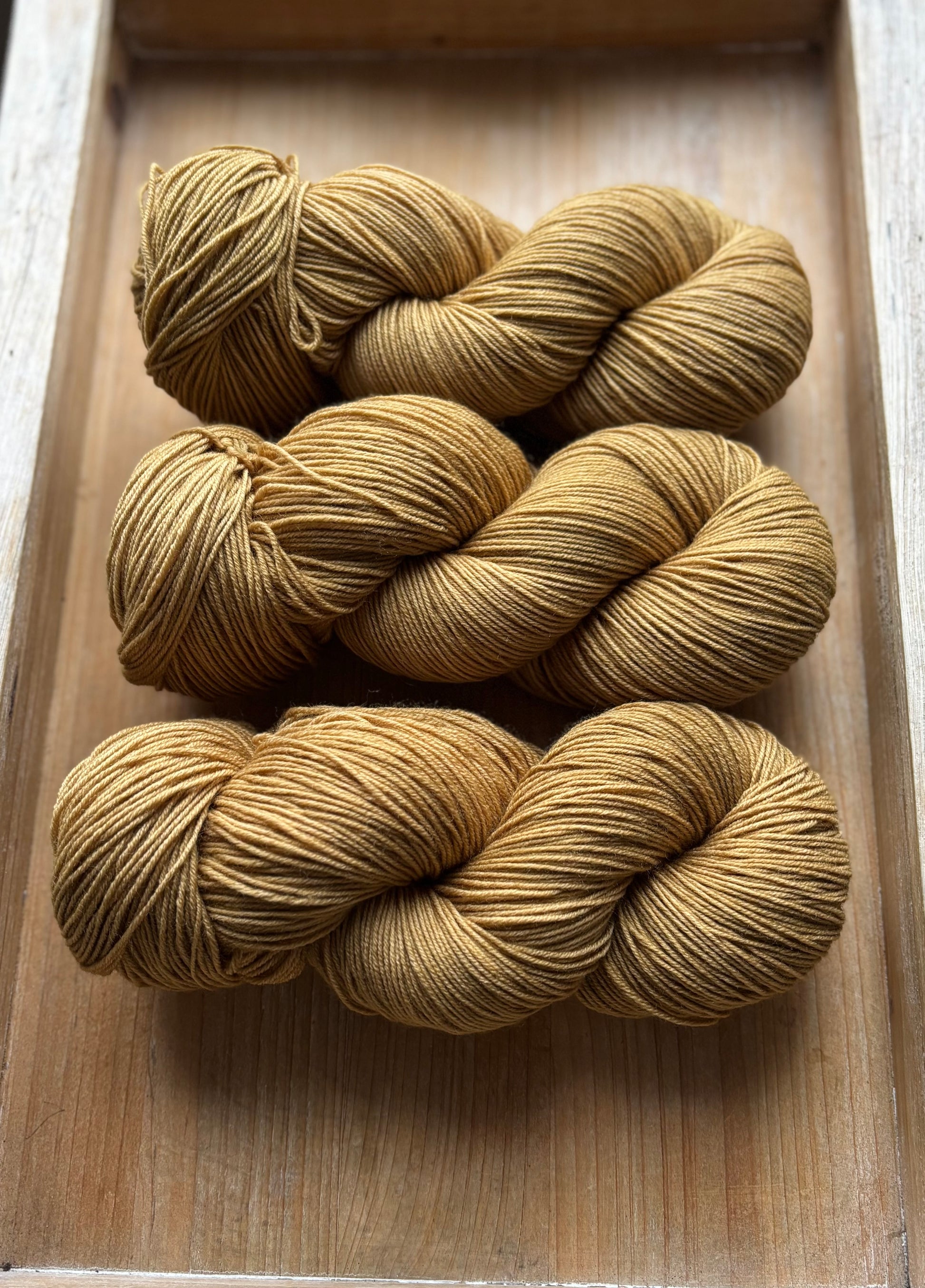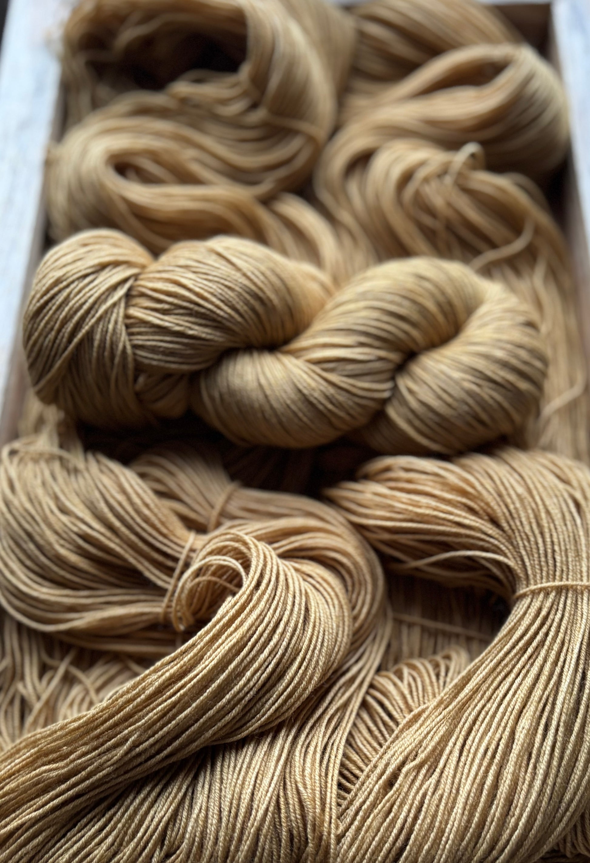Golden Linen is a gentle, dusty gold hue. Not bold or bright in any way, but a warm colour that really compliments other colourways effortlessly. I have some comparison photos, side by side with other colours, but it’s neither brown, nor green, and looks quite soft next to other golds. Golden Linen is in a category all of its own I guess!