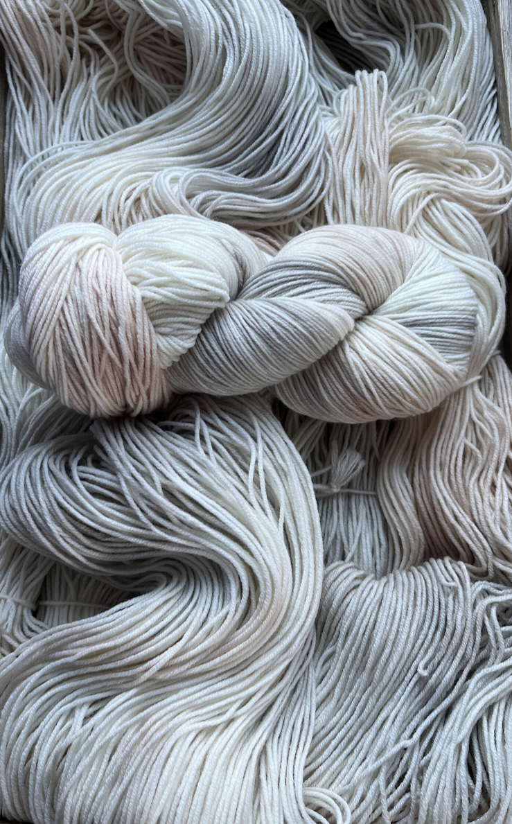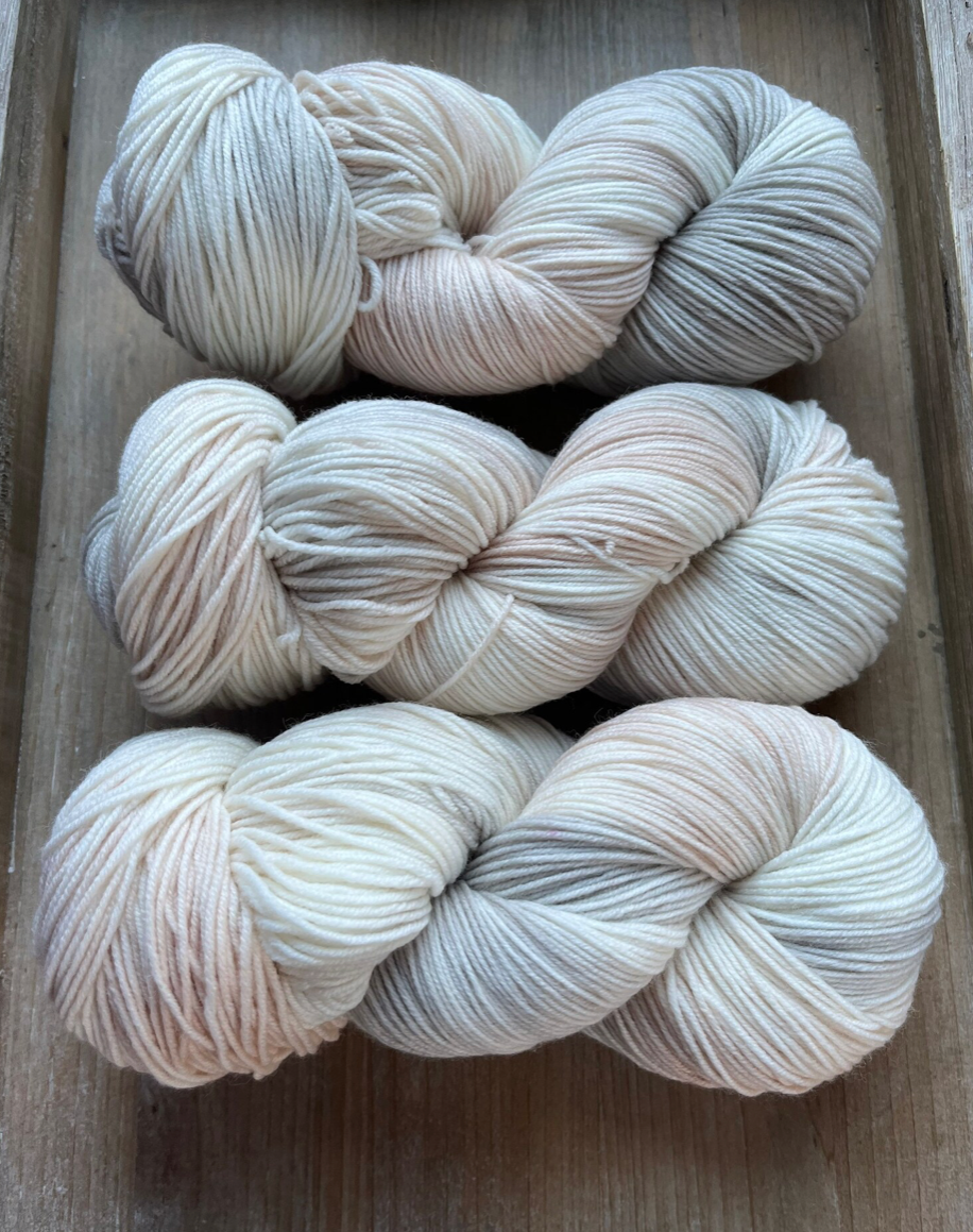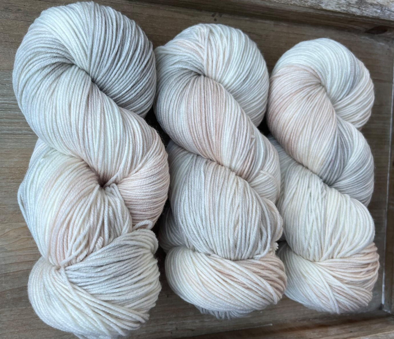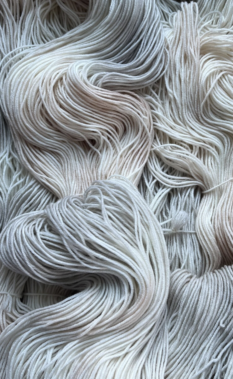 Luxe Sock Base: Luxe Sock is made up of 75% Ultra Fine Merino Wool, 15% Mulberry Silk, and 10% Cashmere. Each skien is 100 grams and 437 yards, 2ply construction. This yarn base is heavenly soft against the skin, and perfect for a special project calling for a high end fingering weight yarn. The Mulberry Silk adds drape and lustre, and the cashmere creates a fuzzy halo effect as you work with it. The colours of dye tend to shine through, looking much more striking and rich compared to some of my samples on Superwash bases. Fibres in this base are sourced from Australia, the wool used in this yarn is ethically produced from sheep that have NOT been mulesed. Hand wash only, lay flat to dry.