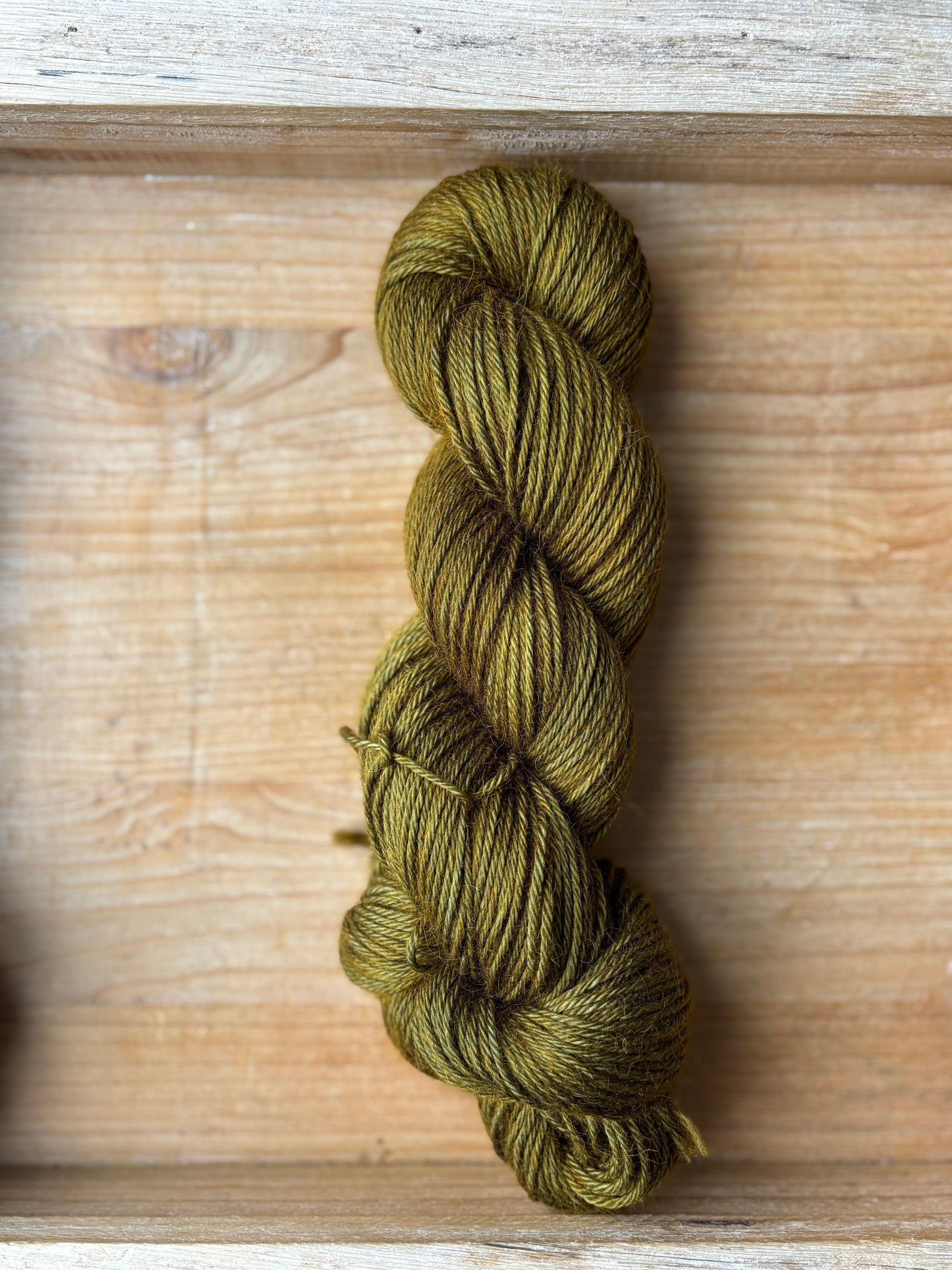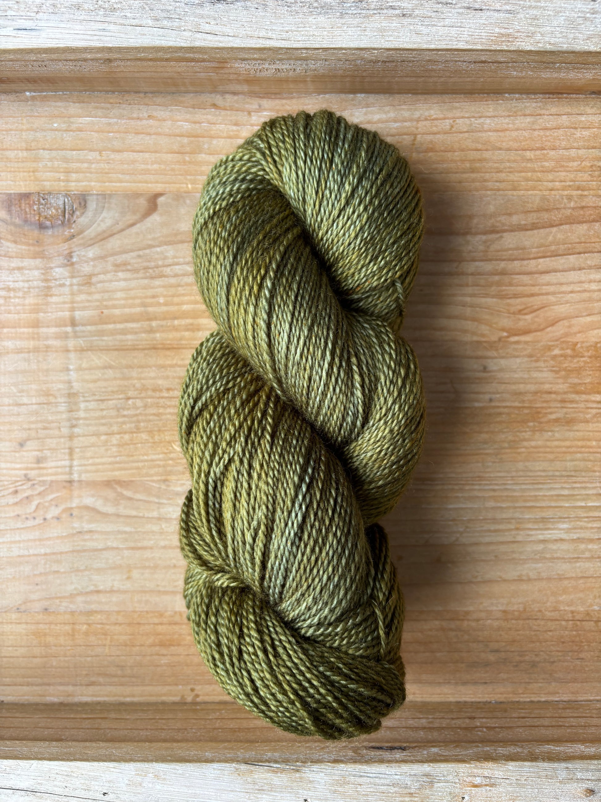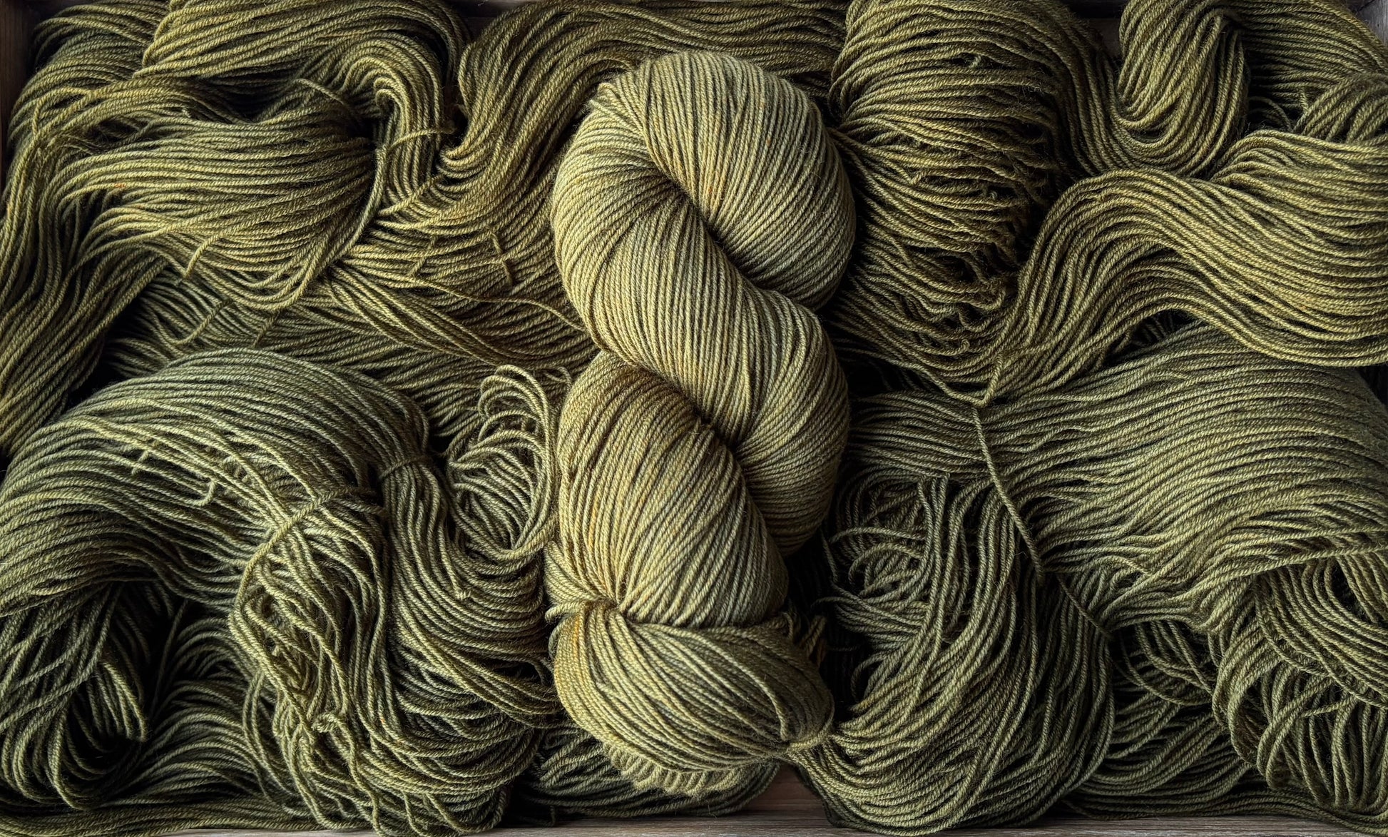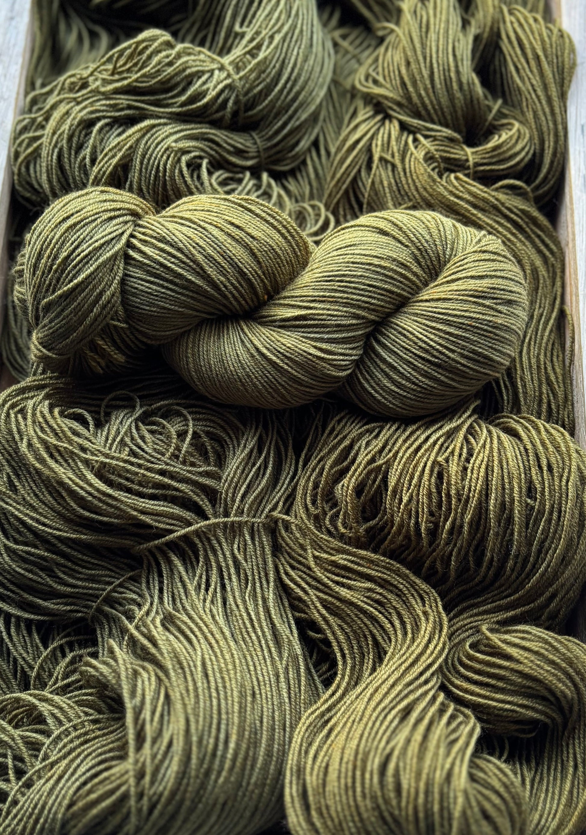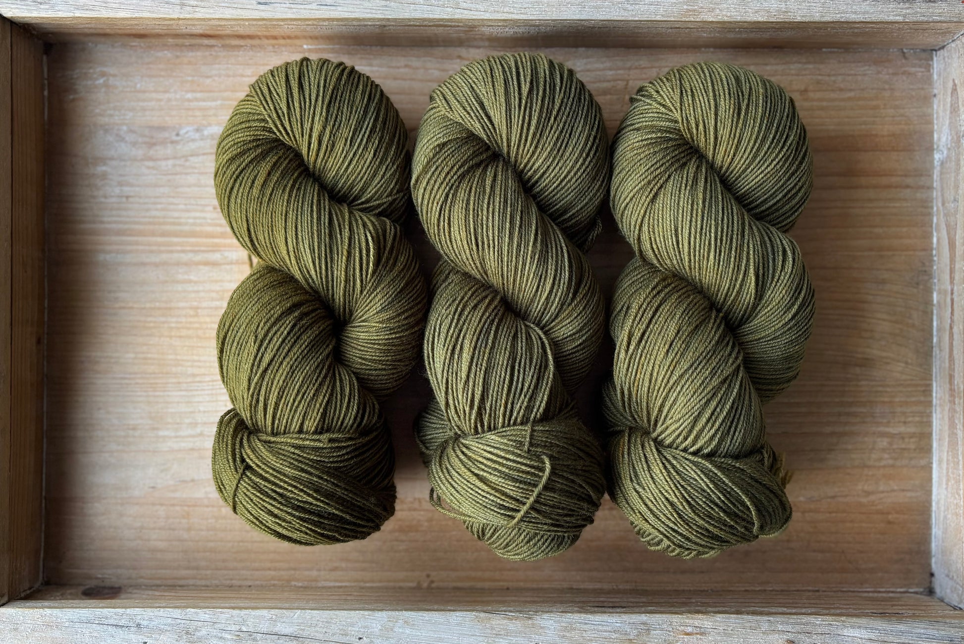 Happy Camper is a dark and bold shade of green! More of an army green by comparison to some others I have in the listings, but less brown than Earthling. Happy Camper will bring the joy to your next knit, with it's lively energy!