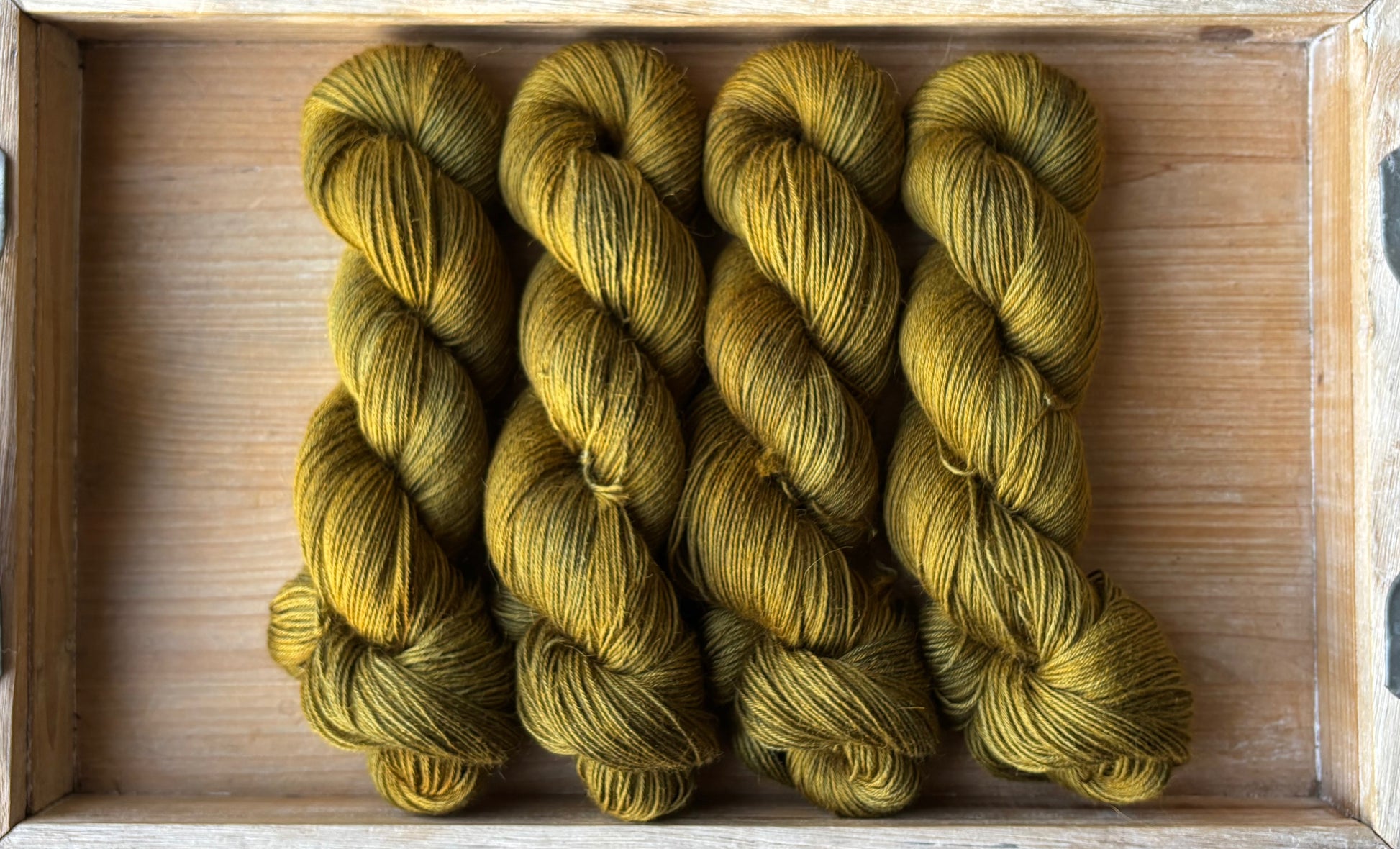 Luxe Sock Base: Luxe Sock is made up of 75% Ultra Fine Merino Wool, 15% Mulberry Silk, and 10% Cashmere. Each skien is 100 grams and 437 yards, 2ply construction. This yarn base is heavenly soft against the skin, and perfect for a special project calling for a high end fingering weight yarn. The Mulberry Silk adds drape and lustre, and the cashmere creates a fuzzy halo effect as you work with it. The colours of dye tend to shine through, looking much more striking and rich compared to some of my samples on Superwash bases. Fibres in this base are sourced from Australia, the wool used in this yarn is ethically produced from sheep that have NOT been mulesed. Hand wash only, lay flat to dry.