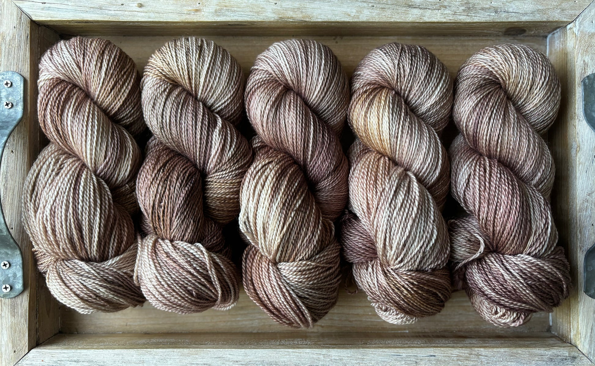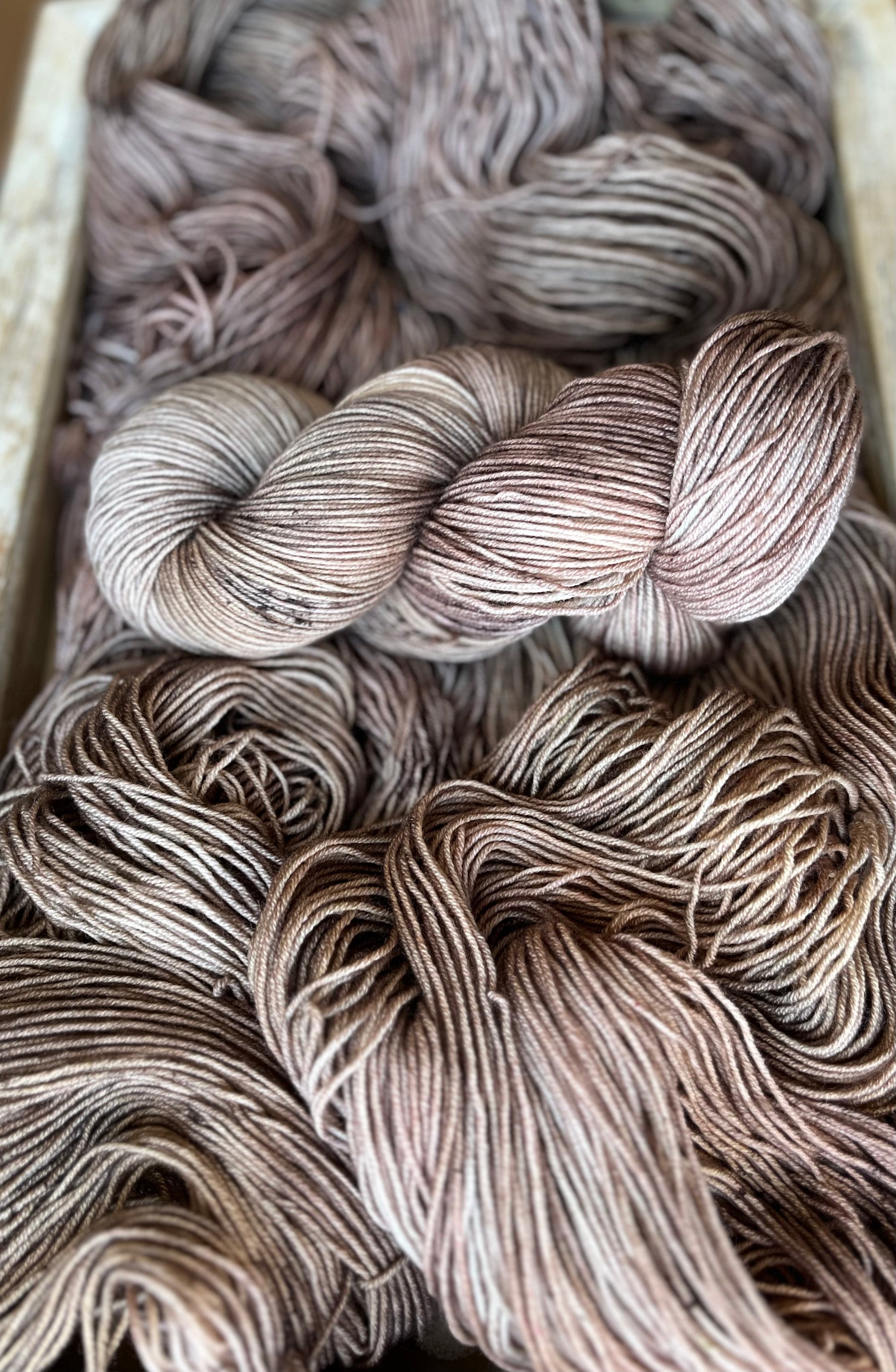 Luxe Sock Base: Luxe Sock is made up of 75% Ultra Fine Merino Wool, 15% Mulberry Silk, and 10% Cashmere. Each skien is 100 grams and 437 yards, 2ply construction. This yarn base is heavenly soft against the skin, and perfect for a special project calling for a high end fingering weight yarn. The Mulberry Silk adds drape and lustre, and the cashmere creates a fuzzy halo effect as you work with it. The colours of dye tend to shine through, looking much more striking and rich compared to some of my samples on Superwash bases. Fibres in this base are sourced from Australia, the wool used in this yarn is ethically produced from sheep that have NOT been mulesed. Hand wash only, lay flat to dry.