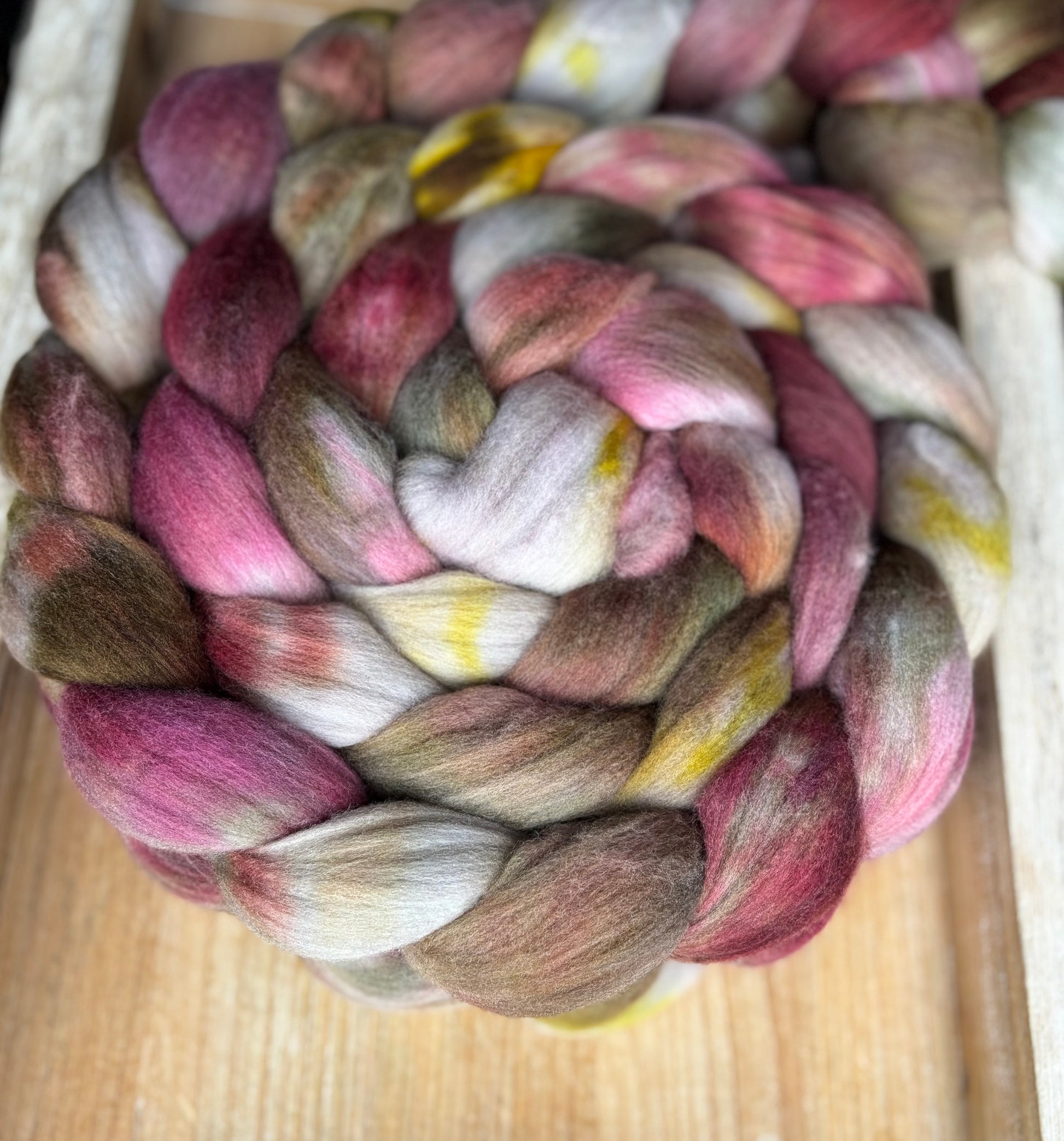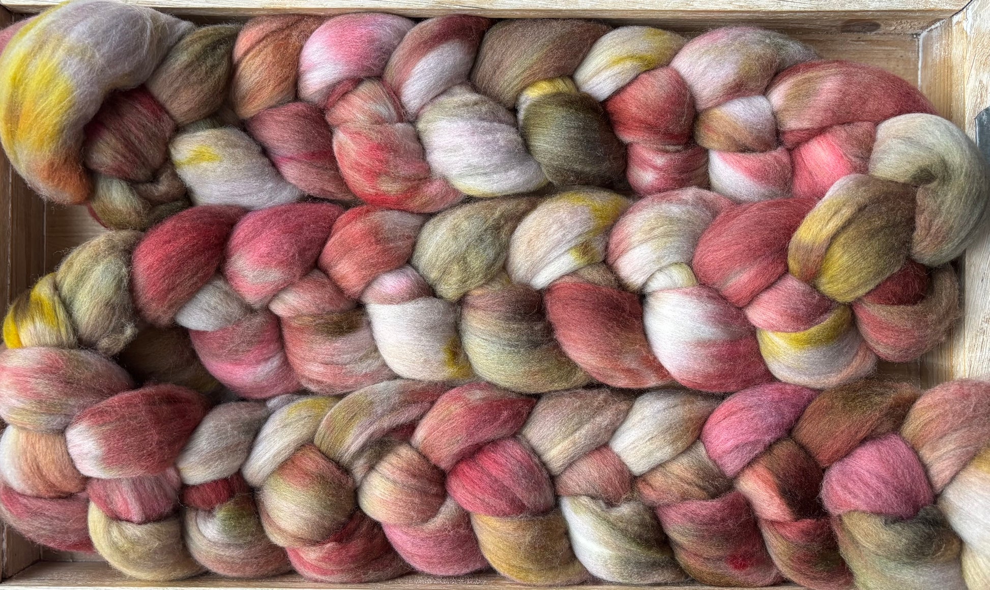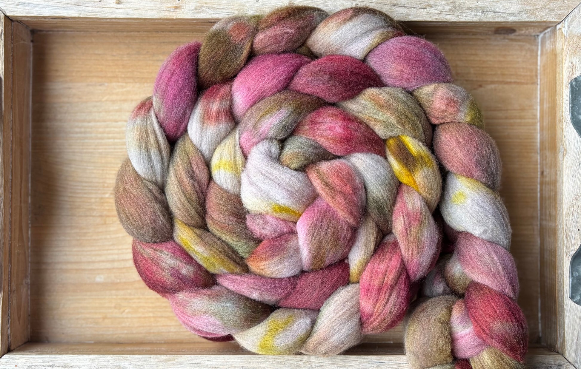 This beautiful, hand dyed merino wool is ultra soft, smooth and buttery. Being an untreated wool, we need to be very gentle when washing and dyeing this product in roving form. Once it's spun into yarn, I recommend hand washing in cold water, with a gentle wool wash, and lay flat to dry.