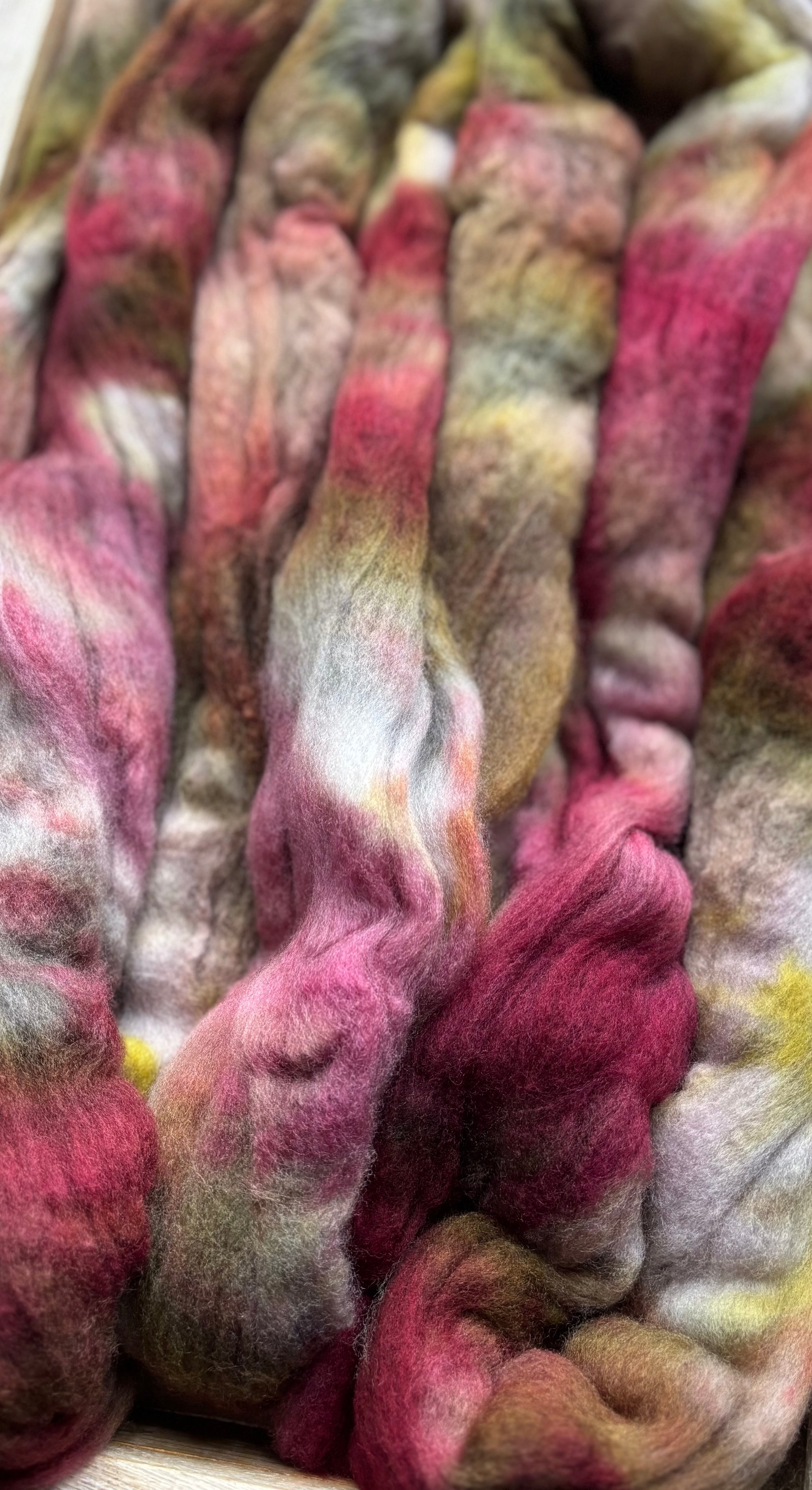 One of a Kind Batch - 100 grams of Spinning Fibre - Untreated Merino Wool 22 Micron - Hand Dyed Combed Top