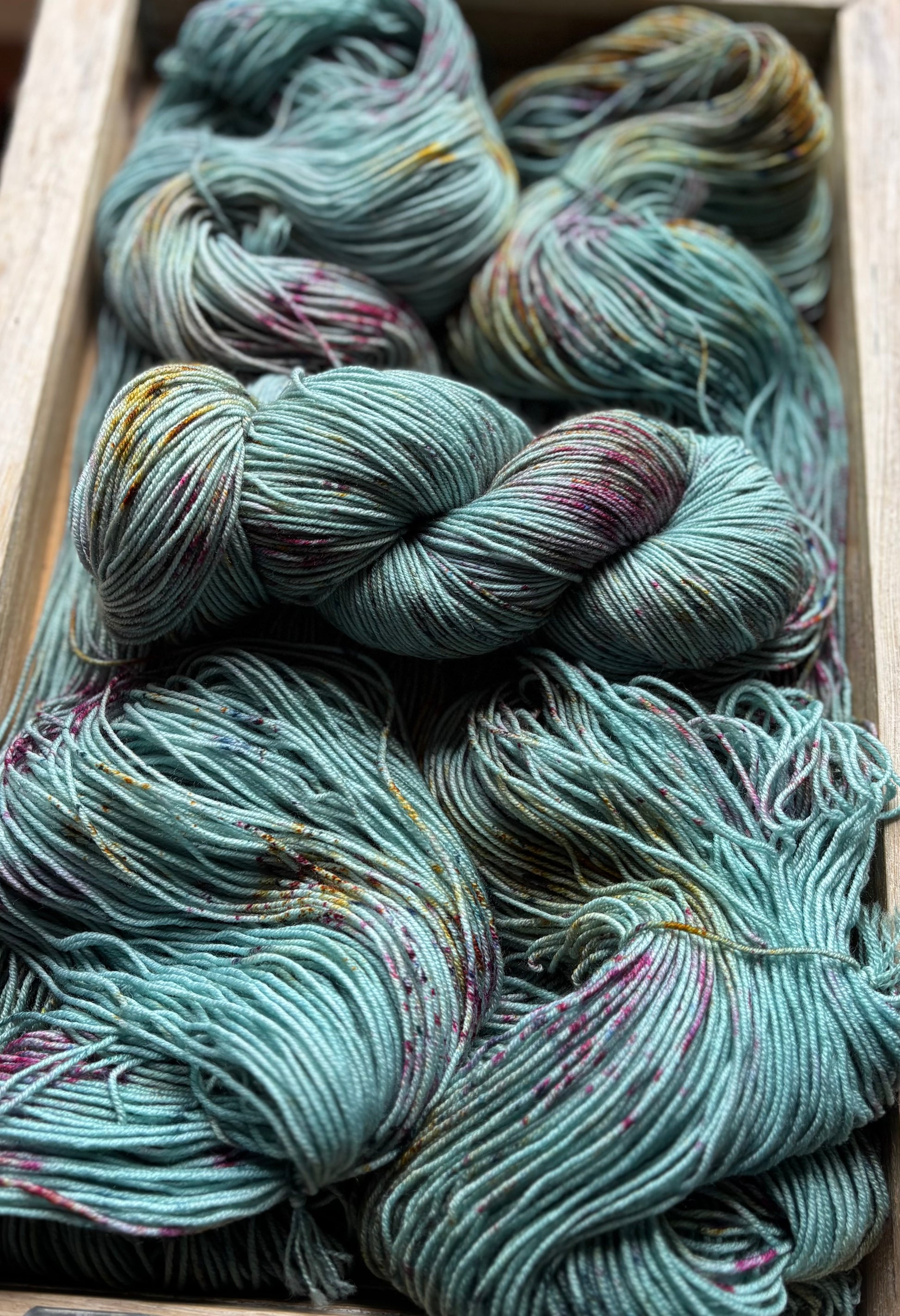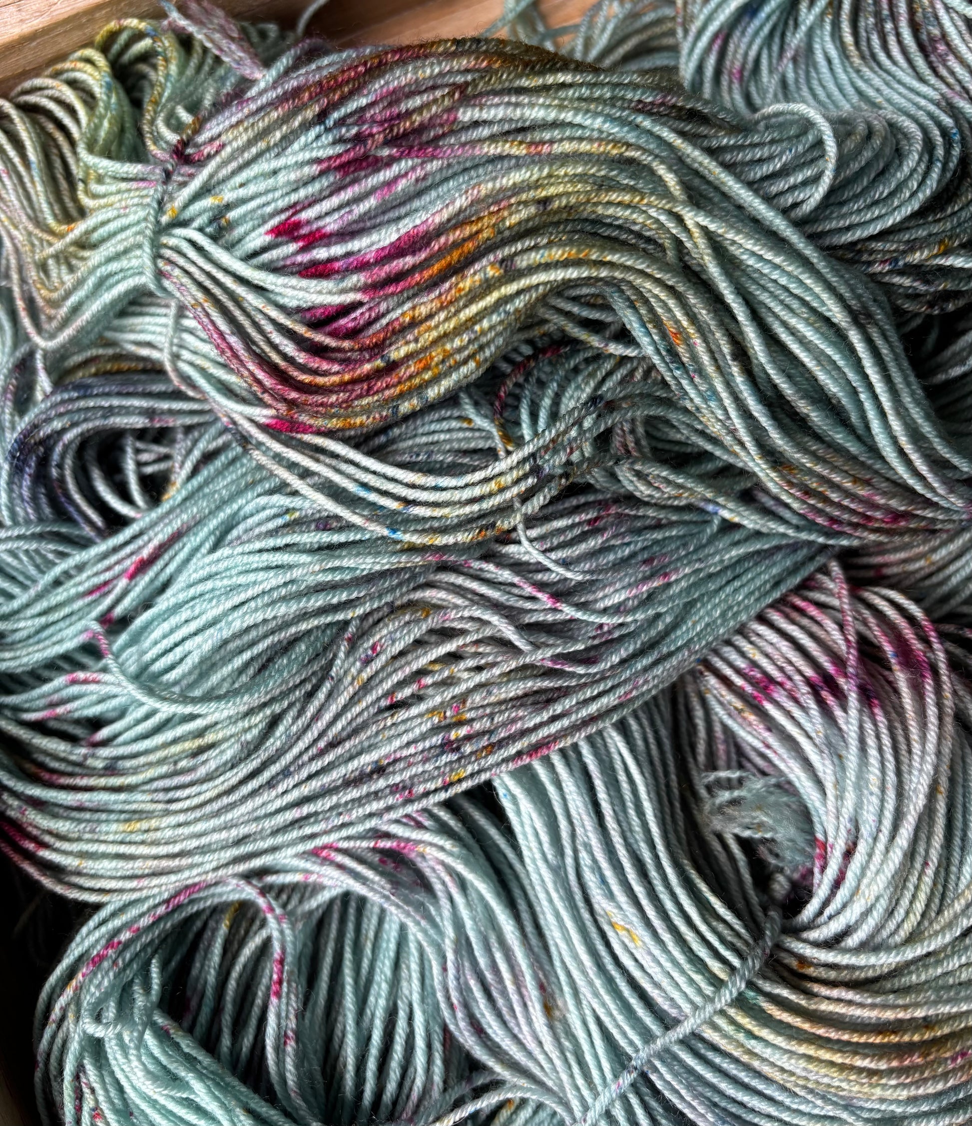 Luxe Sock Base: Luxe Sock is made up of 75% Ultra Fine Merino Wool, 15% Mulberry Silk, and 10% Cashmere. Each skien is 100 grams and 437 yards, 2ply construction. This yarn base is heavenly soft against the skin, and perfect for a special project calling for a high end fingering weight yarn. The Mulberry Silk adds drape and lustre, and the cashmere creates a fuzzy halo effect as you work with it. The colours of dye tend to shine through, looking much more striking and rich compared to some of my samples on Superwash bases. Fibres in this base are sourced from Australia, the wool used in this yarn is ethically produced from sheep that have NOT been mulesed. Hand wash only, lay flat to dry.