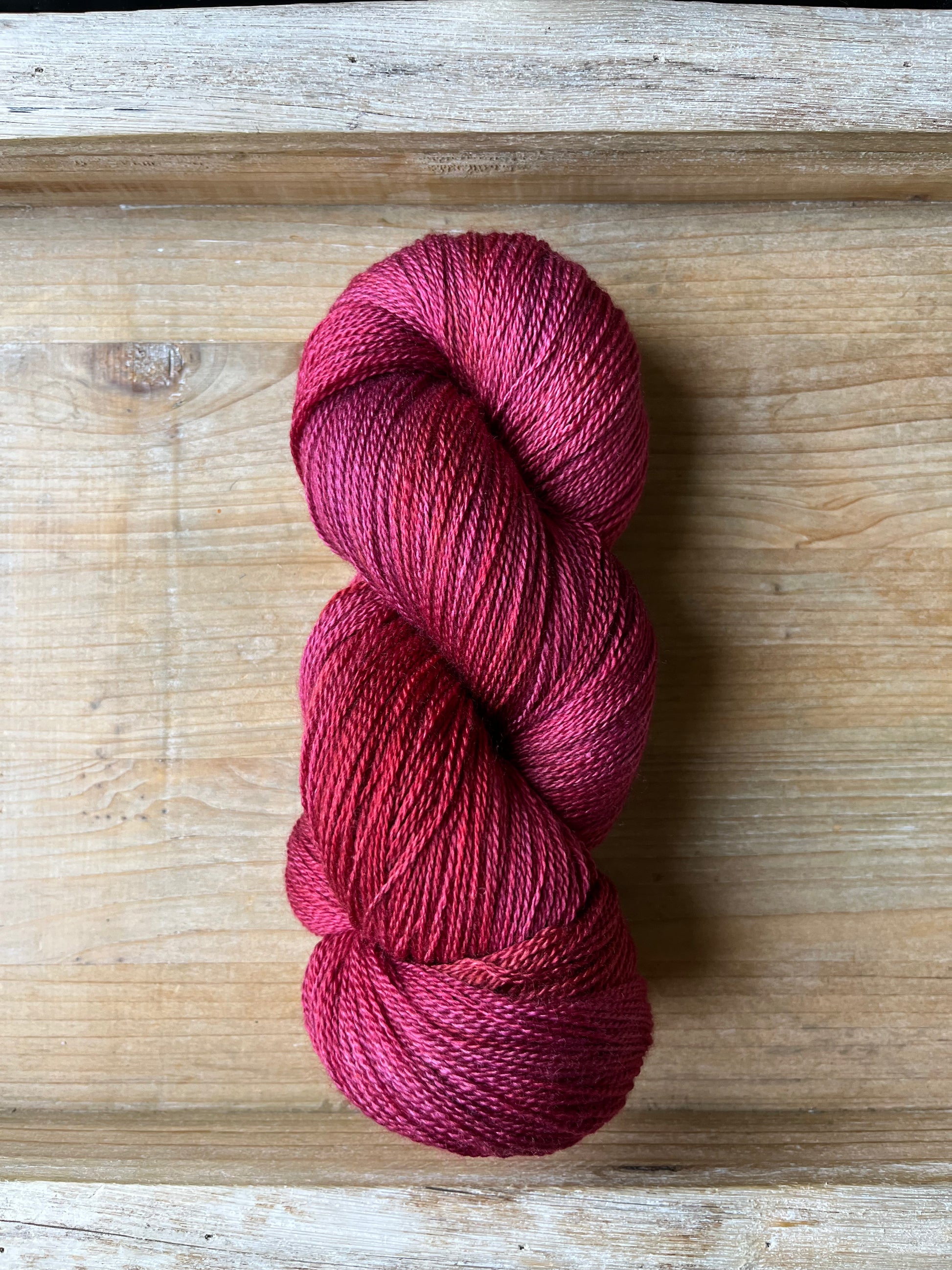 Lustrous Lace Base: This very thin, very fine lace weight yarn is both luxurious yet practical. Made up of 75% Extrafine Superwash Merino, and 25% Mulberry Silk, this base is so very soft, and the colours of dye simply glow throughout each skein. 100 grams and 875 yards, this yarn base is a 2ply construction. A stunning choice for shawls and light summer garments, this yarn base has a lovely drape and is very comfortable to wear next to the skin. Fibres in this base are sourced from Australia, the wool used in this yarn is ethically produced from sheep that have NOT been mulesed.. Hand wash only, lay flat to dry.