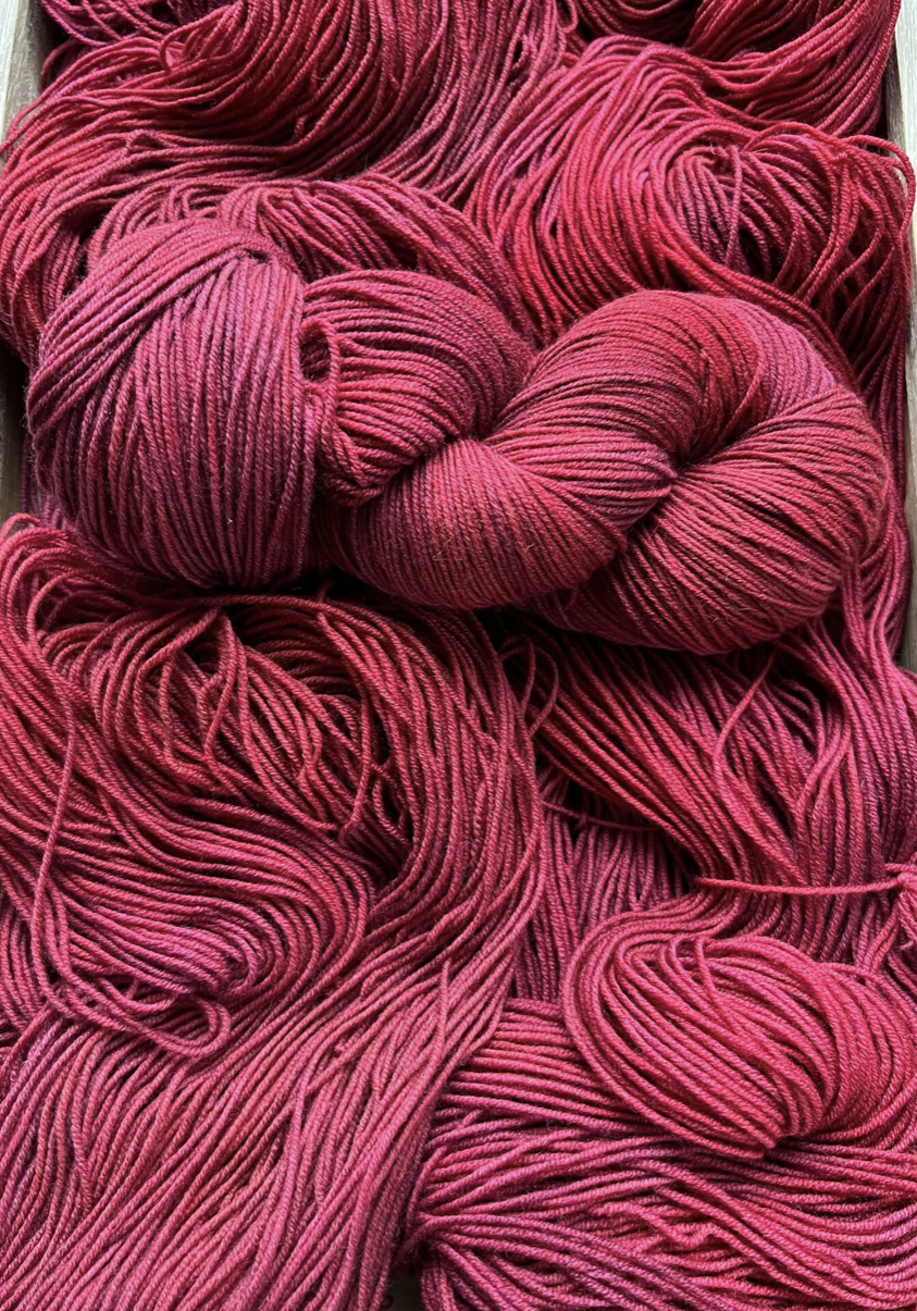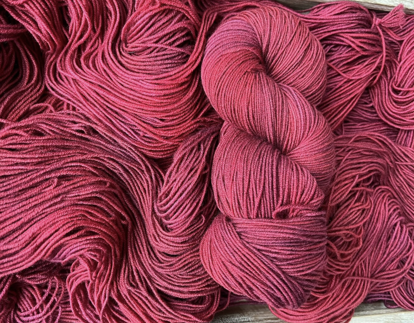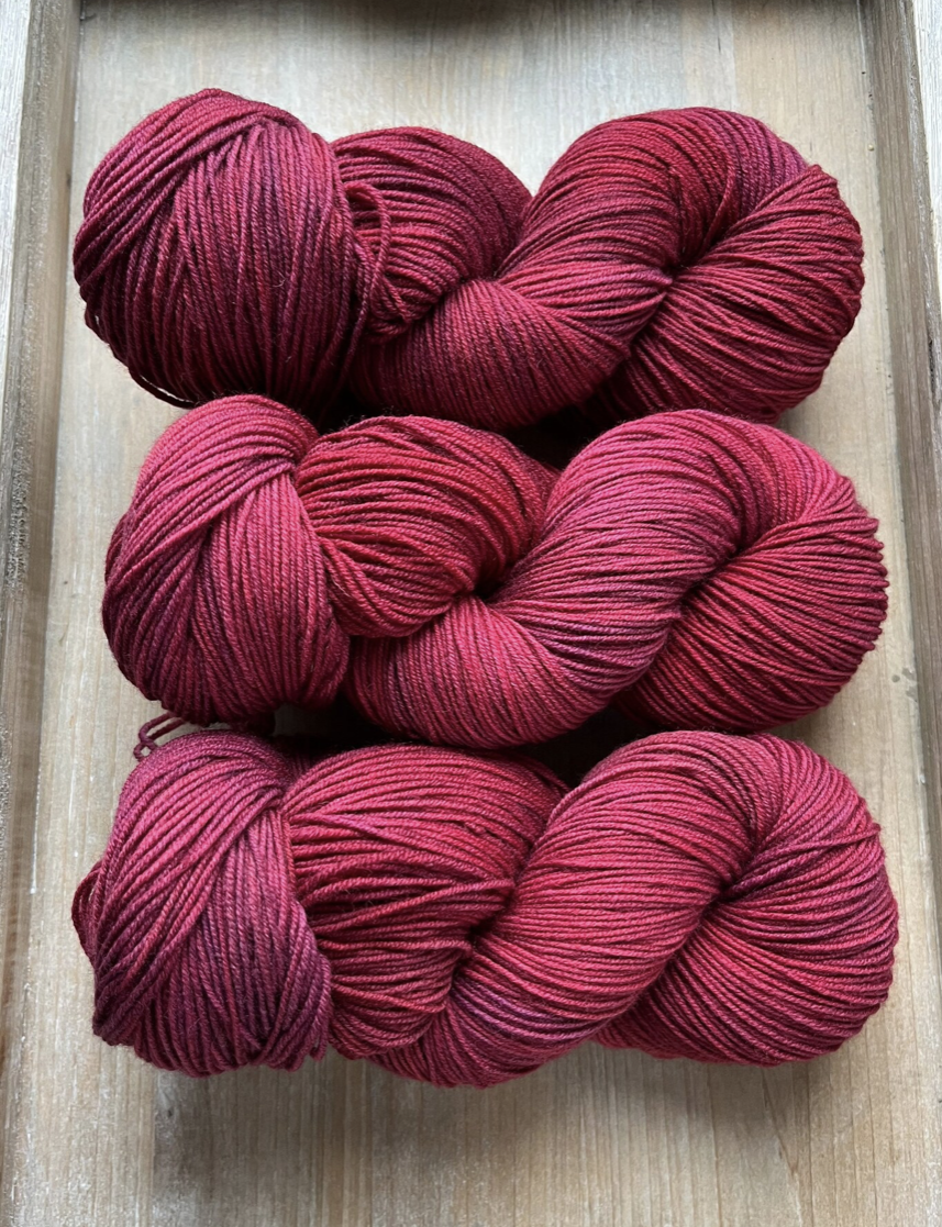 Miss Scarlet is a deep, rich, red. With a touch of burgundy, and multiple red hues within each skein, this is one colourway that is hard to forget about! I would call this colourway a red, but there is plenty of deep berry hues in the mix here too.
