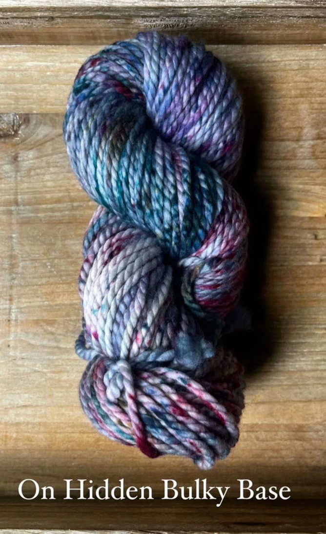 Hidden Bulky Base: Once a little shop secret, this base is now available all the time! The thickest of all my bases, this 100% Extra Fine Superwash Merino base is unbelievably soft next to the skin, and the dye colours simply shine through. Each skein is 100 grams and 109 yards, with a 2ply construction. Although made up of the same blend as the Classic Worsted Weight base, this yarn has a much softer feel to it thanks to the Extra Fine Merino Wool. Fibres in this base are sourced from Australia, the wool used in this yarn is ethically produced from sheep that have NOT been mulesed.