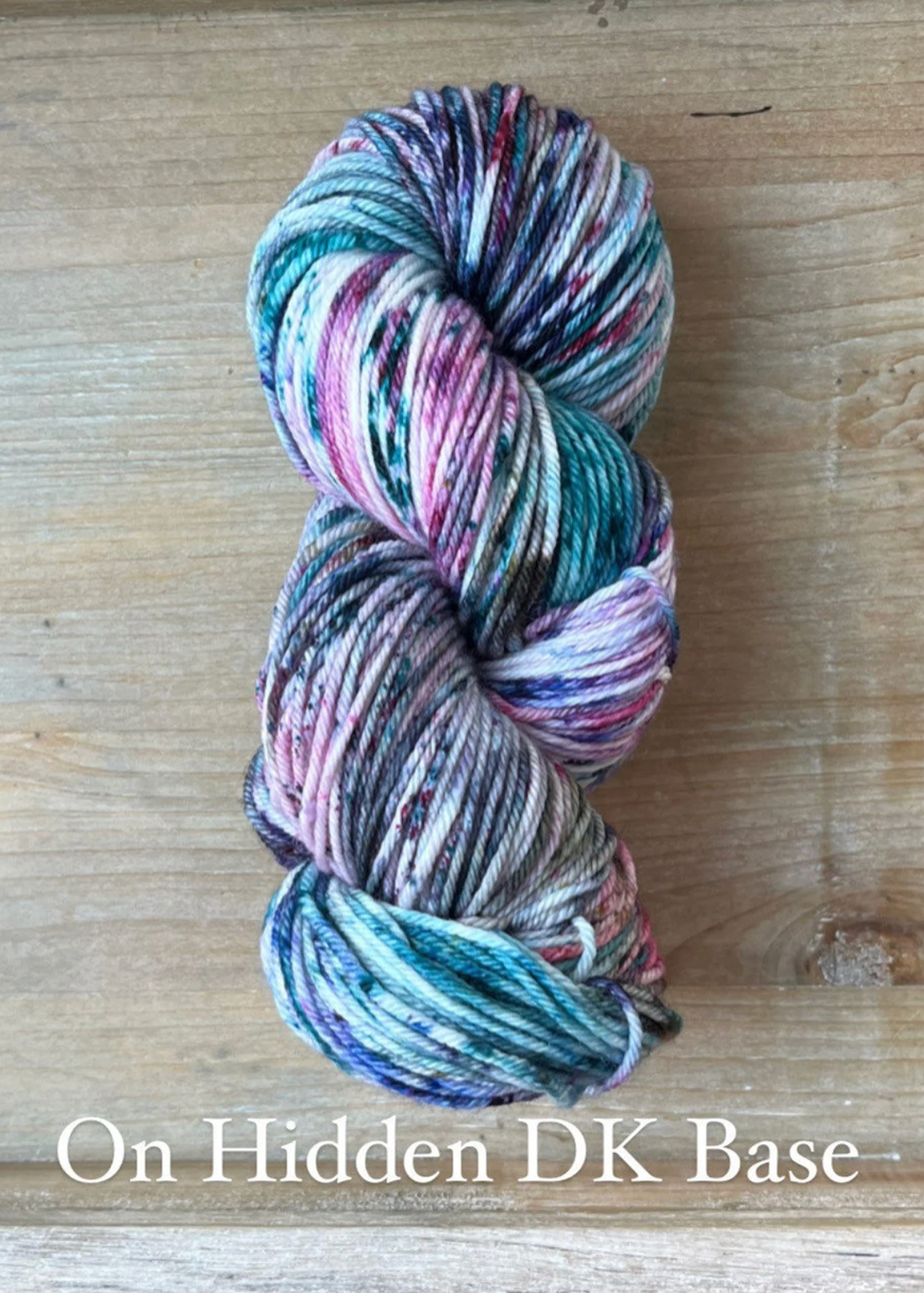 Hidden DK Base: Once a little shop secret, this base is now available all the time! This ultra versatile Double Knit Base is a no-brainer, easy choice for anything meant to wear next to the skin. Made up of 85% Extra Fine Superwash Merino Wool and 15% Nylon, this yarn is unbelievably soft, easy to care for (machine washable on a delicate cycle, in cold water) and takes up the dye colours beautifully. This yarn base (especially) does not agree with the plastic packaging and shipping process, and can often have an off-putting odour upon opening. With a little room to breathe, and some fresh air, you’ll notice it dissipates quickly enough! Each skein is 100 grams and 246 yards, this yarn is a 4ply construction. Fibres in this base are sourced from Australia, the wool used in this yarn is ethically produced from sheep that have NOT been mulesed.