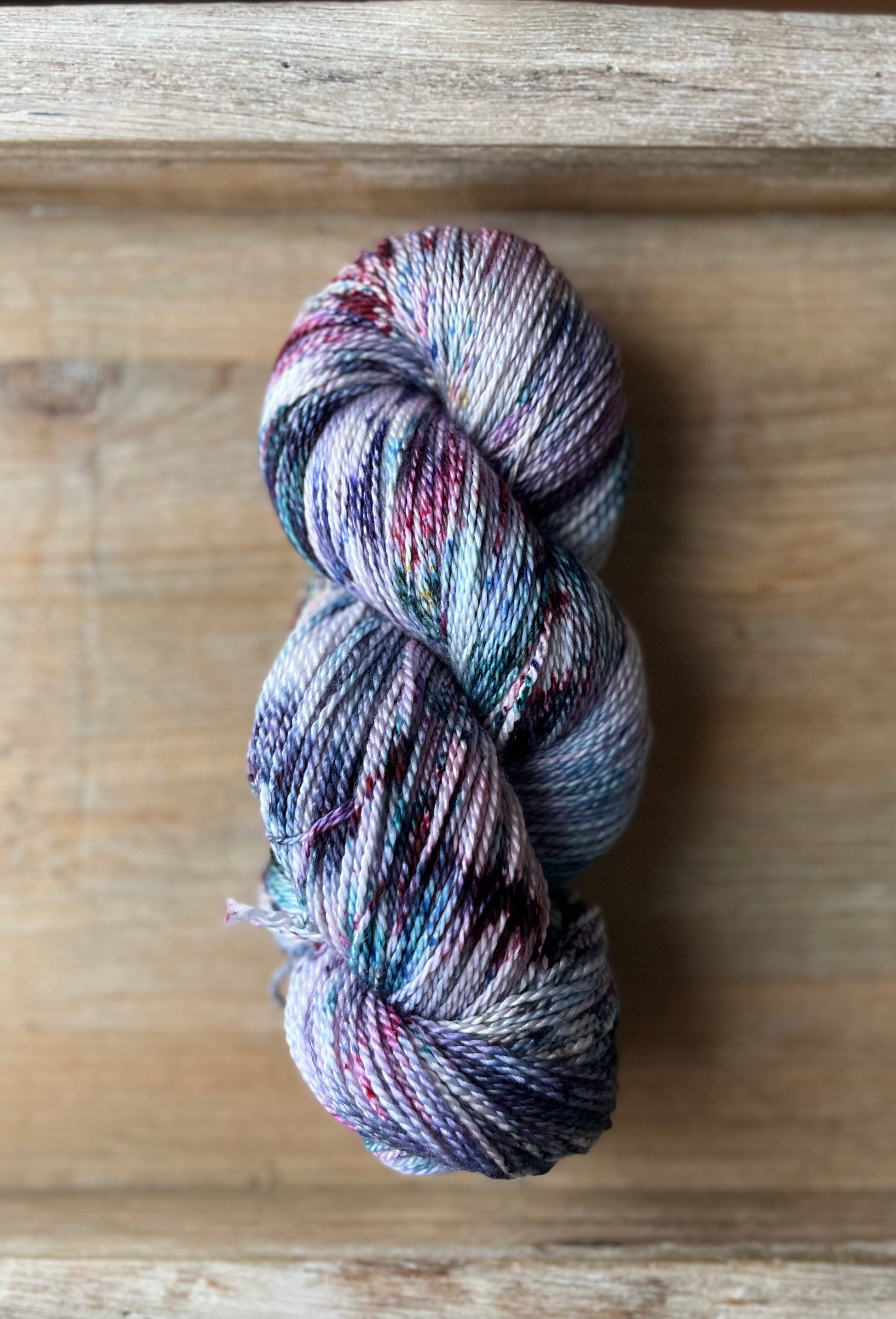 Lustrous Lace Base: This very thin, very fine lace weight yarn is both luxurious yet practical. Made up of 75% Extrafine Superwash Merino, and 25% Mulberry Silk, this base is so very soft, and the colours of dye simply glow throughout each skein. 100 grams and 875 yards, this yarn base is a 2ply construction. A stunning choice for shawls and light summer garments, this yarn base has a lovely drape and is very comfortable to wear next to the skin. Fibres in this base are sourced from Australia, the wool used in this yarn is ethically produced from sheep that have NOT been mulesed.. Hand wash only, lay flat to dry.