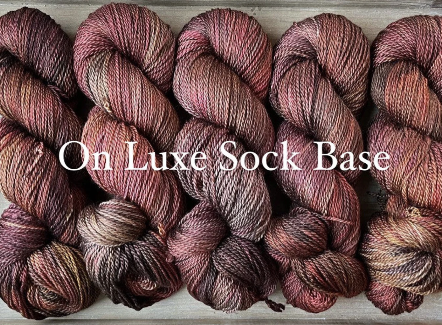 Luxe Sock Base: Luxe Sock is made up of 75% Ultra Fine Merino Wool, 15% Mulberry Silk, and 10% Cashmere. Each skien is 100 grams and 437 yards, 2ply construction. This yarn base is heavenly soft against the skin, and perfect for a special project calling for a high end fingering weight yarn. The Mulberry Silk adds drape and lustre, and the cashmere creates a fuzzy halo effect as you work with it. The colours of dye tend to shine through, looking much more striking and rich compared to some of my samples on Superwash bases. Fibres in this base are sourced from Australia, the wool used in this yarn is ethically produced from sheep that have NOT been mulesed. Hand wash only, lay flat to dry.
