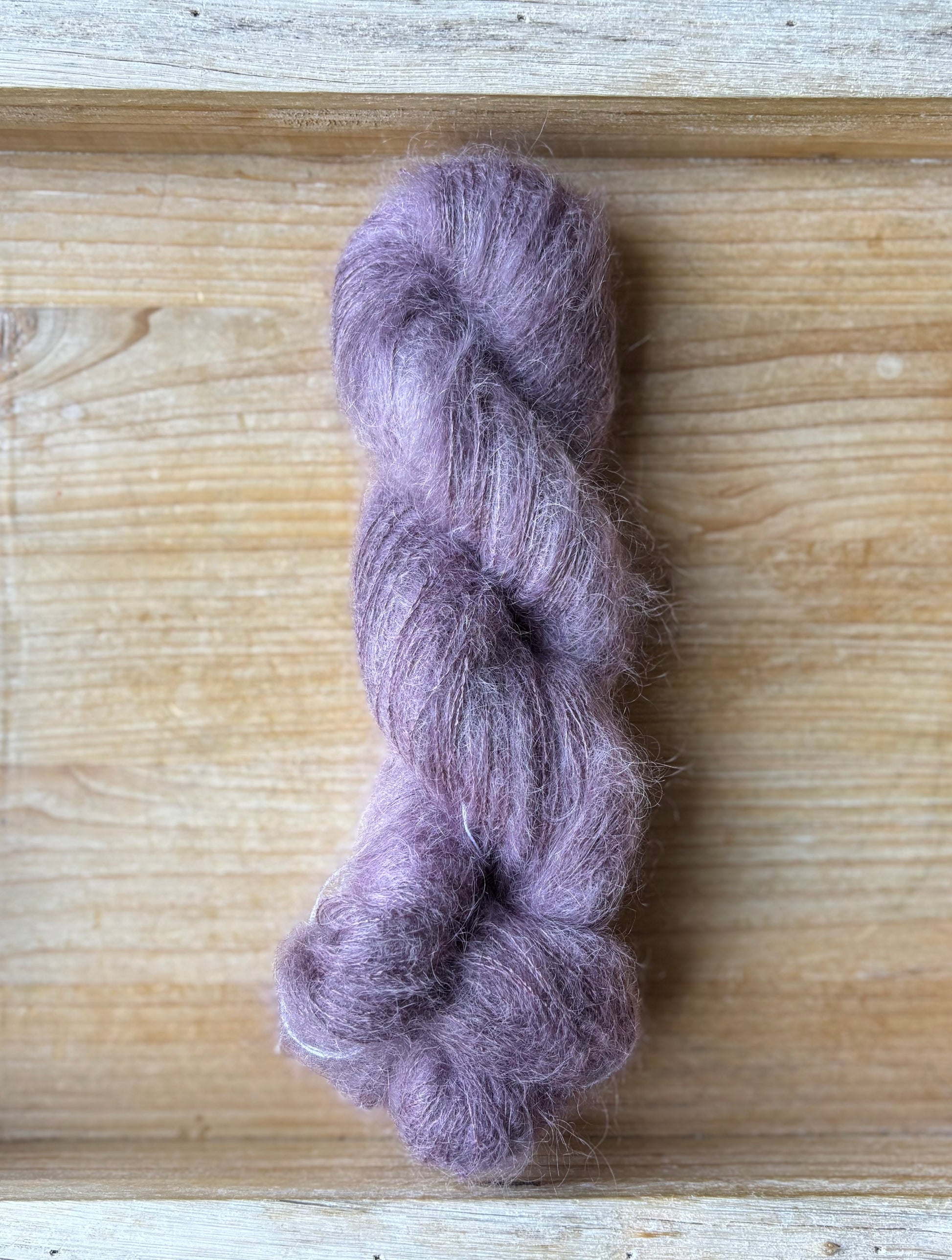 Mohair Halo Base: A delicate, lace weight yarn made up of 72% Superkid Mohair and 28% Mulberry Silk. Each skein is 50 grams and 460 yards, single ply construction. This yarn is lovely on it’s own, but is also amazing when held together with another yarn base. The fuzziness of the mohair creates a halo of colour within your project. Fibres in this base are sourced from South Africa. Hand wash only, lay flat to dry.
