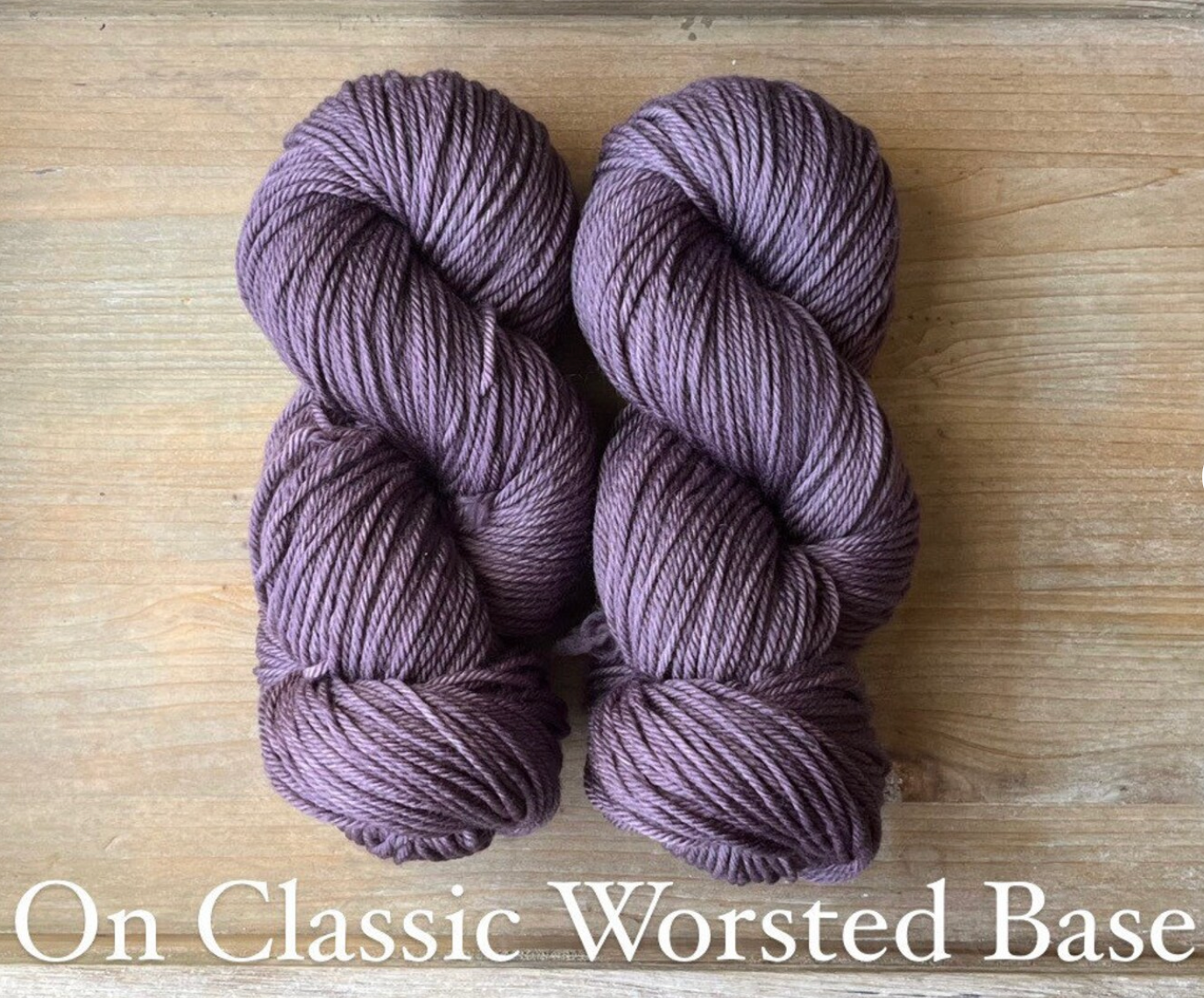 Classic Worsted Base: A soft and full Worsted Base yarn, made up of 100% Superwash Merino Wool. Each skein is 110 grams and 205 yards, with a 4 ply construction. It is plush, and versatile, with terrific stitch definition. And thanks to it’s superwash treatment, it is also machine washable on a delicate cycle. A great, practical choice for any project calling for a Worsted Weight base. Fibres in this base are sourced from Australia.