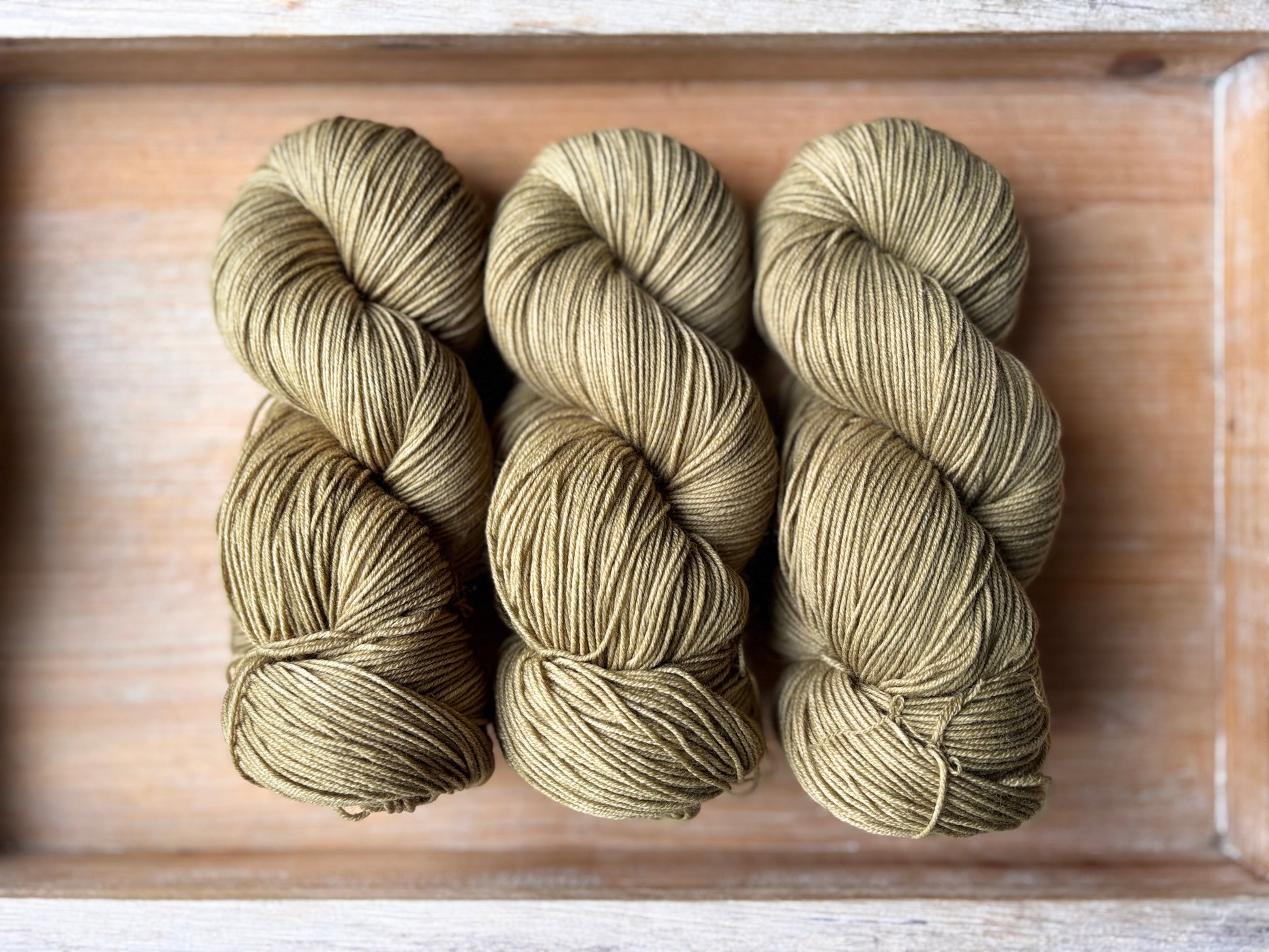 Luxe Sock Base: Luxe Sock is made up of 75% Ultra Fine Merino Wool, 15% Mulberry Silk, and 10% Cashmere. Each skien is 100 grams and 437 yards, 2ply construction. This yarn base is heavenly soft against the skin, and perfect for a special project calling for a high end fingering weight yarn. The Mulberry Silk adds drape and lustre, and the cashmere creates a fuzzy halo effect as you work with it. The colours of dye tend to shine through, looking much more striking and rich compared to some of my samples on Superwash bases. Fibres in this base are sourced from Australia, the wool used in this yarn is ethically produced from sheep that have NOT been mulesed. Hand wash only, lay flat to dry.