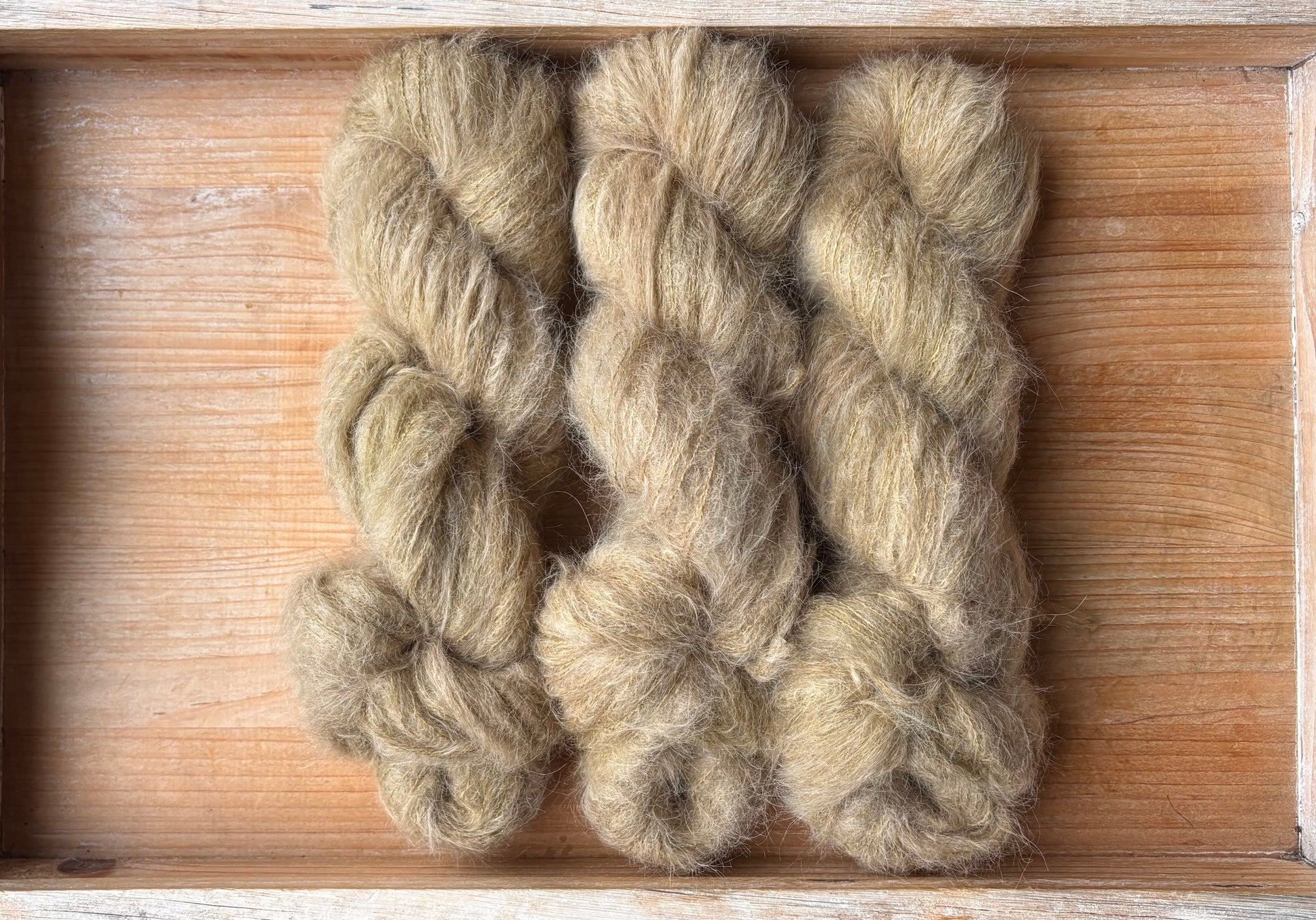 Yes, Suri! Lace Base: Take your project to the next level of luxury with this gorgeous lace weight yarn base! Made up of 75% Brushed Baby Suri Alpaca, and 25% Mulberry Silk, each 50 gram skein comes with 328 yards of fluffy magic. This base can be somewhat of a wild card when it comes to dye recipe consistency, as is often the case with Alpaca blends, so please do not hesitate to reach out to me as I’m always happy to send ‘preview photos’ before shipping, just to make sure we get it right! Yes, Suri! is significantly softer than Mohair Halo and is a great choice for anyone who wants something less itchy for next to skin wear. This base has a bit more drape and creates a less stiff fabric than Mohair Halo. Fibres in this yarn base are sourced from South America. Hand wash only, lay flat to dry, and colour bleeding is quite typical for the first few washes, so swatching to test for colour transfer is recommended