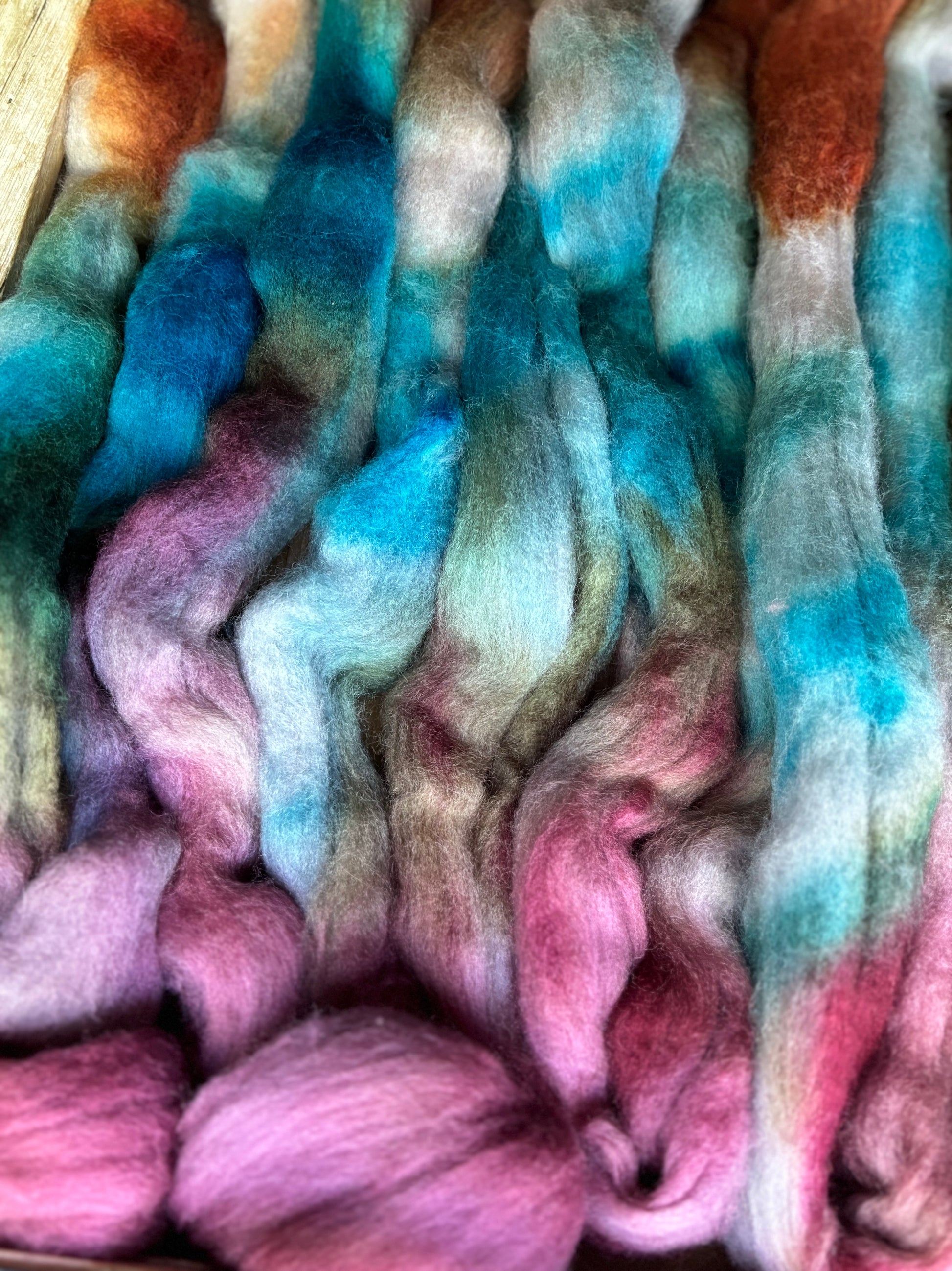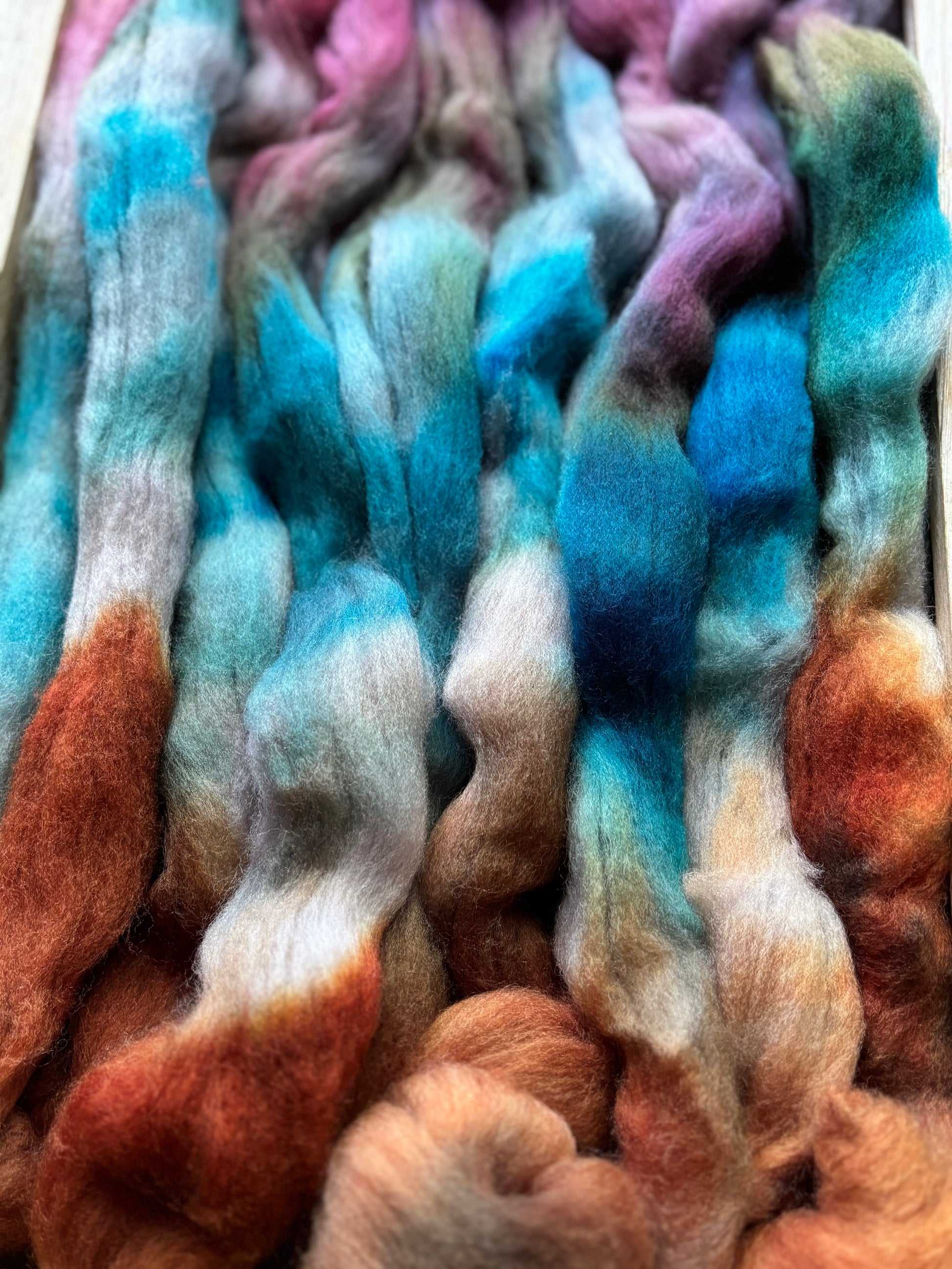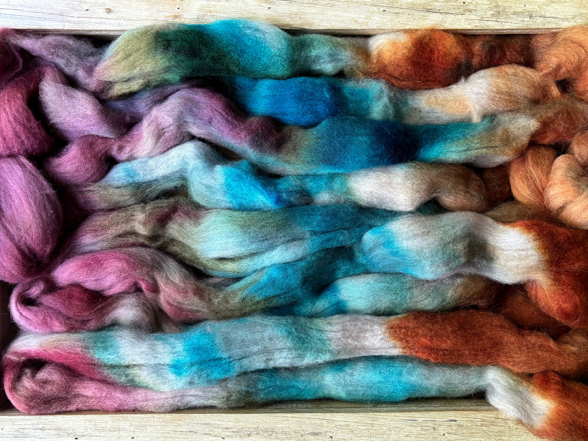 One of a Kind Batch - 100 grams of Spinning Fibre - 100% Polwarth - 22 Micron - Hand Dyed Combed Top