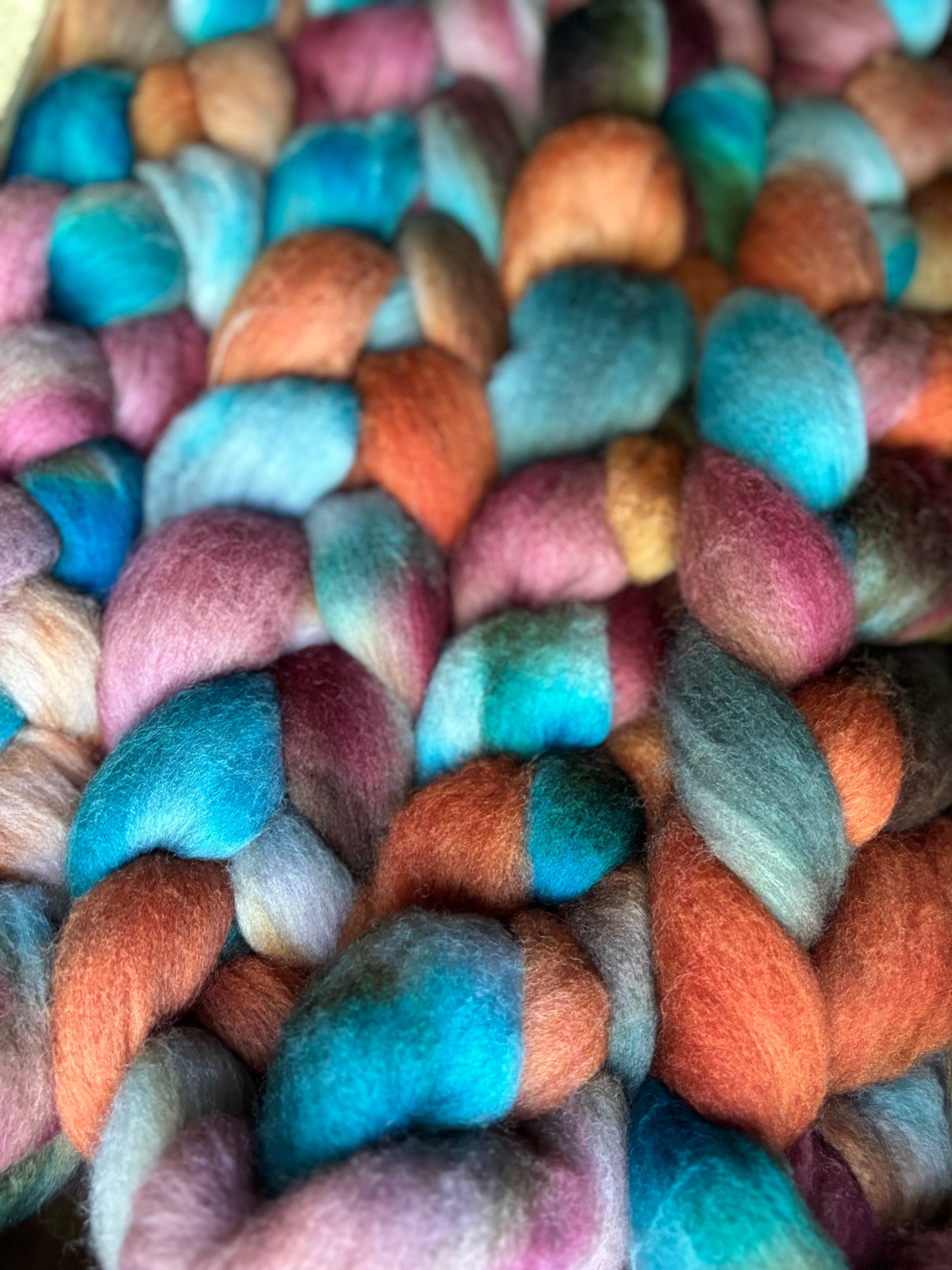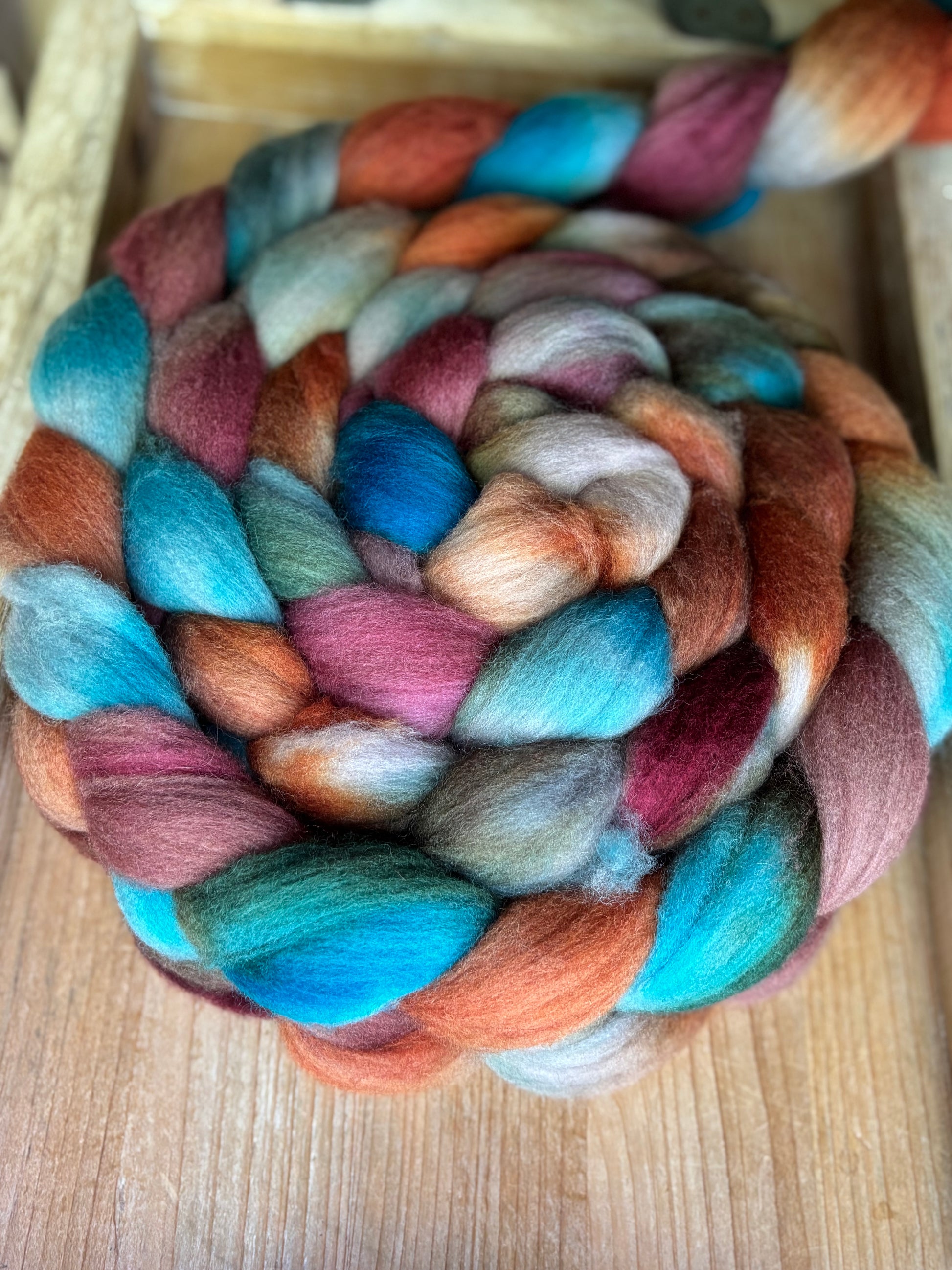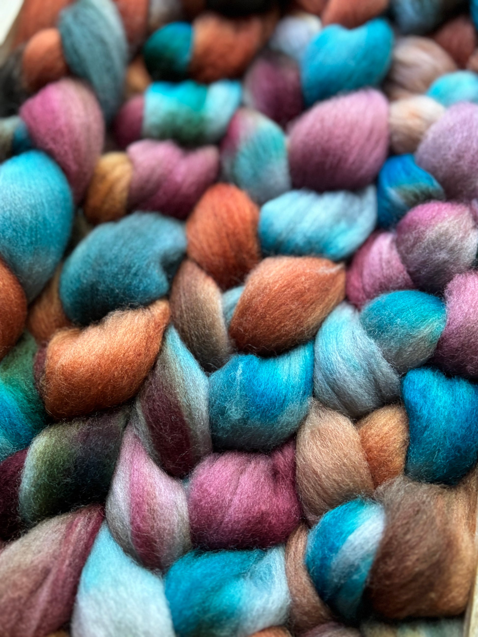 One of a Kind Batch - 100 grams of Spinning Fibre - 100% Polwarth - 22 Micron - Hand Dyed Combed Top