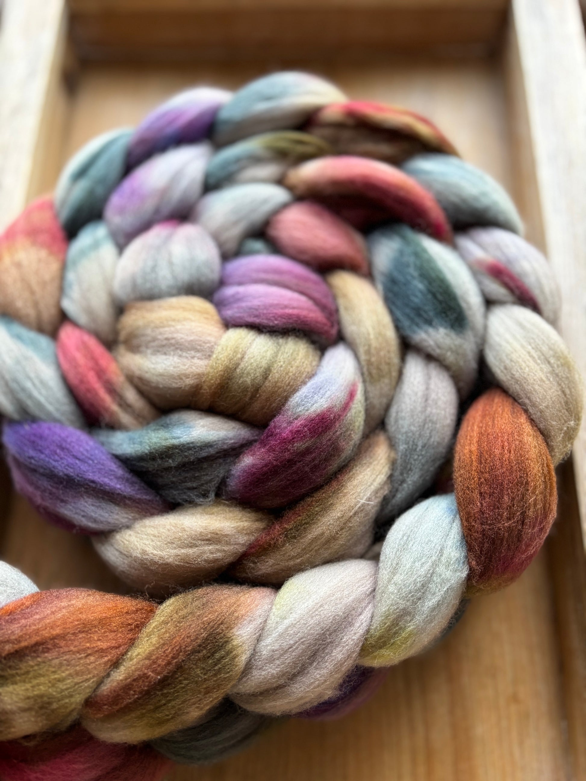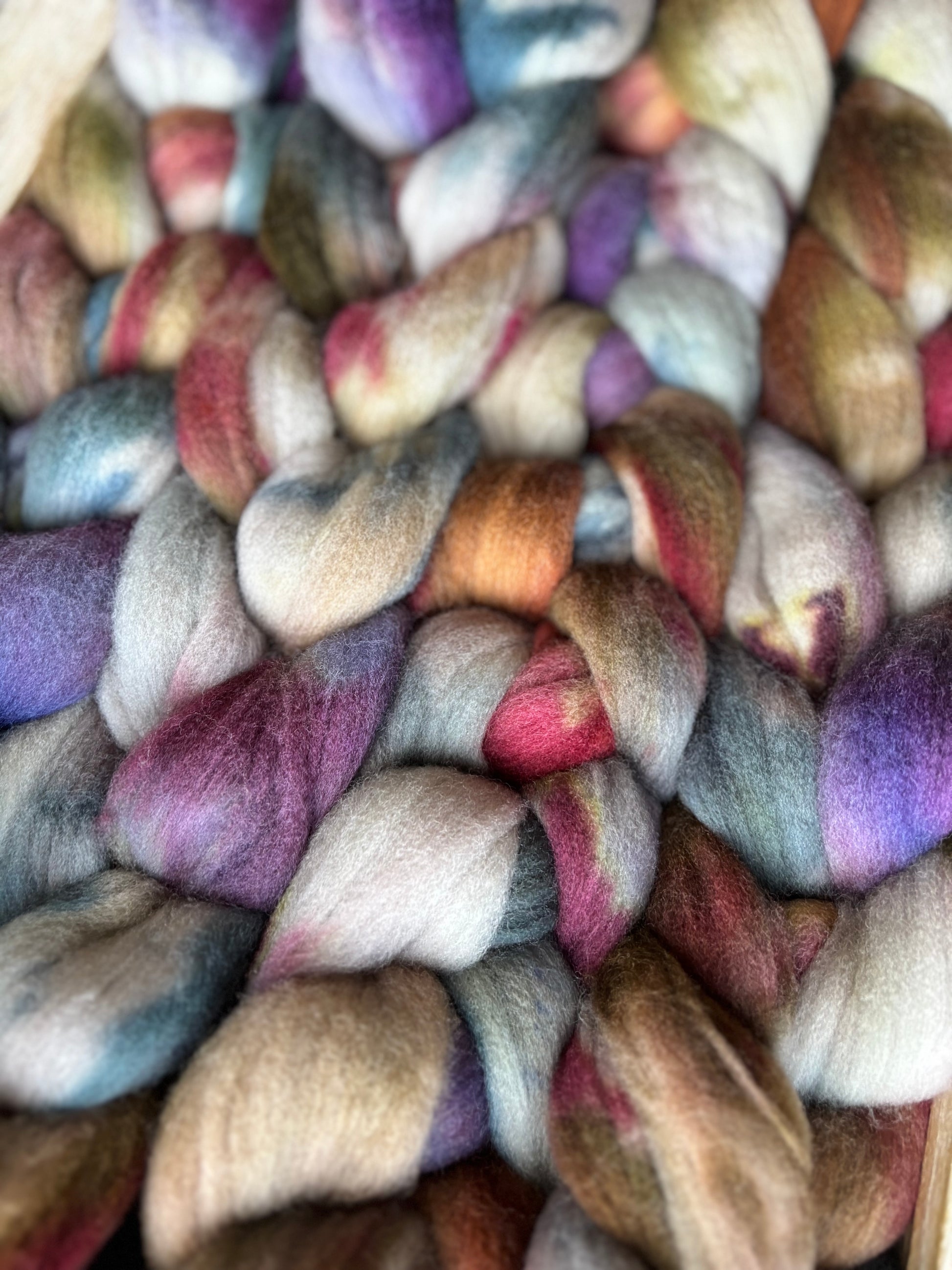 One of a Kind Batch - 100 grams of Spinning Fibre - 100% Targhee - 23 Micron - Hand Dyed Combed Top