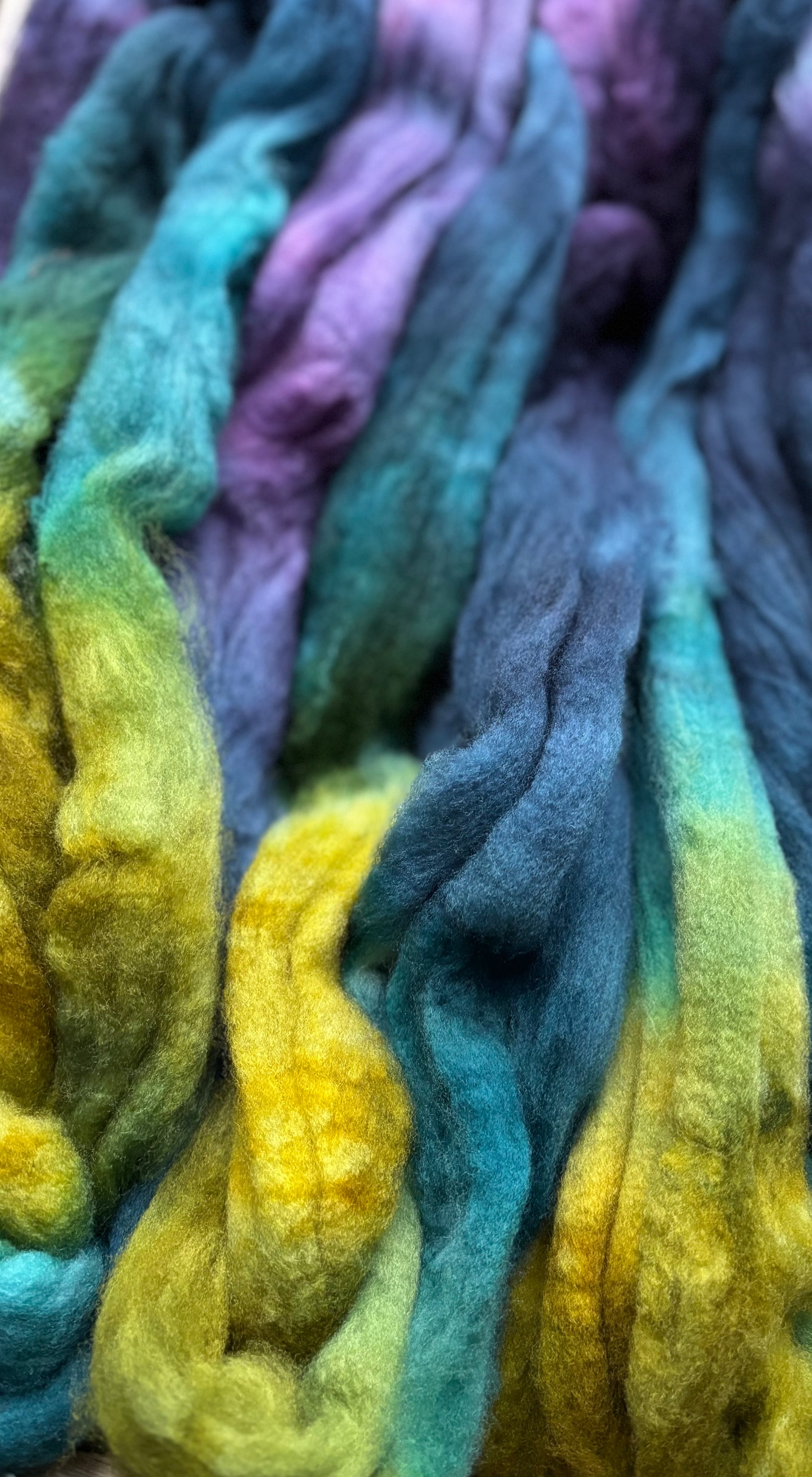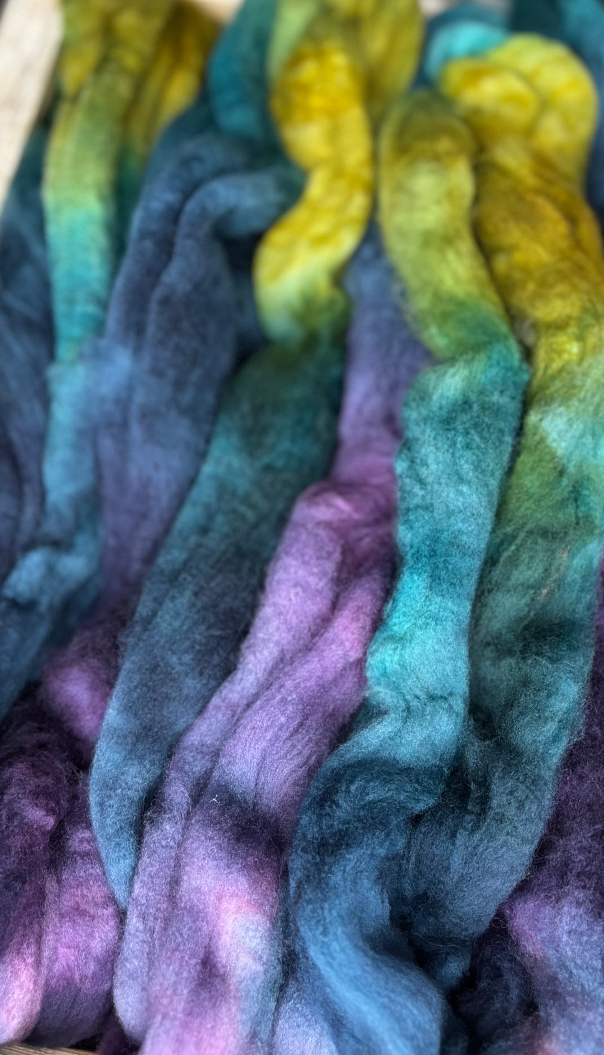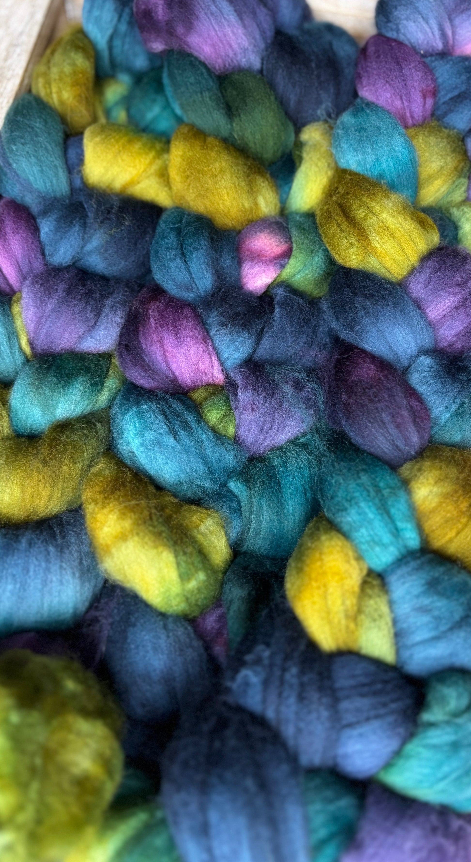 One of a Kind Batch - 100 grams of Spinning Fibre - Superwash Merino Wool 22 Micron - Hand Dyed Combed Top