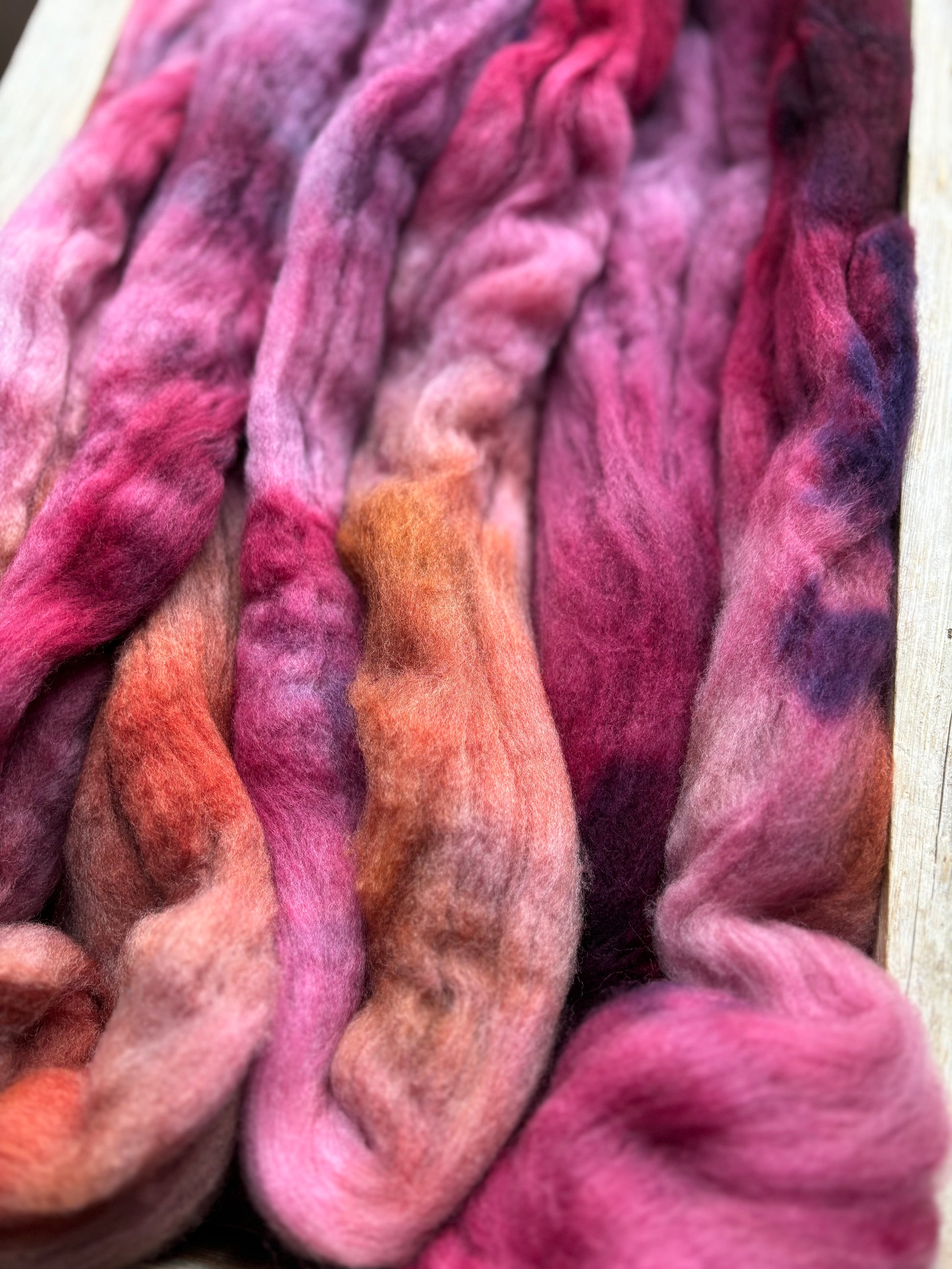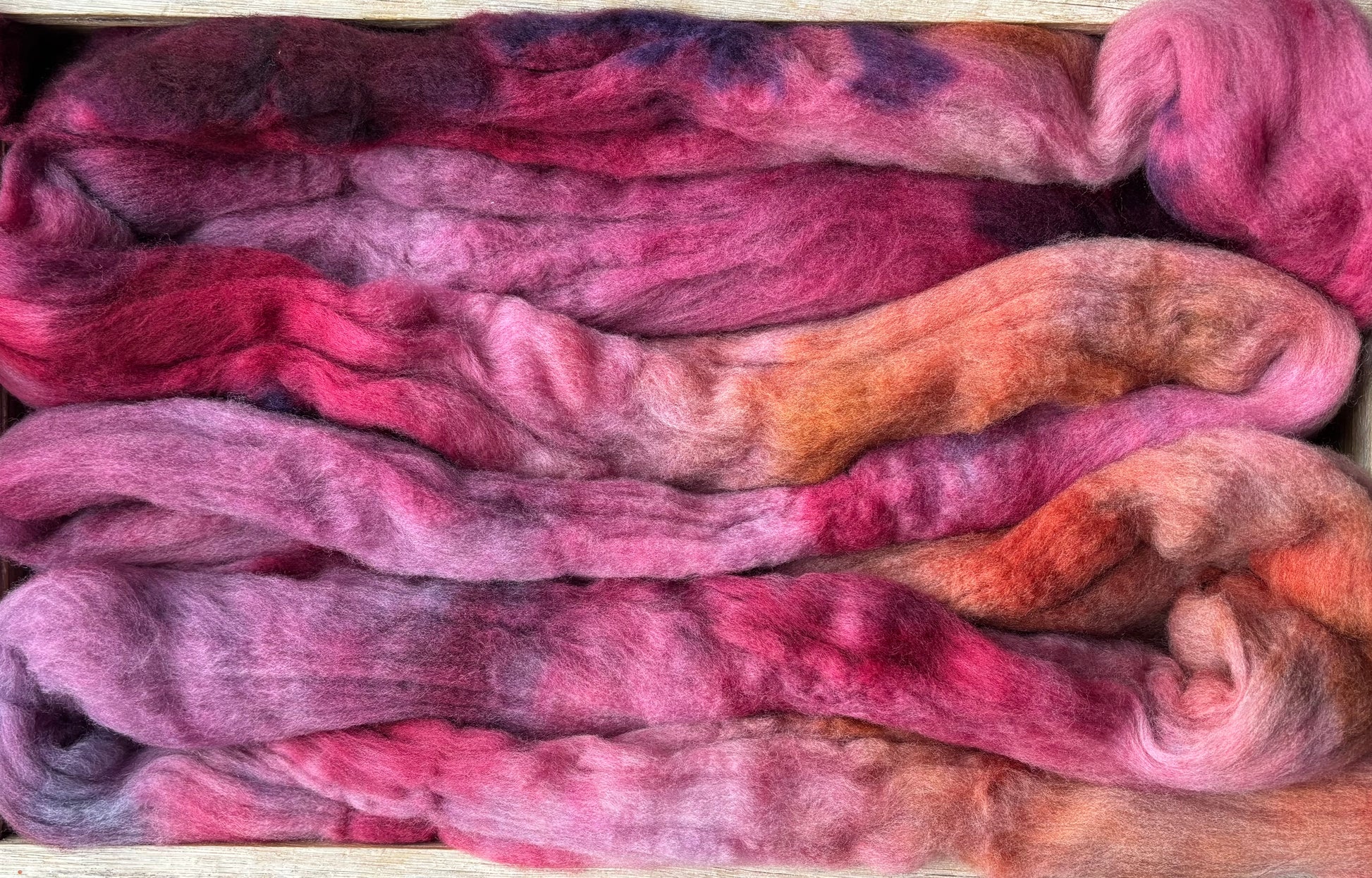 One of a Kind Batch - 100 grams of Spinning Fibre - Untreated Merino Wool 22 Micron - Hand Dyed Combed Top