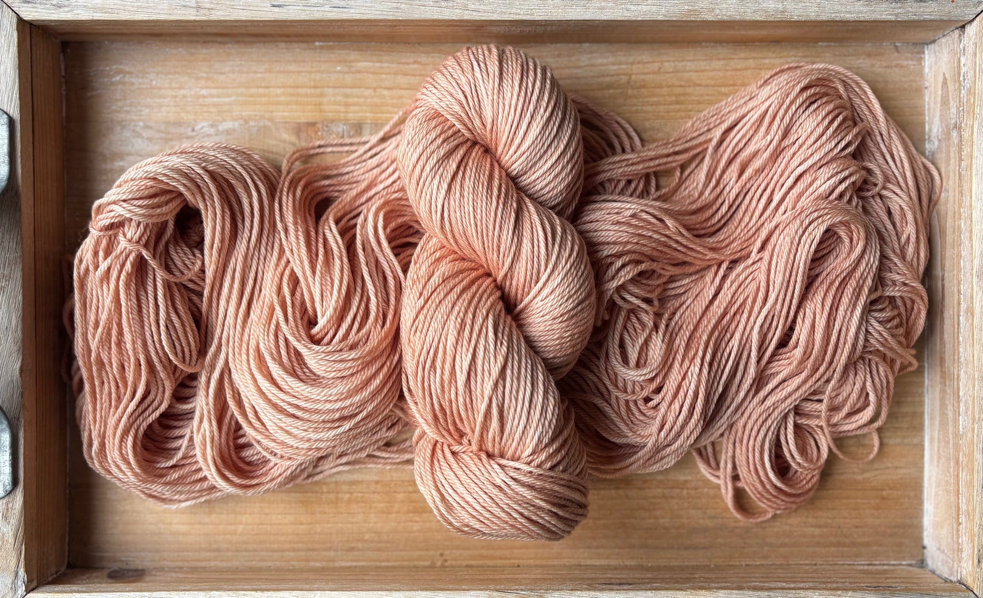 Two pretty, and perfect, skeins of Antique Pink on Classic Worsted Base are dyed, dried and ready to ship at any time! This gentle, dusty pink has been a fan favourite since the early days here at Hidden Pond, easy to pair with and also gorgeous in its own, you can’t go wrong with this shade!