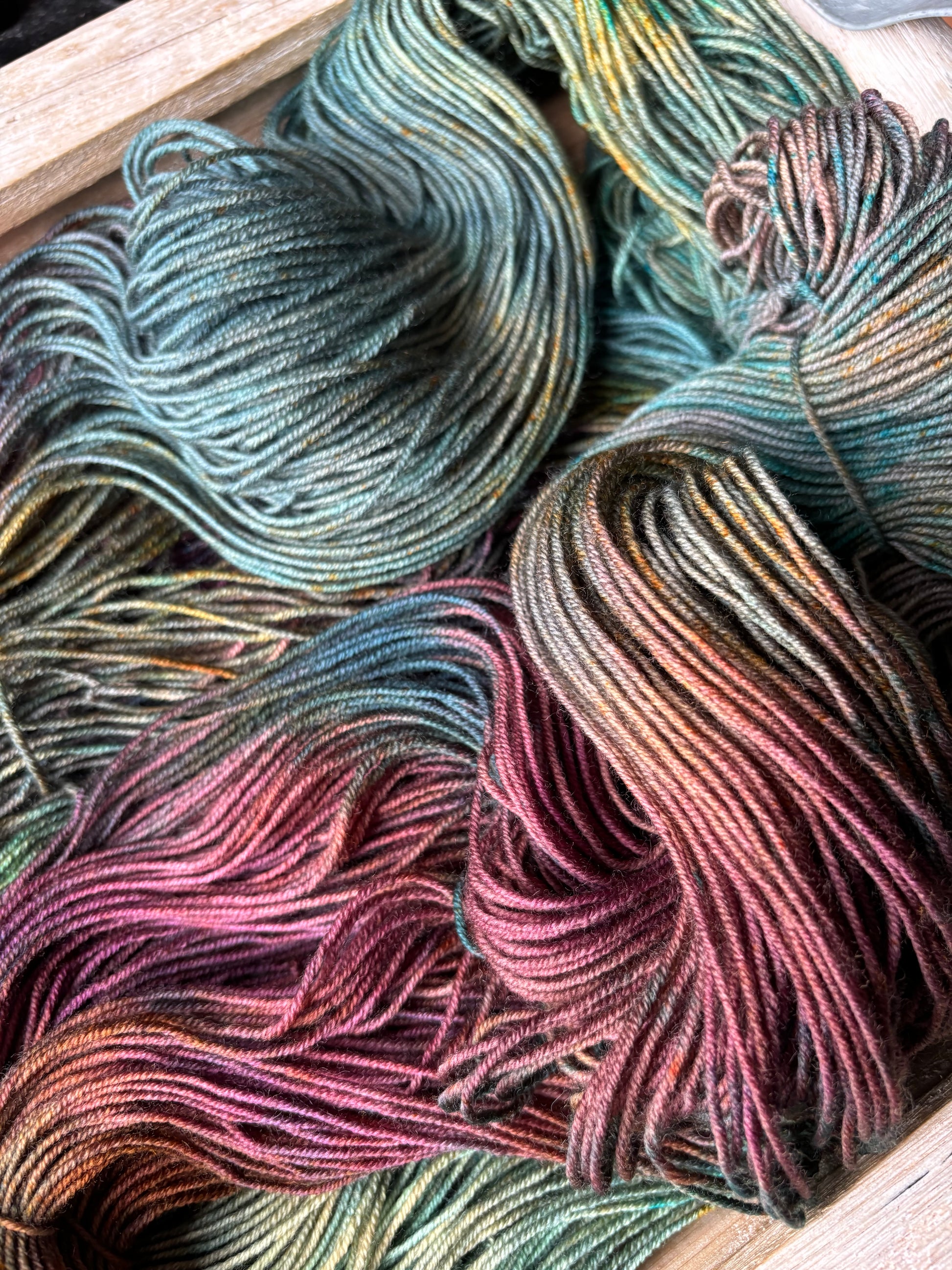 The road to creating new Forever Colourways always ends with a few new additions to the shop! This batch was an experiment of pure delight and happiness, but when I realized my measurements for the dyes weren't accurate, I knew I wouldn't be able to trust the recipe for the long haul. But what a fabulous batch of yarn, regardless!