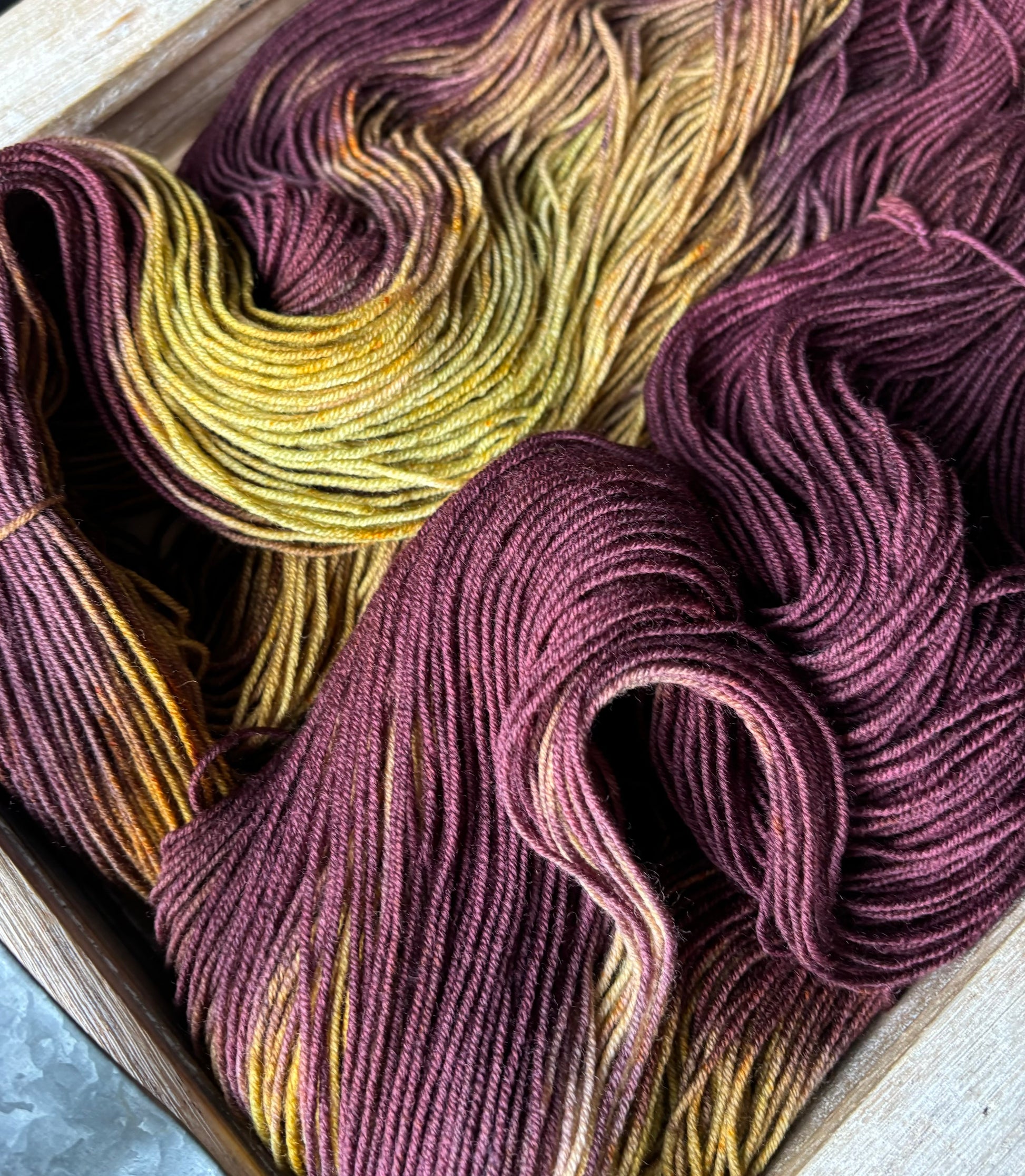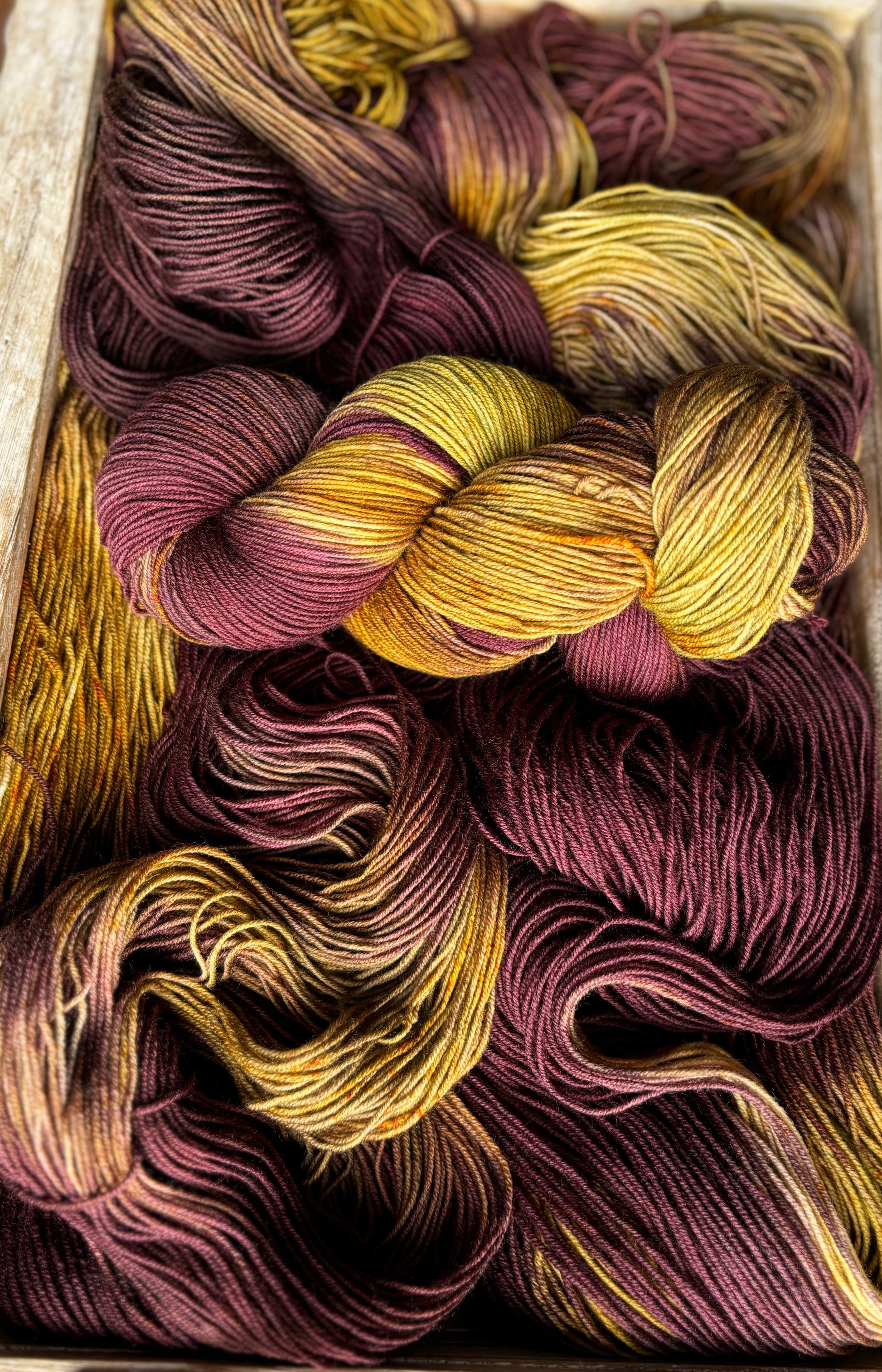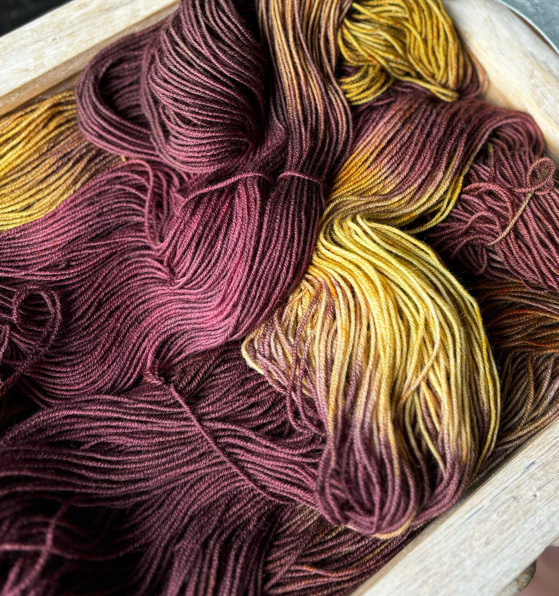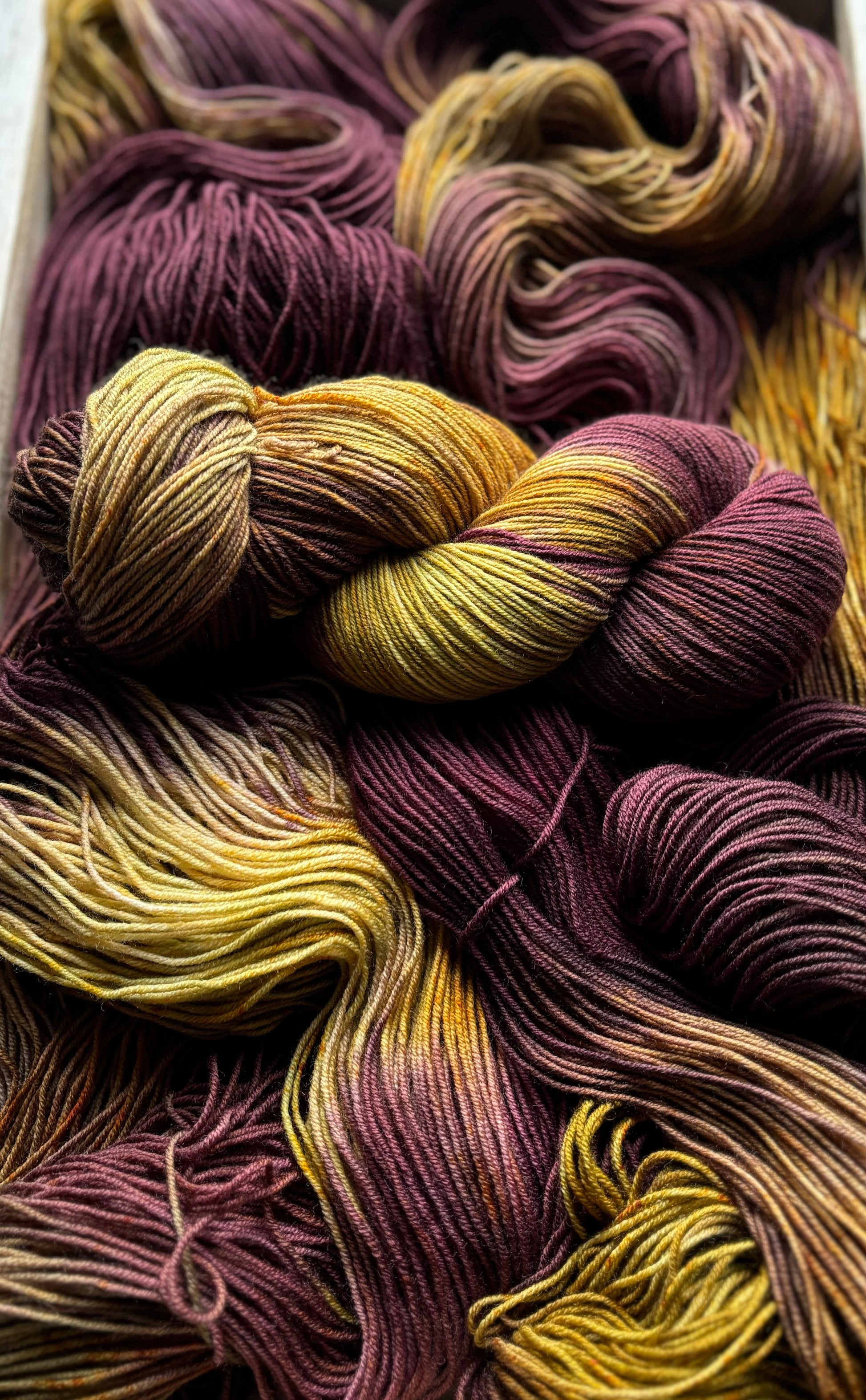 Luxe Sock Base: Luxe Sock is made up of 75% Ultra Fine Merino Wool, 15% Mulberry Silk, and 10% Cashmere. Each skien is 100 grams and 437 yards, 2ply construction. This yarn base is heavenly soft against the skin, and perfect for a special project calling for a high end fingering weight yarn. The Mulberry Silk adds drape and lustre, and the cashmere creates a fuzzy halo effect as you work with it. The colours of dye tend to shine through, looking much more striking and rich compared to some of my samples on Superwash bases. Fibres in this base are sourced from Australia, the wool used in this yarn is ethically produced from sheep that have NOT been mulesed. Hand wash only, lay flat to dry.