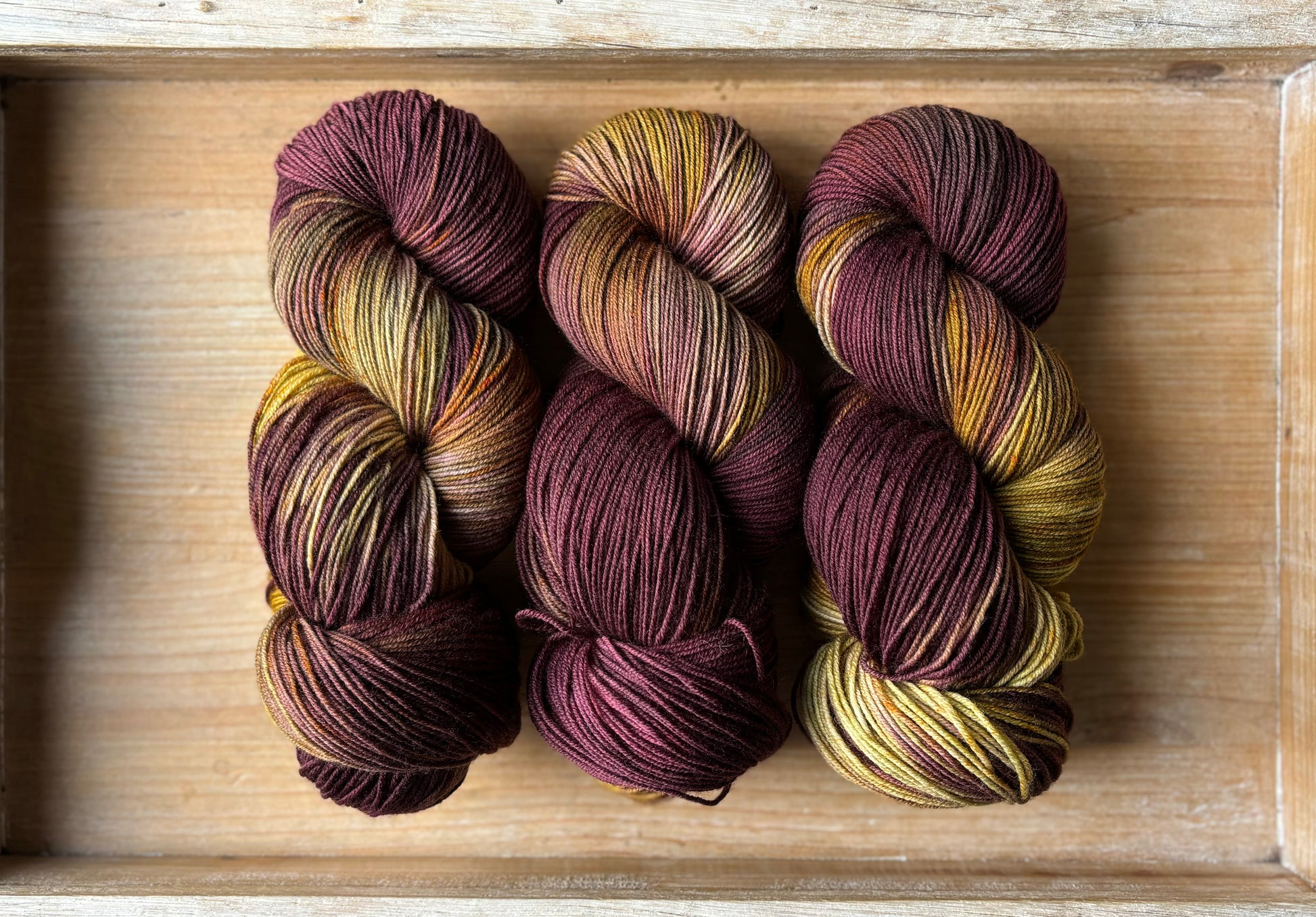 The beauty of indie dyed yarns is that no two are identical, I recommend alternating skeins after each row for a more uniform look. It is a rare occurrence, and I do everything possible to avoid this, but there is always a chance of colour bleeding with the first wash. The photos used are chosen to best represent the true colourways, using natural sunlight. I try my hardest to achieve consistency between dye lots, however it’s important to order the right quantity for your project, as there is always a difference from one batch to the next. If you need a quick consultation while choosing colours, please let me know, I’d love to help!