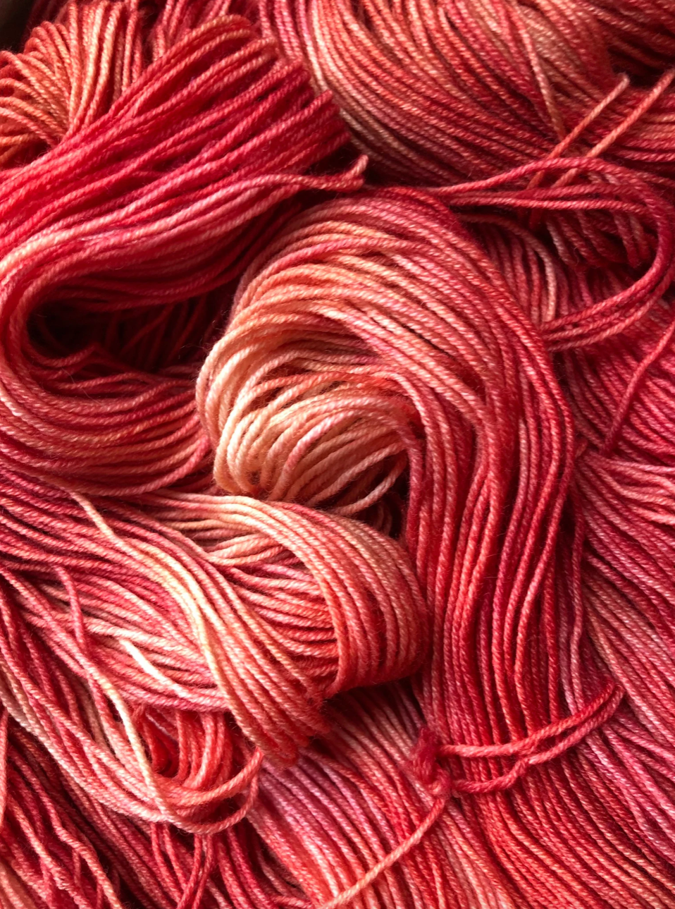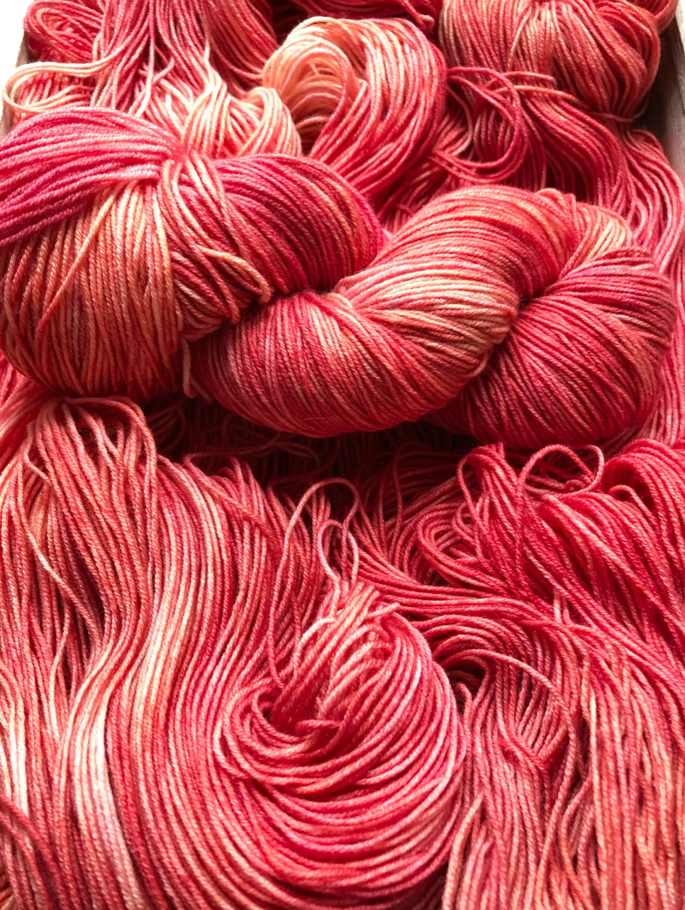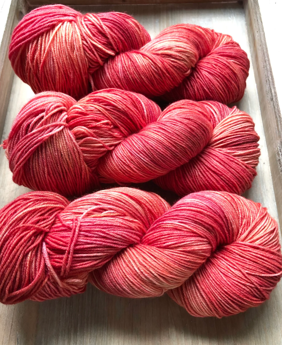 Luxe Sock Base: Luxe Sock is made up of 75% Ultra Fine Merino Wool, 15% Mulberry Silk, and 10% Cashmere. Each skien is 100 grams and 437 yards, 2ply construction. This yarn base is heavenly soft against the skin, and perfect for a special project calling for a high end fingering weight yarn. The Mulberry Silk adds drape and lustre, and the cashmere creates a fuzzy halo effect as you work with it. The colours of dye tend to shine through, looking much more striking and rich compared to some of my samples on Superwash bases. Fibres in this base are sourced from Australia, the wool used in this yarn is ethically produced from sheep that have NOT been mulesed. Hand wash only, lay flat to dry.
