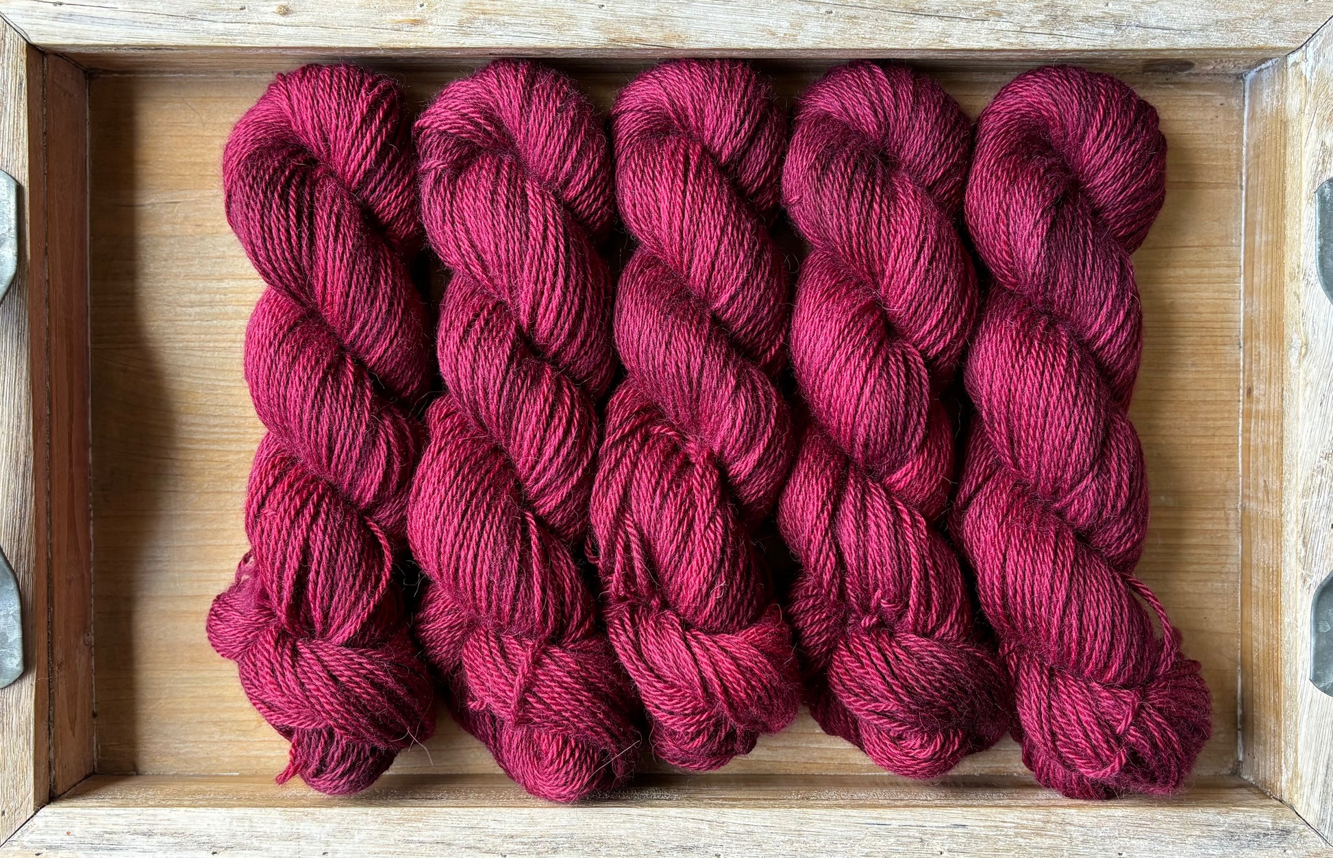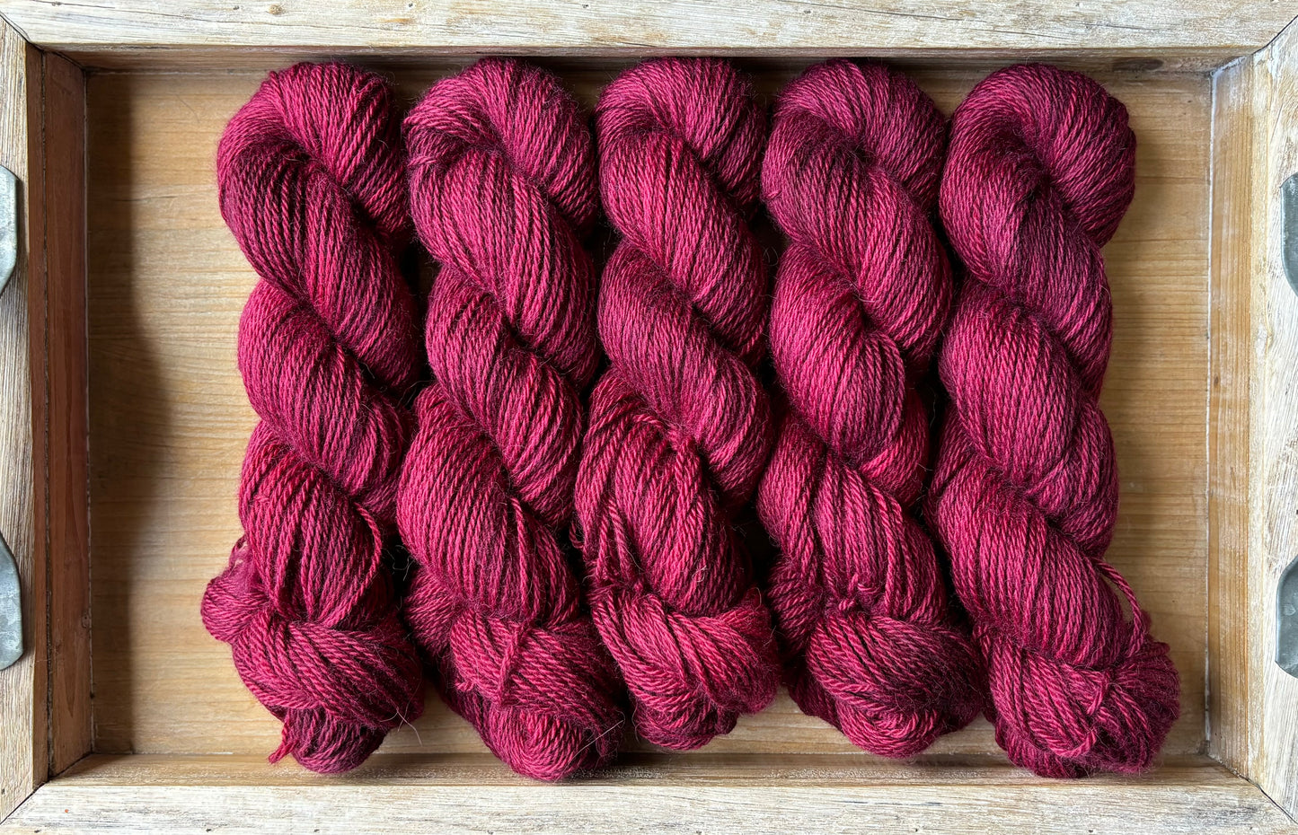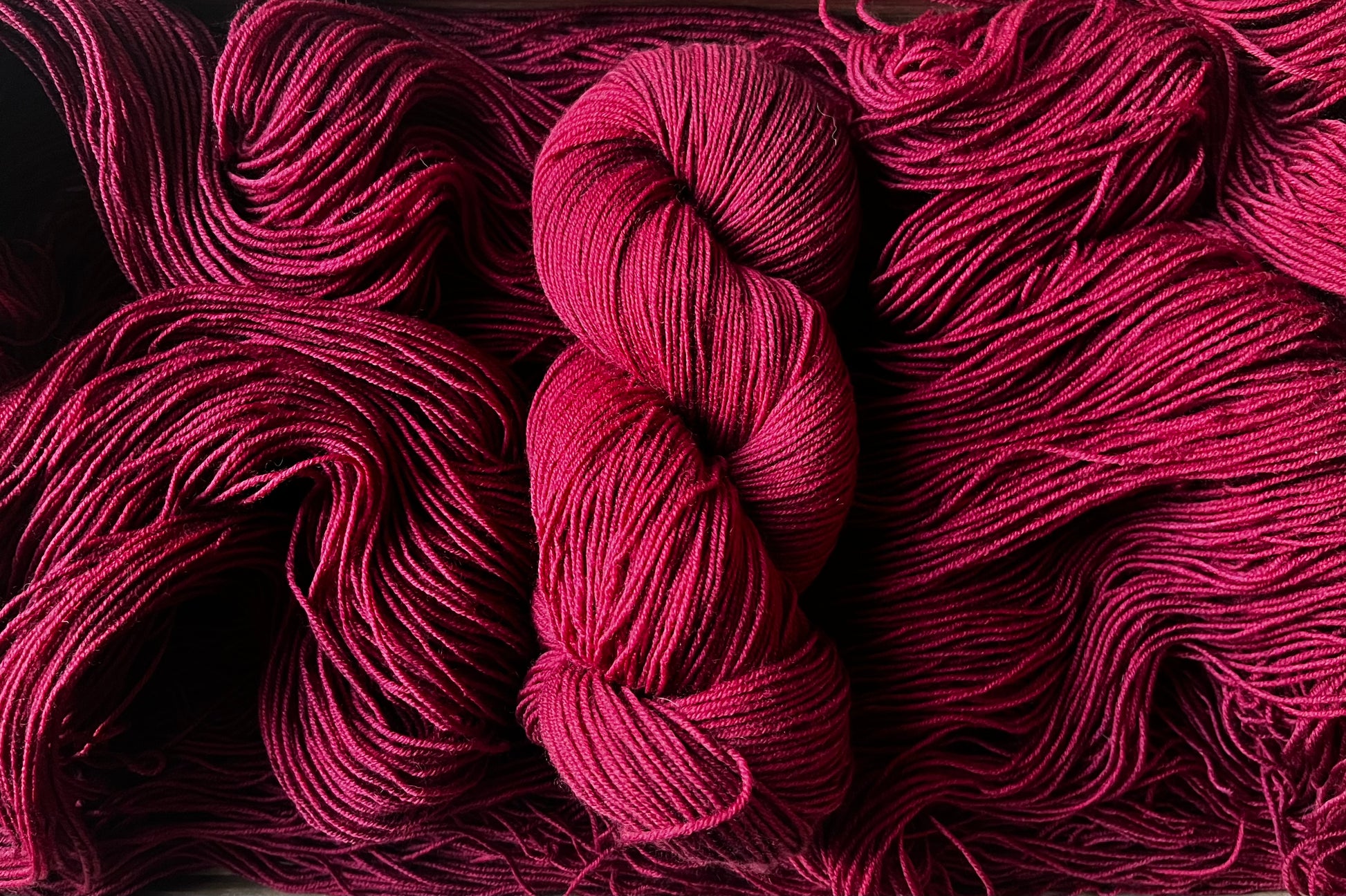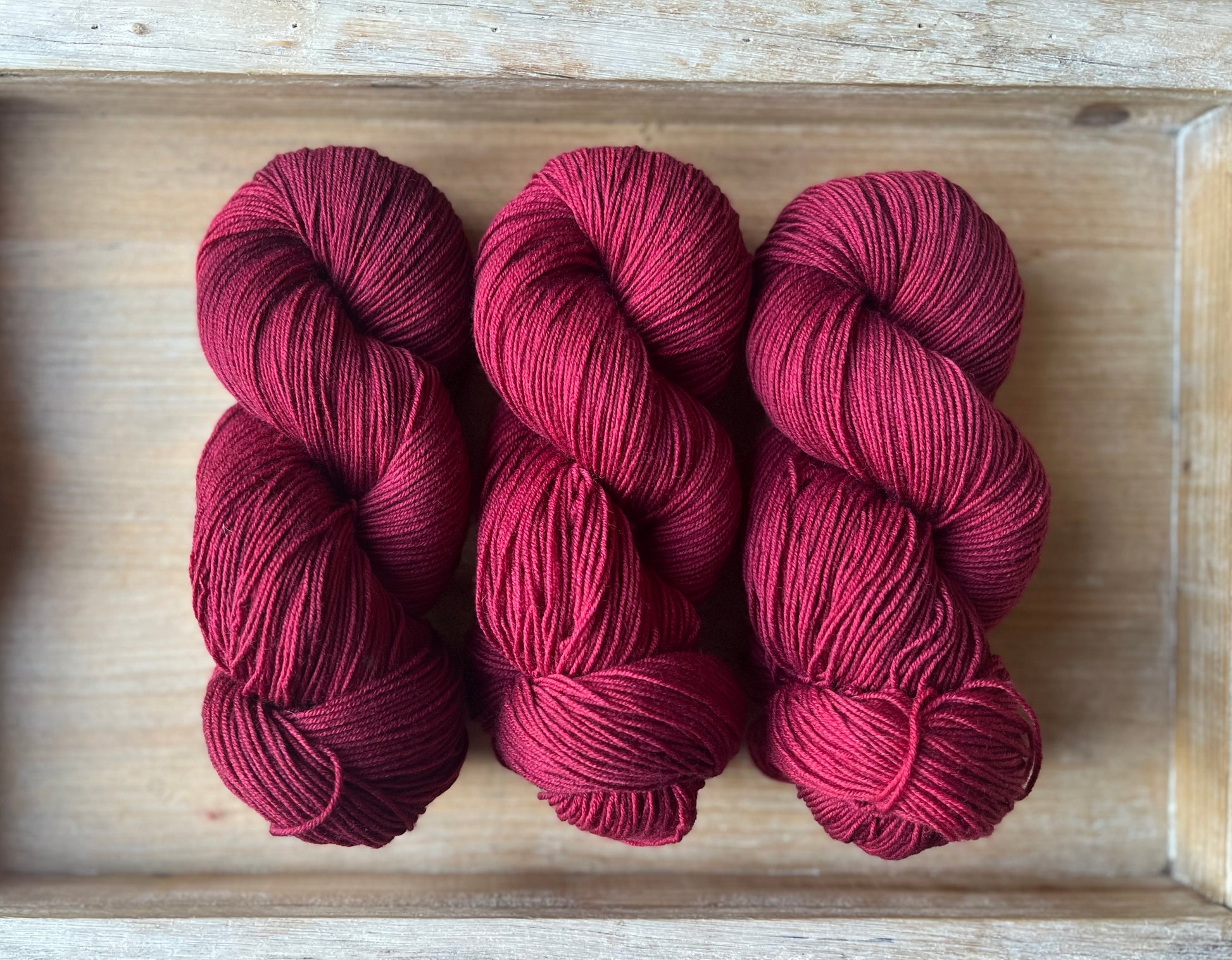 Queenie is an incredible, rich shade of berry red. Leaning more to the purple side of red, this colourway is so deep and saturated, it is often tricky to capture the big hues on camera. You have to see it to believe it! This magnificent dye recipe uses a ton of colour to achieve this rich tone, you may find colour bleeding more prevalent with Queenie. Please add a dash of white vinegar to the dye bath to help settle the dyes within the yarn base.