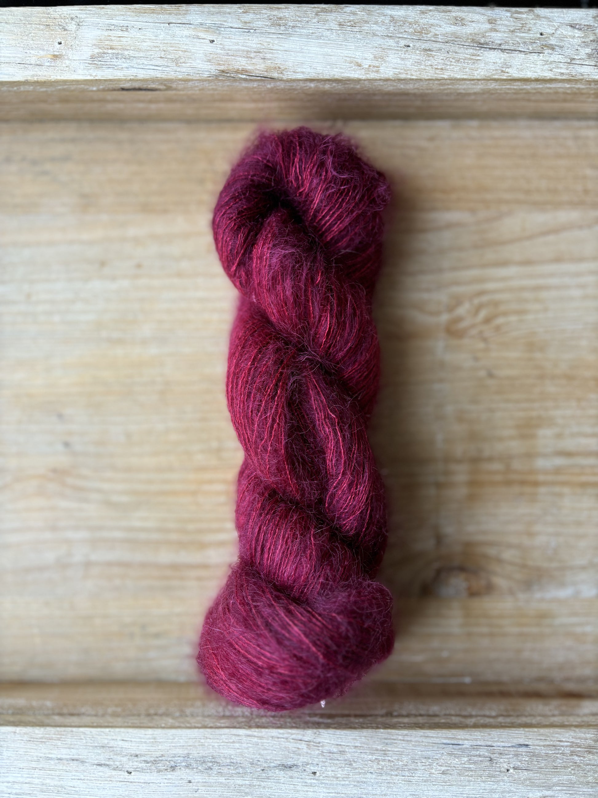 Yes, Suri! Lace Base: Take your project to the next level of luxury with this gorgeous lace weight yarn base! Made up of 75% Brushed Baby Suri Alpaca, and 25% Mulberry Silk, each 50 gram skein comes with 328 yards of fluffy magic. This base can be somewhat of a wild card when it comes to dye recipe consistency, as is often the case with Alpaca blends, so please do not hesitate to reach out to me as I’m always happy to send ‘preview photos’ before shipping, just to make sure we get it right! Yes, Suri! is significantly softer than Mohair Halo and is a great choice for anyone who wants something less itchy for next to skin wear. This base has a bit more drape and creates a less stiff fabric than Mohair Halo. Fibres in this yarn base are sourced from South America. Hand wash only, lay flat to dry, and colour bleeding is quite typical for the first few washes, so swatching to test for colour transfer is recommended