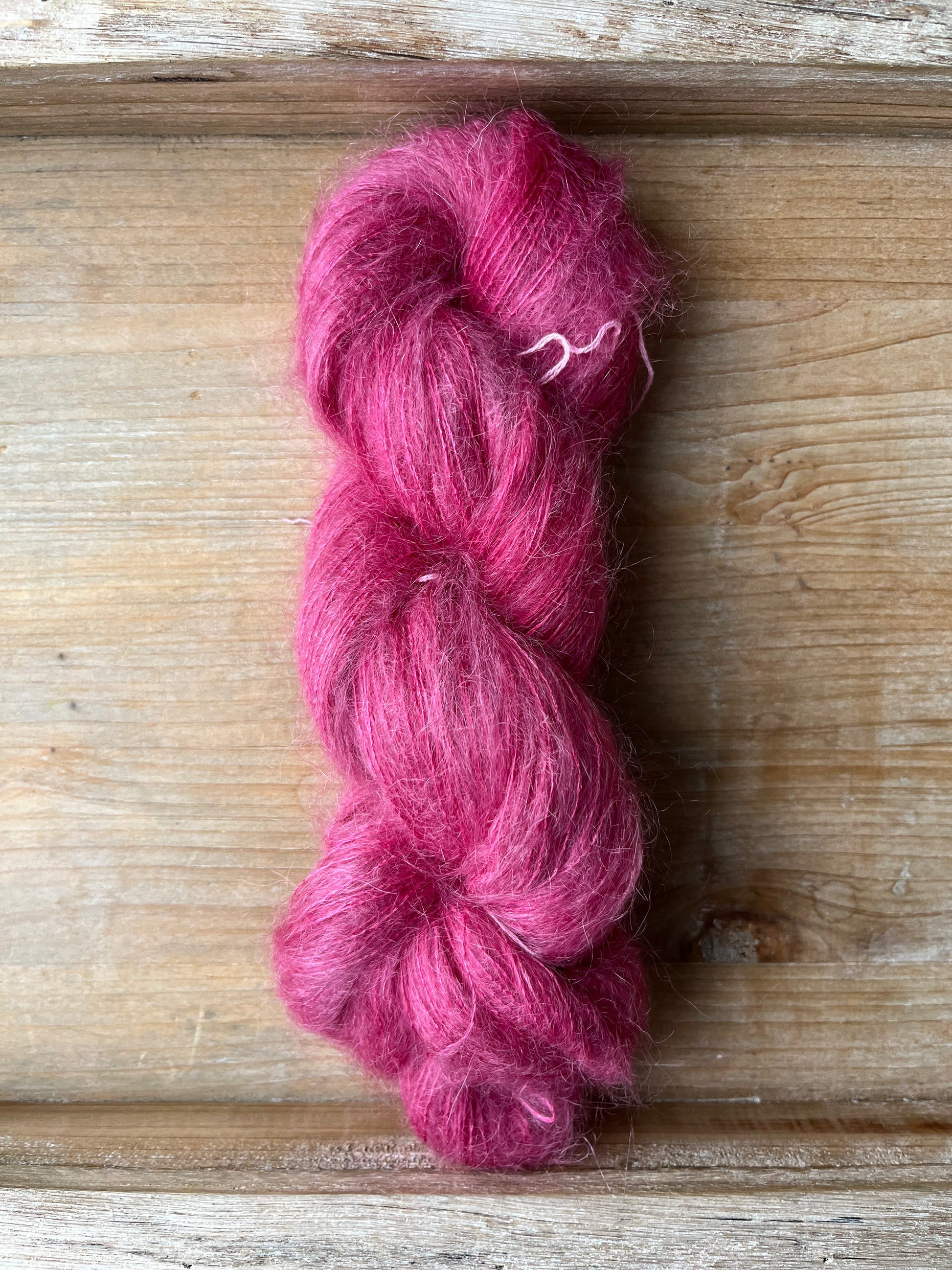 Mohair Halo Base: A delicate, lace weight yarn made up of 72% Superkid Mohair and 28% Mulberry Silk. Each skein is 50 grams and 460 yards, single ply construction. This yarn is lovely on it’s own, but is also amazing when held together with another yarn base. The fuzziness of the mohair creates a halo of colour within your project. Fibres in this base are sourced from South Africa. Hand wash only, lay flat to dry.