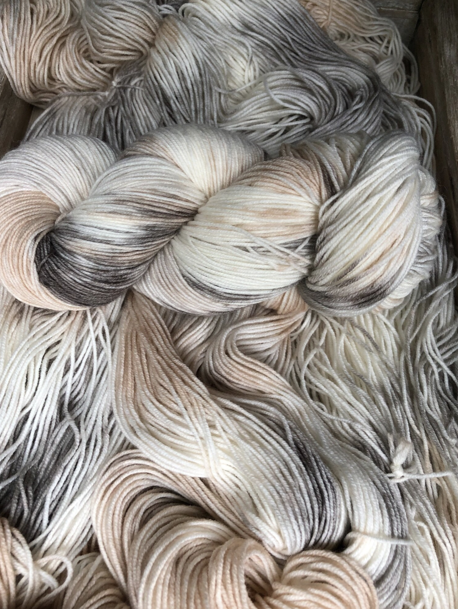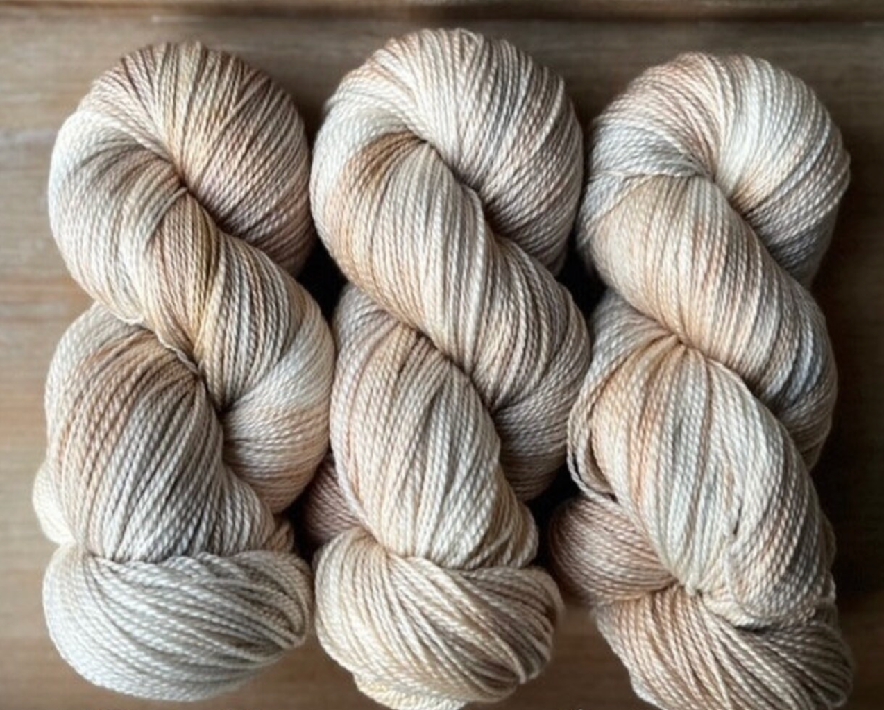 Luxe Sock Base: Luxe Sock is made up of 75% Ultra Fine Merino Wool, 15% Mulberry Silk, and 10% Cashmere. Each skien is 100 grams and 437 yards, 2ply construction. This yarn base is heavenly soft against the skin, and perfect for a special project calling for a high end fingering weight yarn. The Mulberry Silk adds drape and lustre, and the cashmere creates a fuzzy halo effect as you work with it. The colours of dye tend to shine through, looking much more striking and rich compared to some of my samples on Superwash bases. Fibres in this base are sourced from Australia, the wool used in this yarn is ethically produced from sheep that have NOT been mulesed. Hand wash only, lay flat to dry.