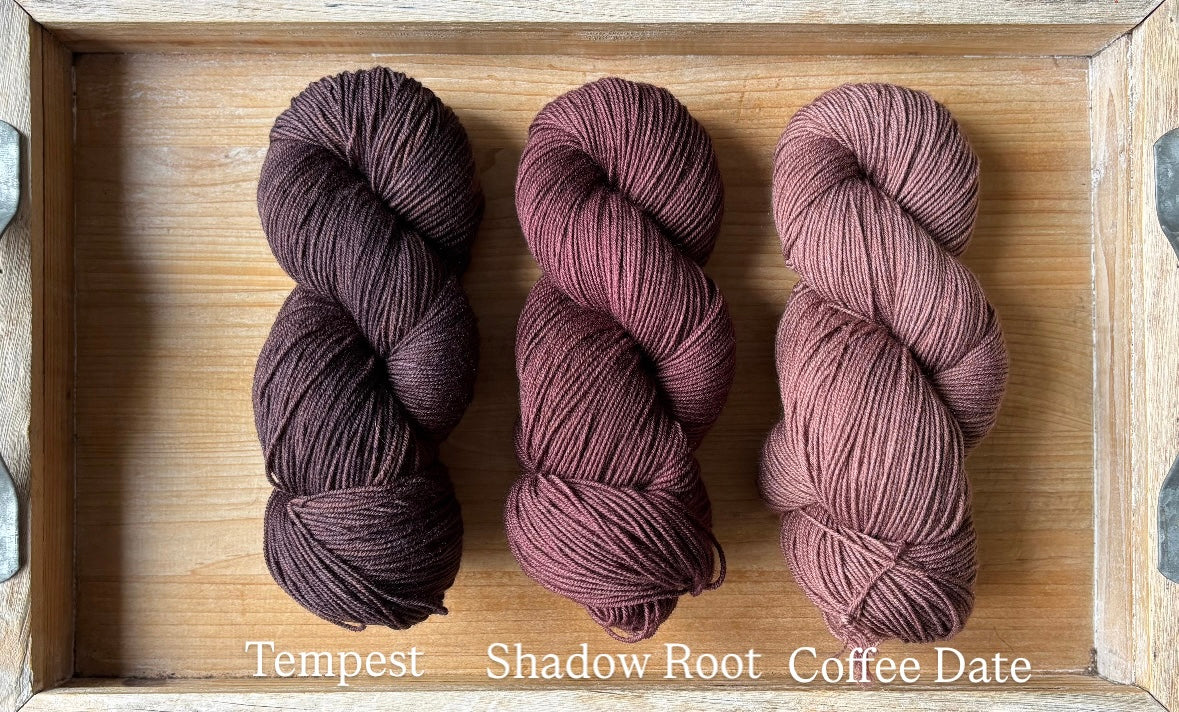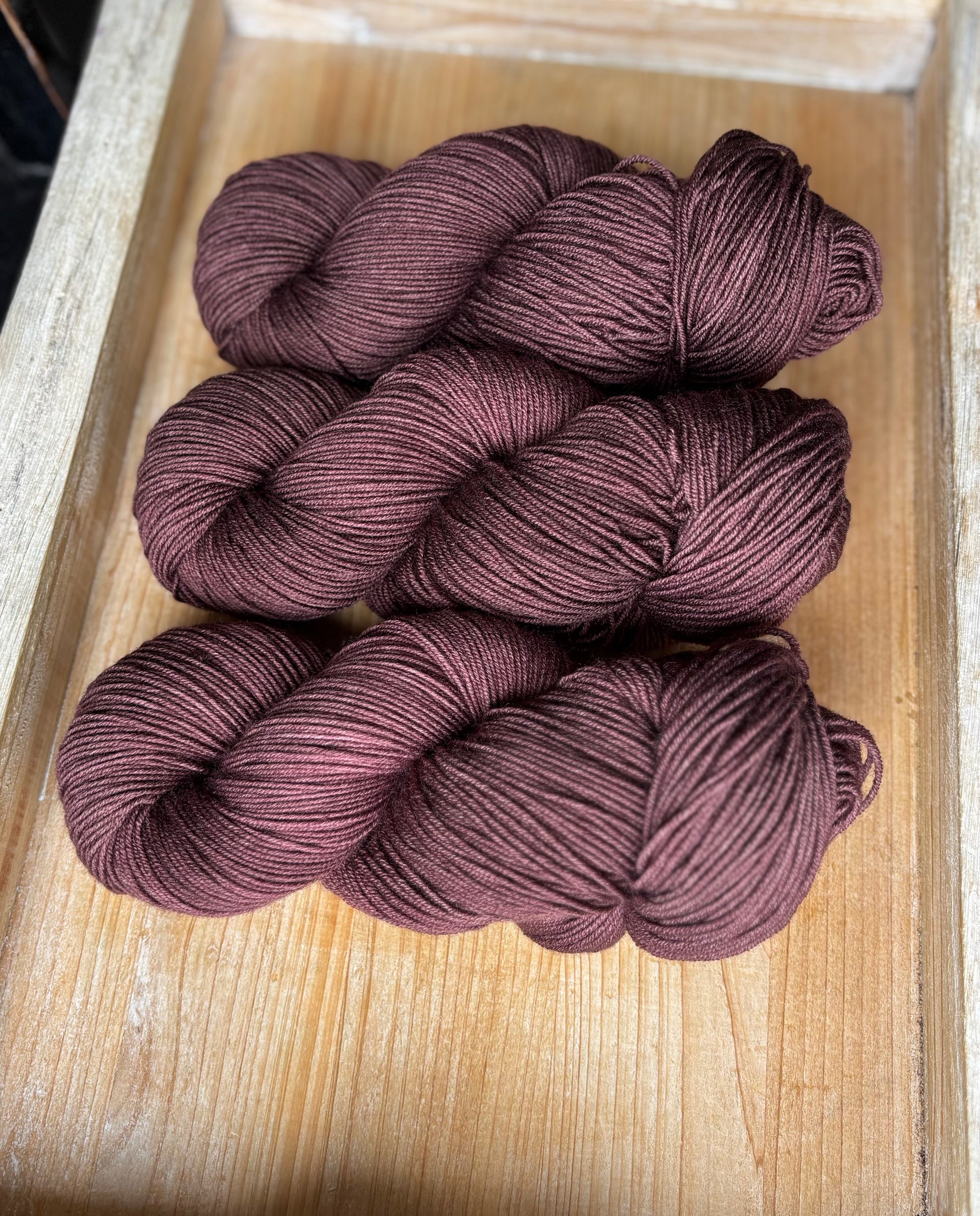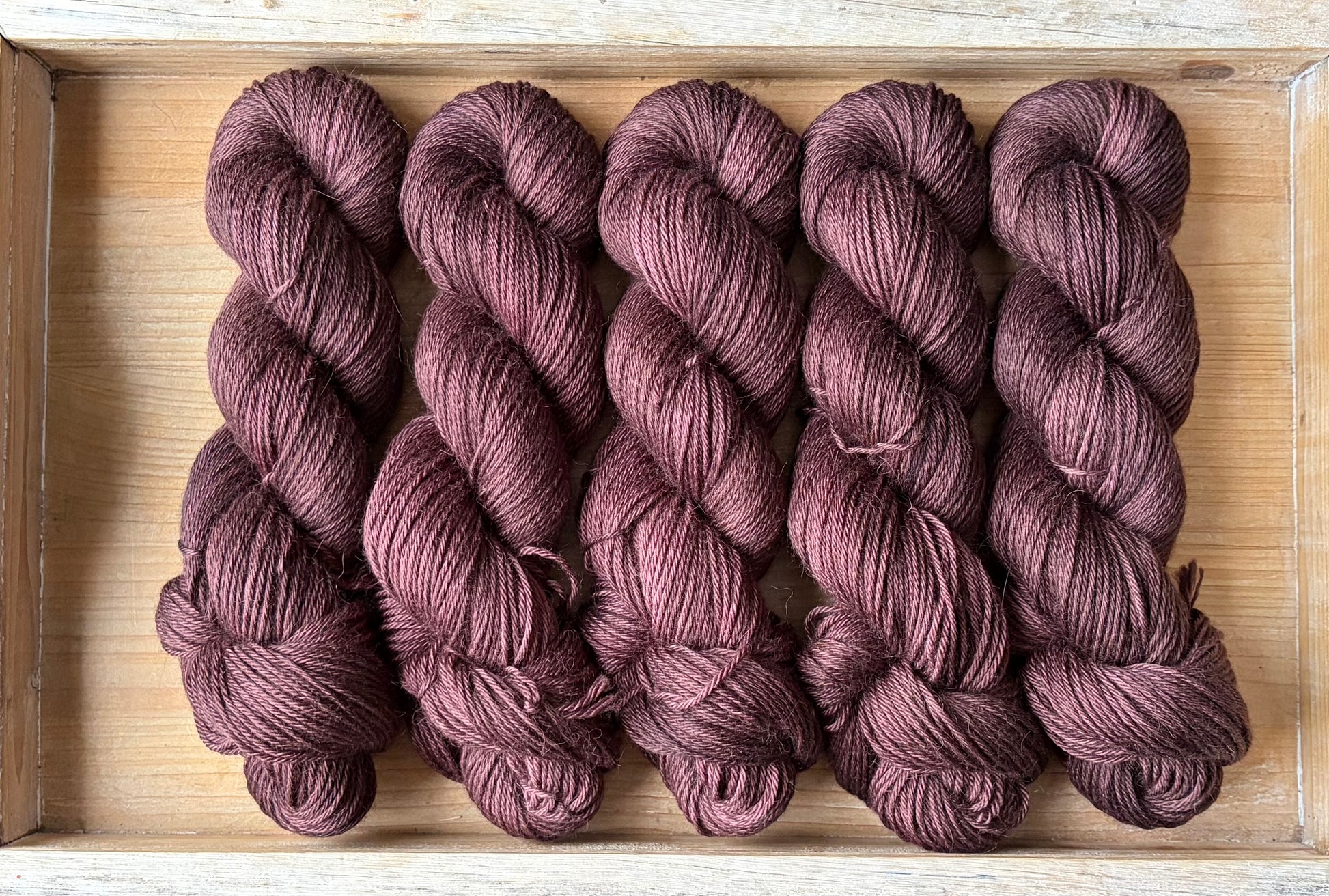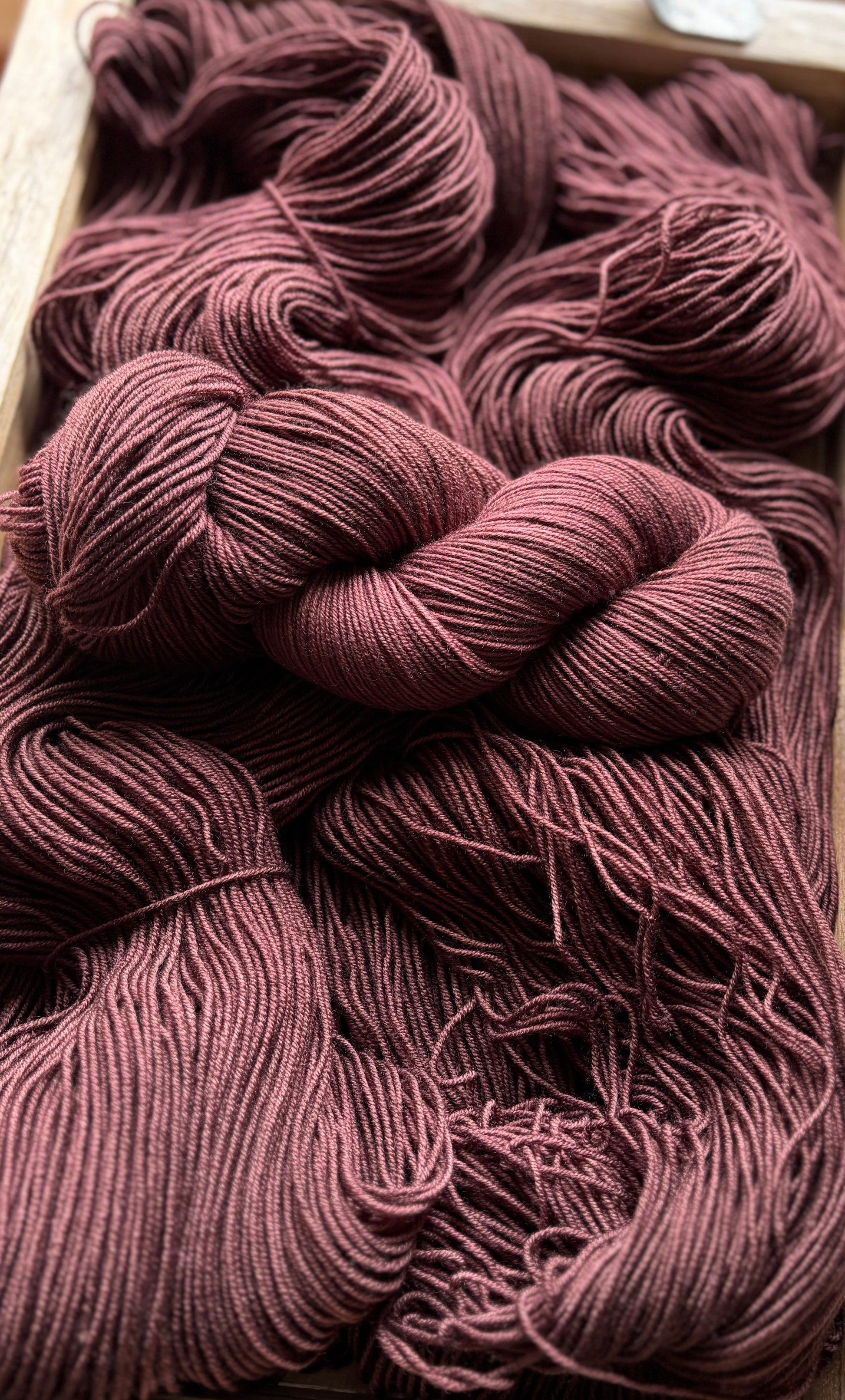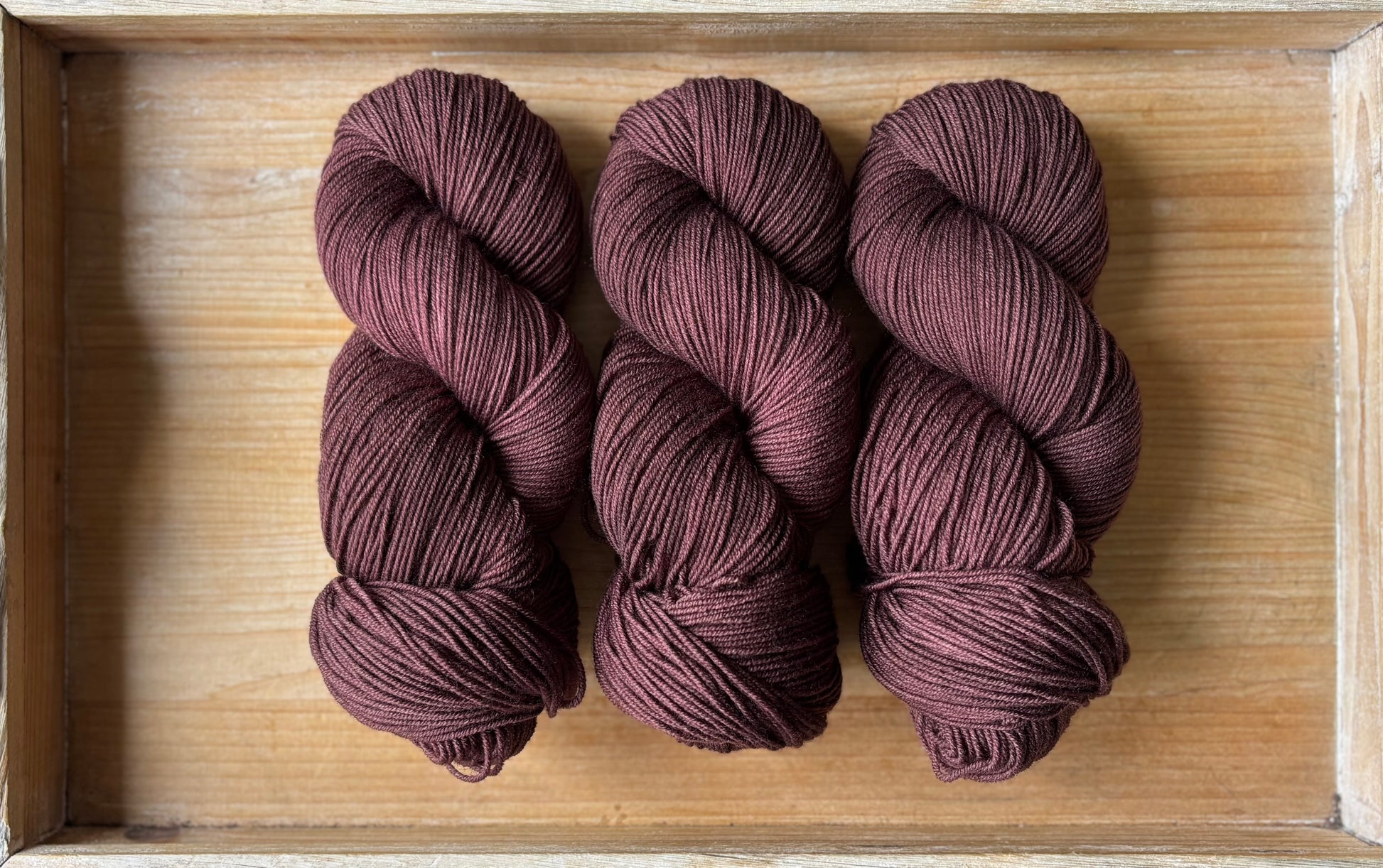 Luxe Sock Base: Luxe Sock is made up of 75% Ultra Fine Merino Wool, 15% Mulberry Silk, and 10% Cashmere. Each skien is 100 grams and 437 yards, 2ply construction. This yarn base is heavenly soft against the skin, and perfect for a special project calling for a high end fingering weight yarn. The Mulberry Silk adds drape and lustre, and the cashmere creates a fuzzy halo effect as you work with it. The colours of dye tend to shine through, looking much more striking and rich compared to some of my samples on Superwash bases. Fibres in this base are sourced from Australia, the wool used in this yarn is ethically produced from sheep that have NOT been mulesed. Hand wash only, lay flat to dry.