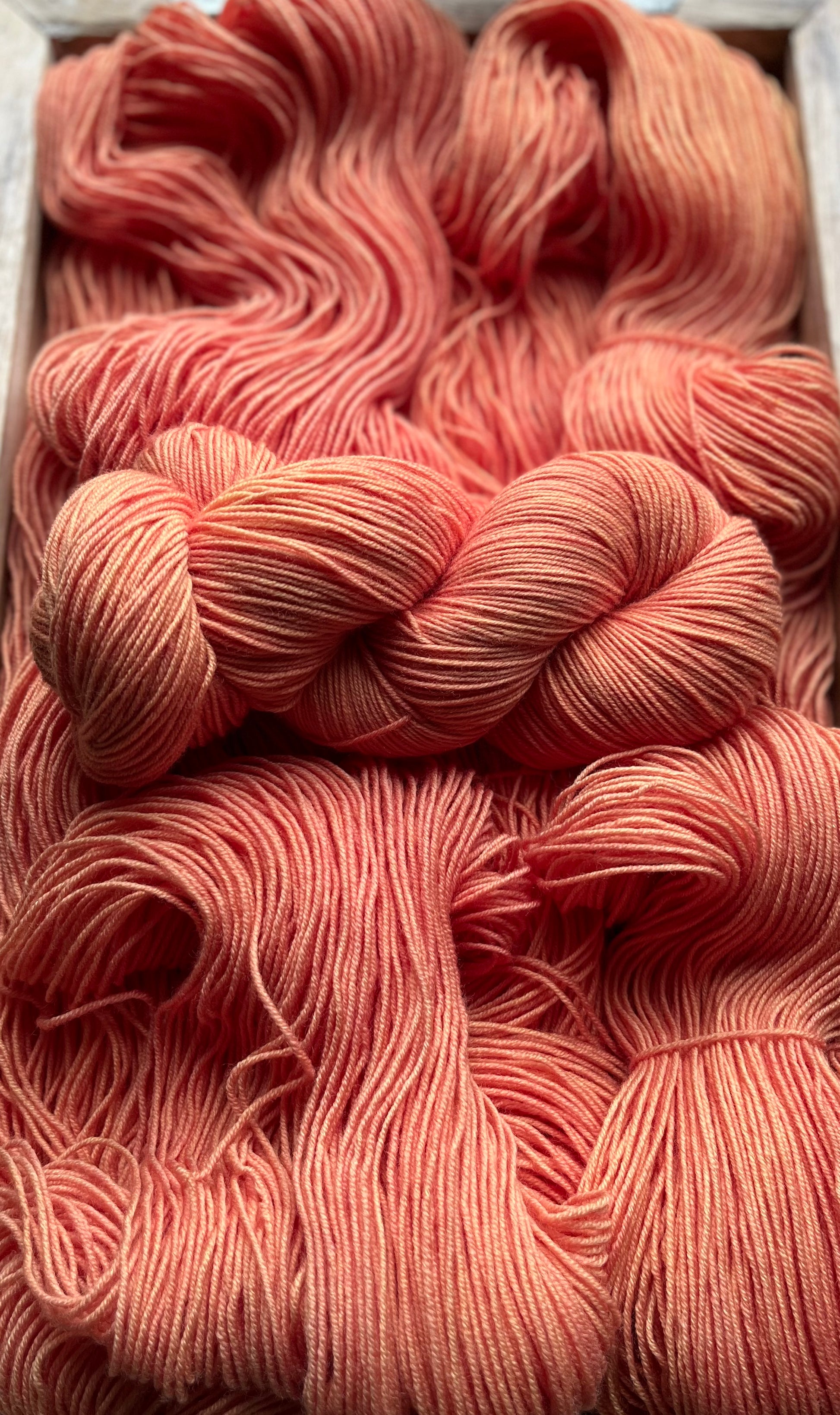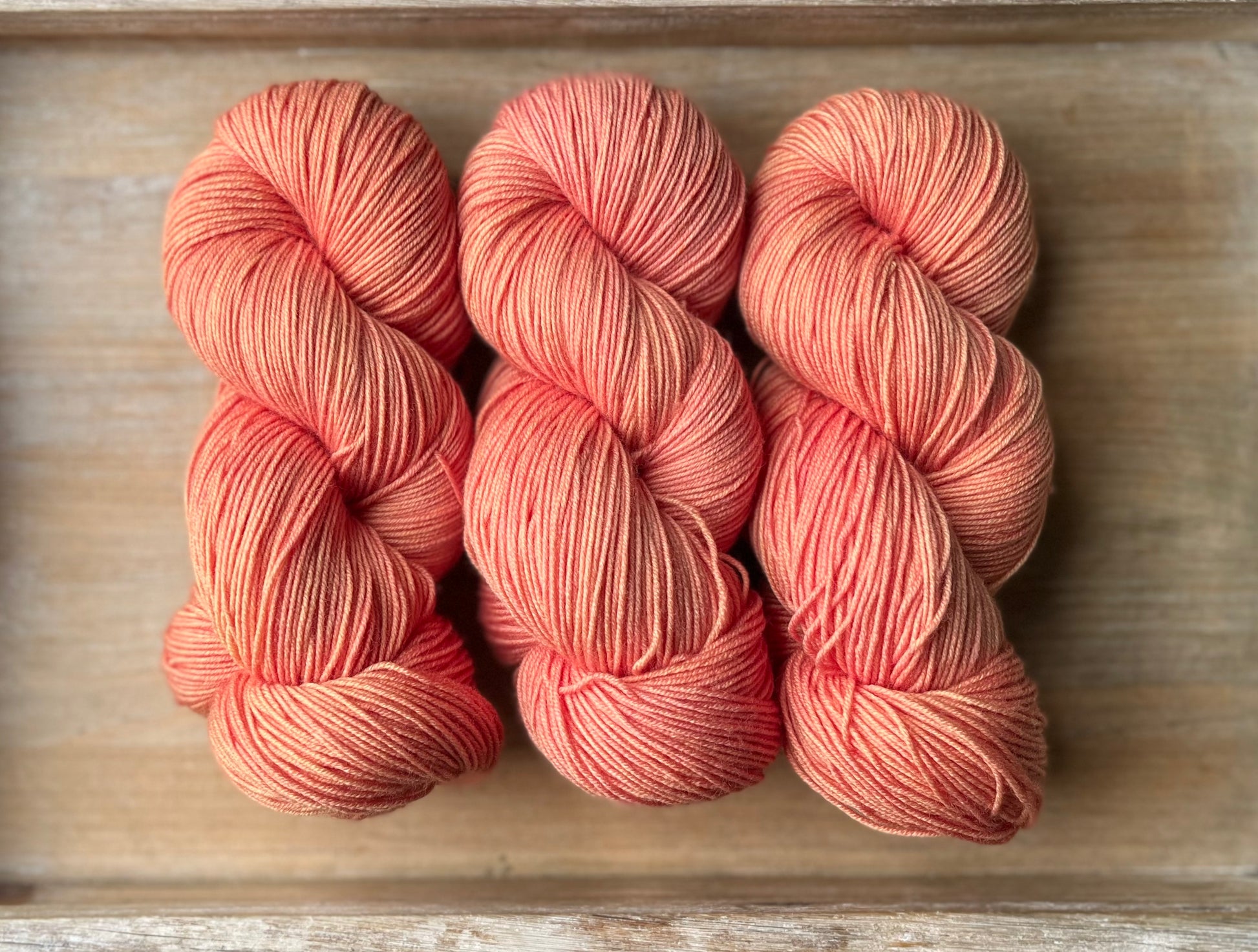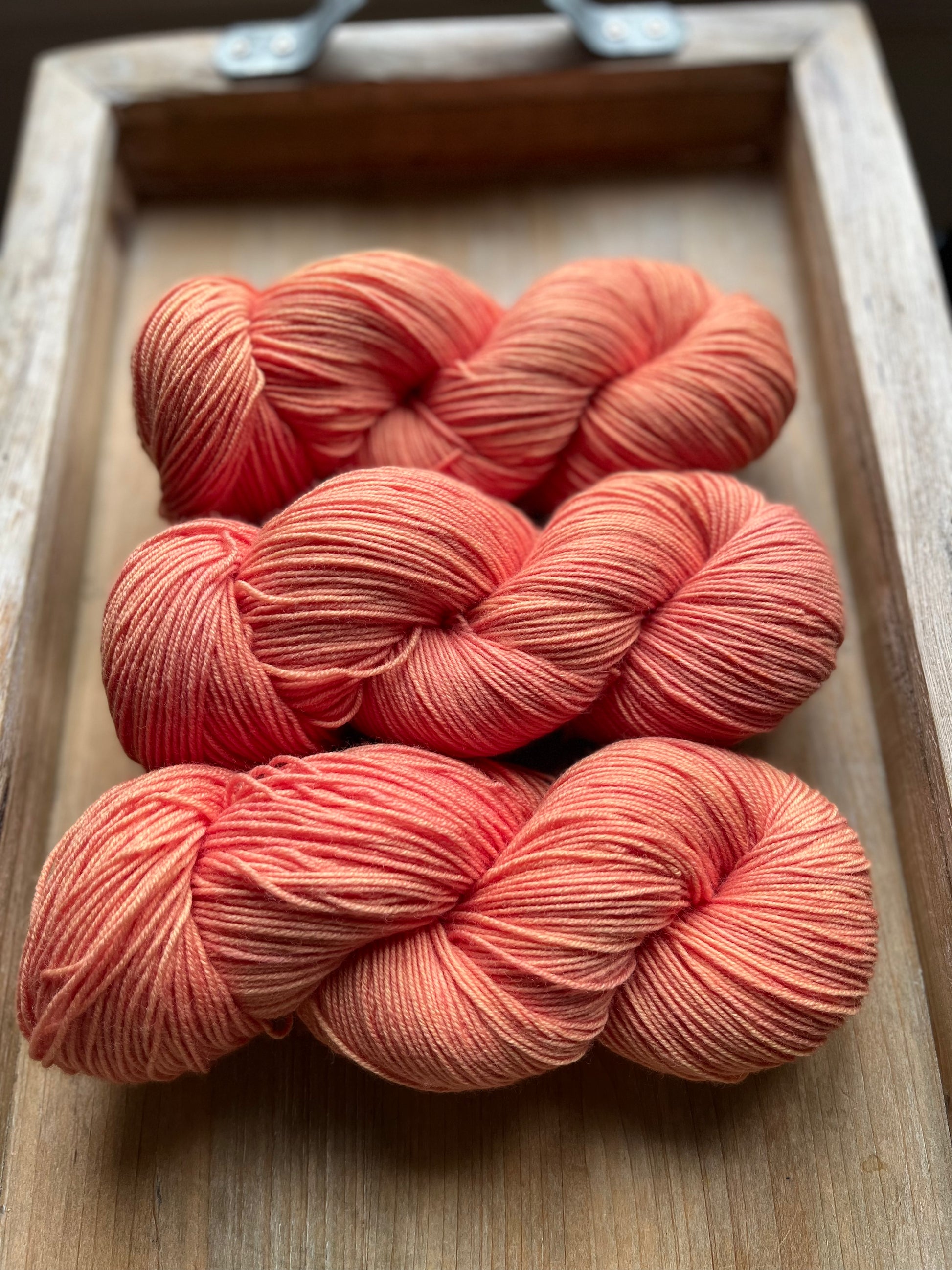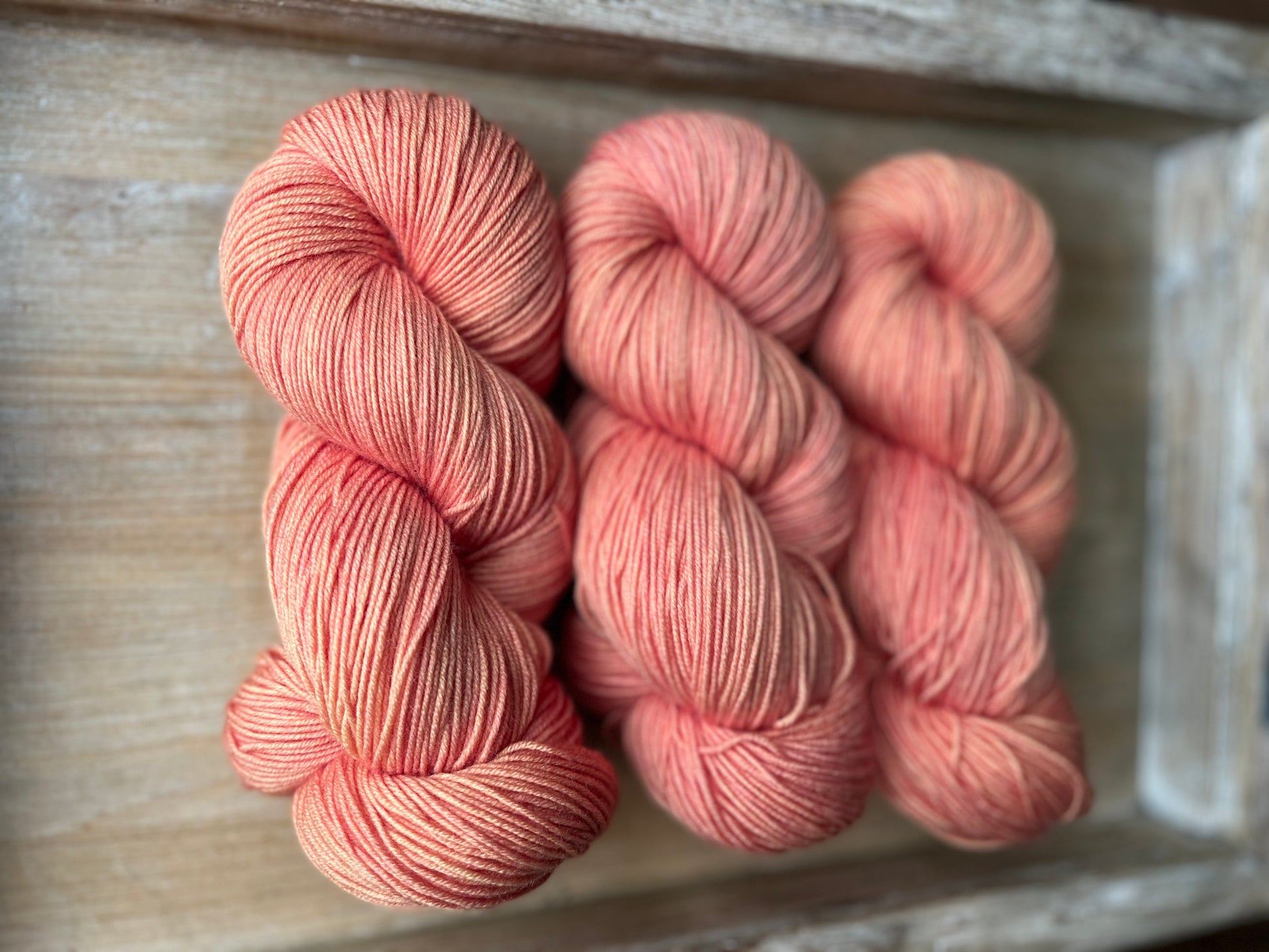 Luxe Sock Base: Luxe Sock is made up of 75% Ultra Fine Merino Wool, 15% Mulberry Silk, and 10% Cashmere. Each skien is 100 grams and 437 yards, 2ply construction. This yarn base is heavenly soft against the skin, and perfect for a special project calling for a high end fingering weight yarn. The Mulberry Silk adds drape and lustre, and the cashmere creates a fuzzy halo effect as you work with it. The colours of dye tend to shine through, looking much more striking and rich compared to some of my samples on Superwash bases. Fibres in this base are sourced from Australia, the wool used in this yarn is ethically produced from sheep that have NOT been mulesed. Hand wash only, lay flat to dry.