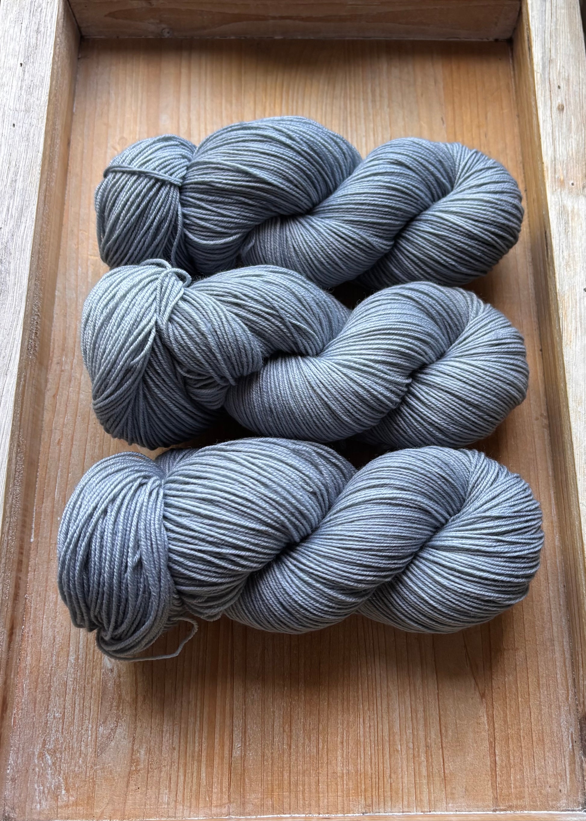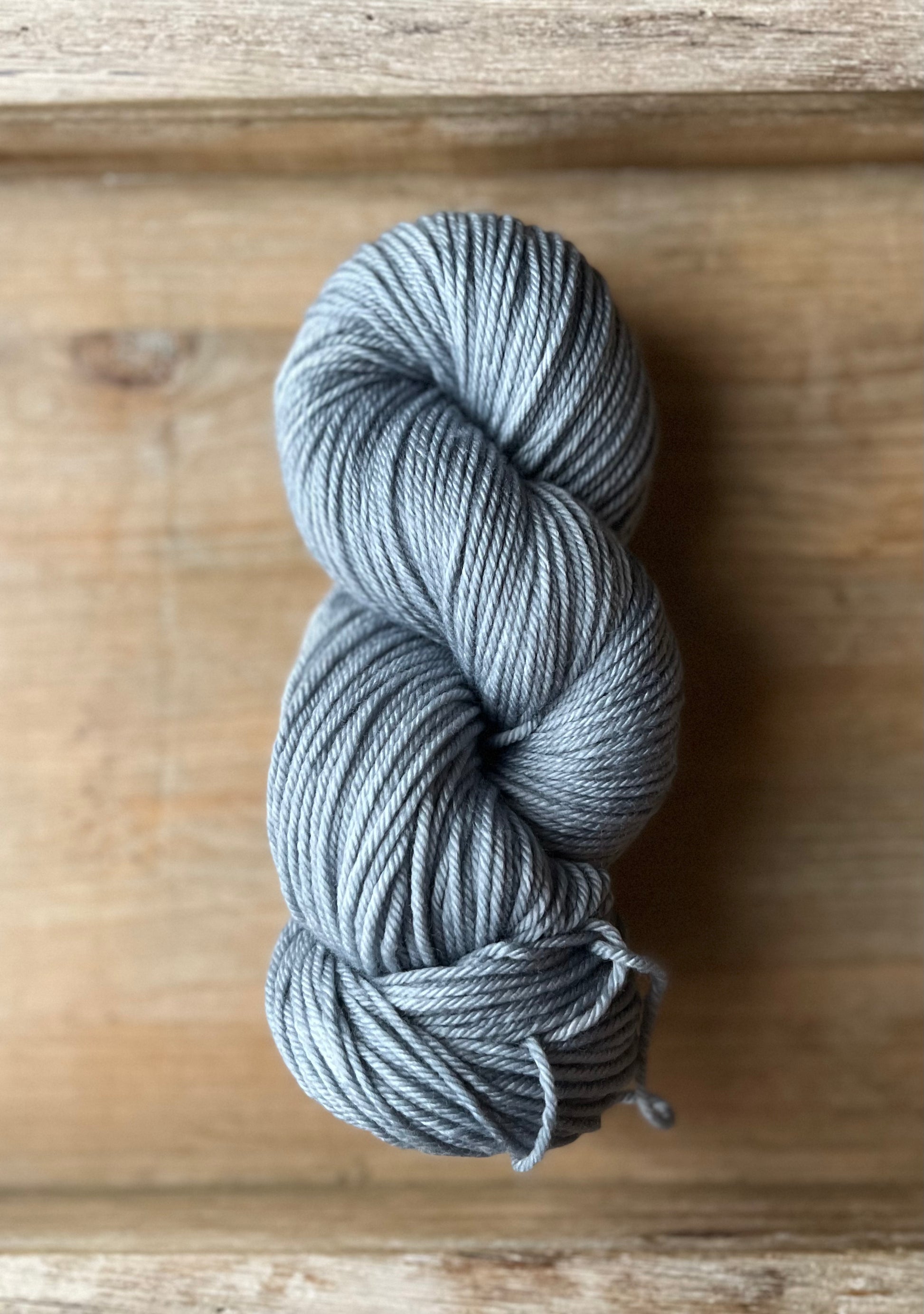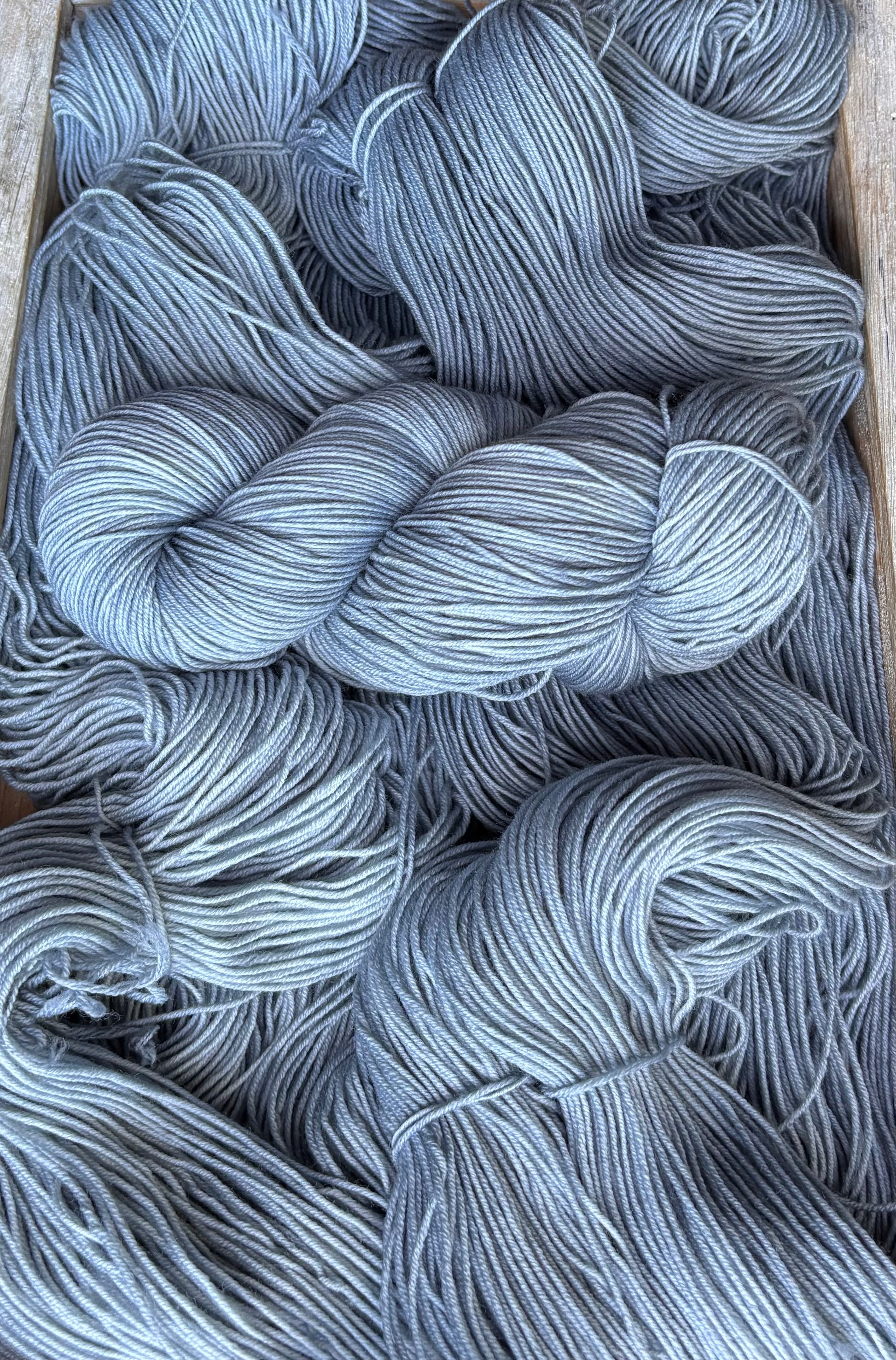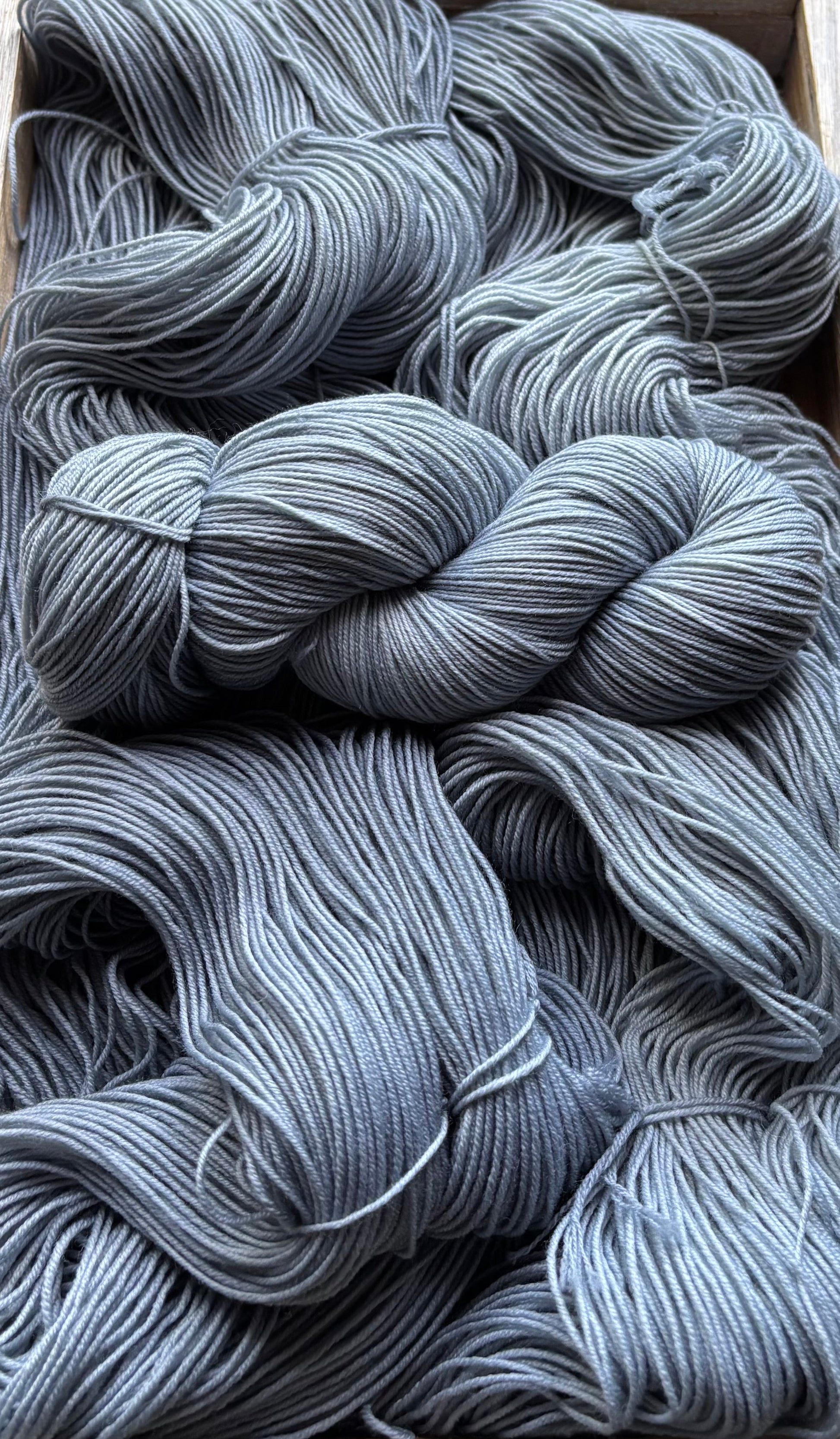 Shiver is a beautiful silver blue, ultra wearable and plays so well with other colourways. The first photo appears more grey than it actually is, please see the group photo of 3 skeins side by side for more accurate colour representation!