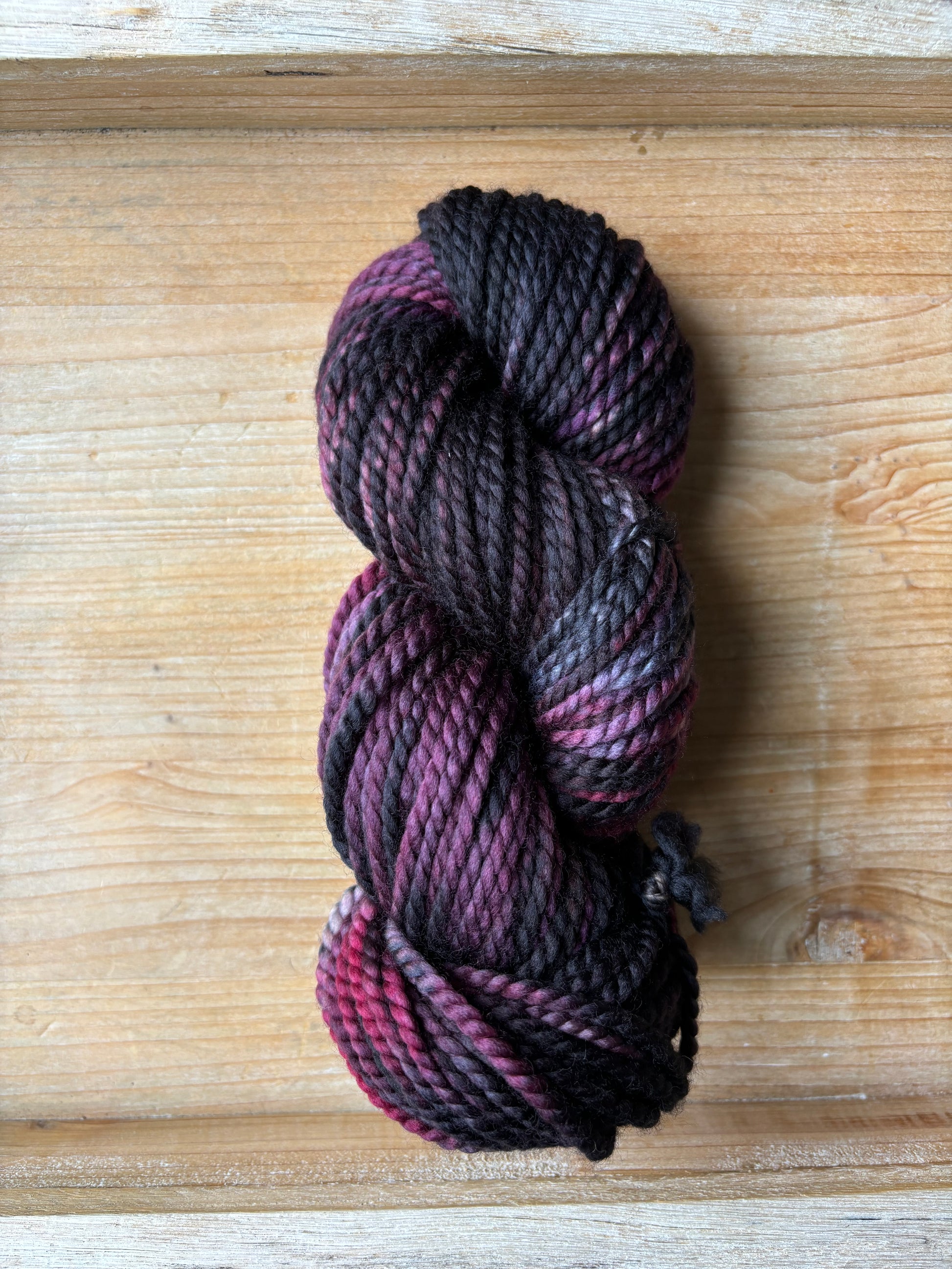 Hidden Bulky Base: Once a little shop secret, this base is now available all the time! The thickest of all my bases, this 100% Extra Fine Superwash Merino base is unbelievably soft next to the skin, and the dye colours simply shine through. Each skein is 100 grams and 109 yards, with a 2ply construction. Although made up of the same blend as the Classic Worsted Weight base, this yarn has a much softer feel to it thanks to the Extra Fine Merino Wool. Fibres in this base are sourced from Australia, the wool used in this yarn is ethically produced from sheep that have NOT been mulesed.