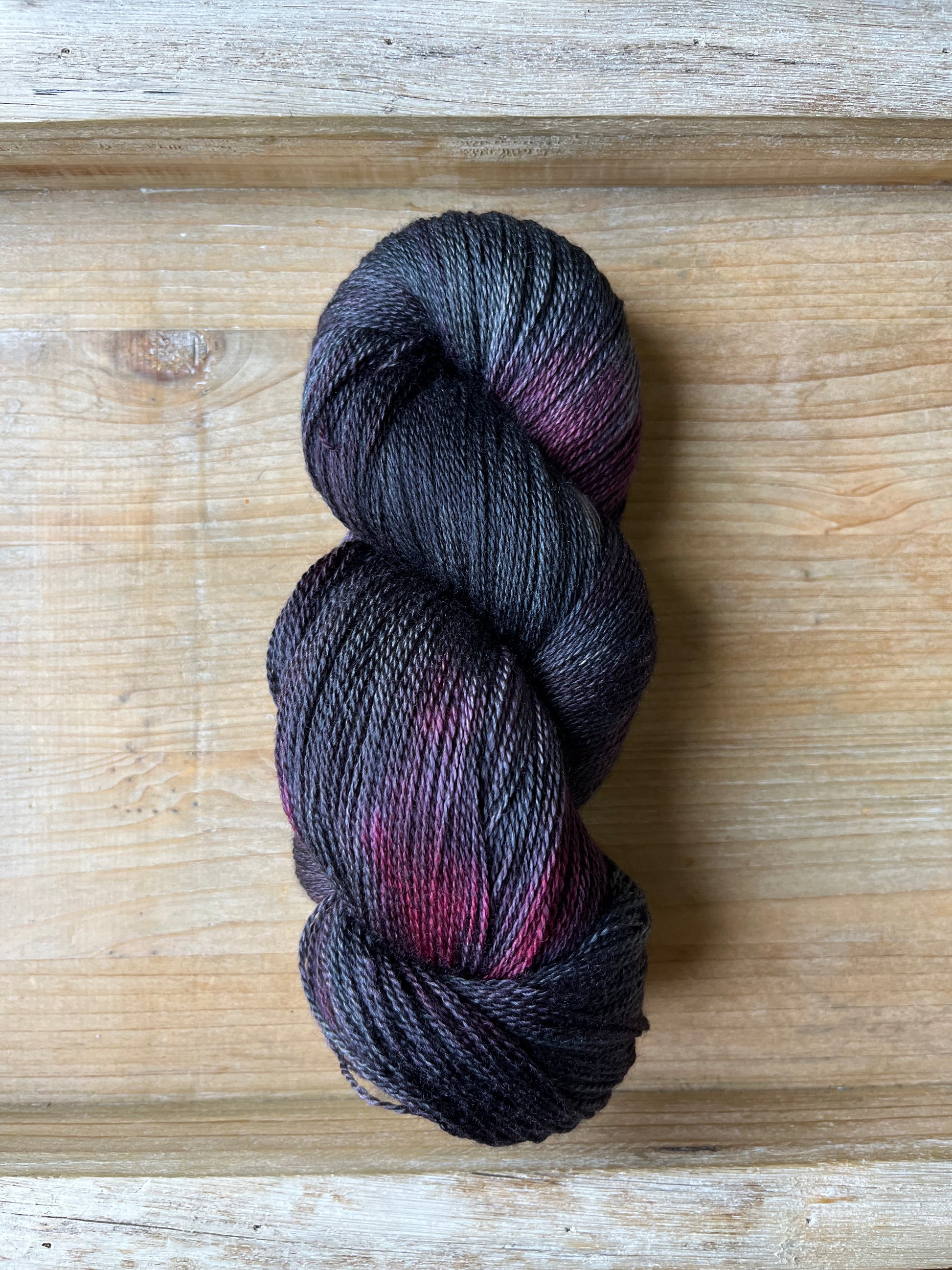 Lustrous Lace Base: This very thin, very fine lace weight yarn is both luxurious yet practical. Made up of 75% Extrafine Superwash Merino, and 25% Mulberry Silk, this base is so very soft, and the colours of dye simply glow throughout each skein. 100 grams and 875 yards, this yarn base is a 2ply construction. A stunning choice for shawls and light summer garments, this yarn base has a lovely drape and is very comfortable to wear next to the skin. Fibres in this base are sourced from Australia, the wool used in this yarn is ethically produced from sheep that have NOT been mulesed.. Hand wash only, lay flat to dry.