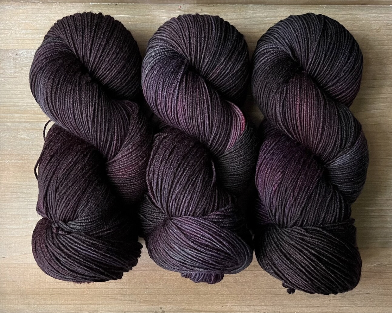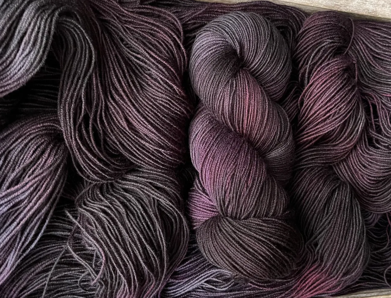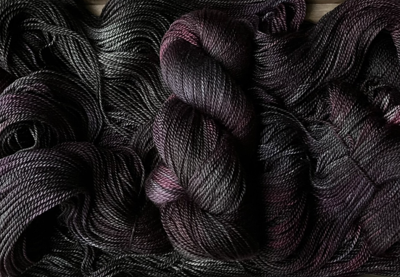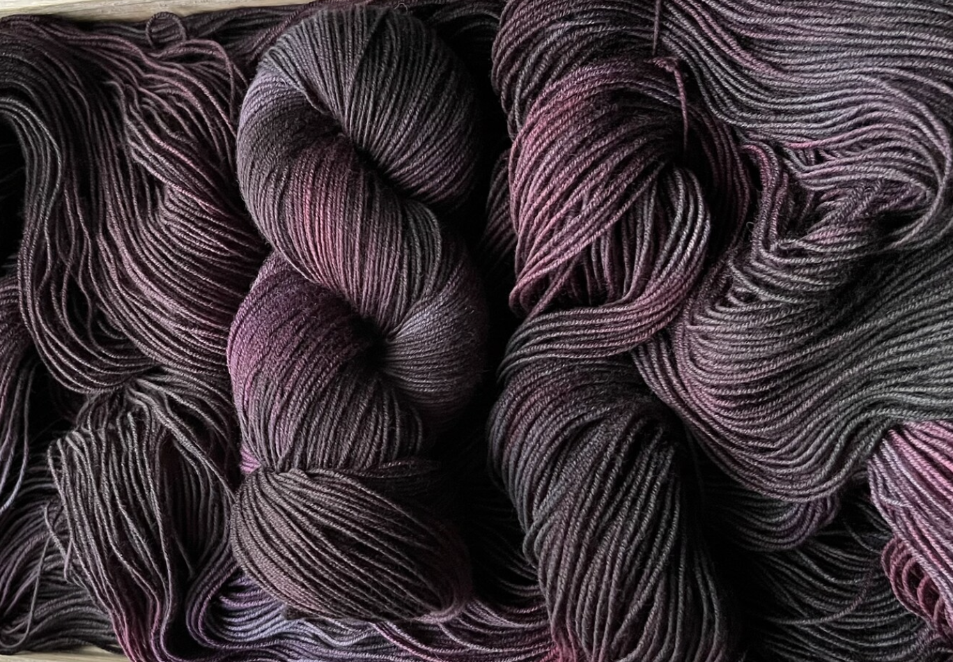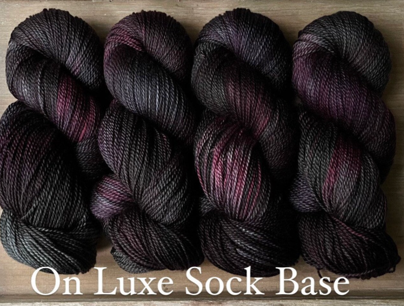 Luxe Sock Base: Luxe Sock is made up of 75% Ultra Fine Merino Wool, 15% Mulberry Silk, and 10% Cashmere. Each skien is 100 grams and 437 yards, 2ply construction. This yarn base is heavenly soft against the skin, and perfect for a special project calling for a high end fingering weight yarn. The Mulberry Silk adds drape and lustre, and the cashmere creates a fuzzy halo effect as you work with it. The colours of dye tend to shine through, looking much more striking and rich compared to some of my samples on Superwash bases. Fibres in this base are sourced from Australia, the wool used in this yarn is ethically produced from sheep that have NOT been mulesed. Hand wash only, lay flat to dry.