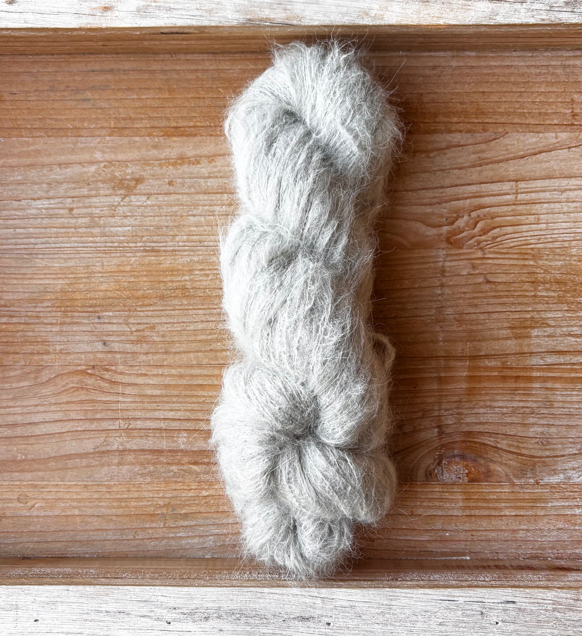 Mohair Halo Base: A delicate, lace weight yarn made up of 72% Superkid Mohair and 28% Mulberry Silk. Each skein is 50 grams and 460 yards, single ply construction. This yarn is lovely on it’s own, but is also amazing when held together with another yarn base. The fuzziness of the mohair creates a halo of colour within your project. Fibres in this base are sourced from South Africa. Hand wash only, lay flat to dry.