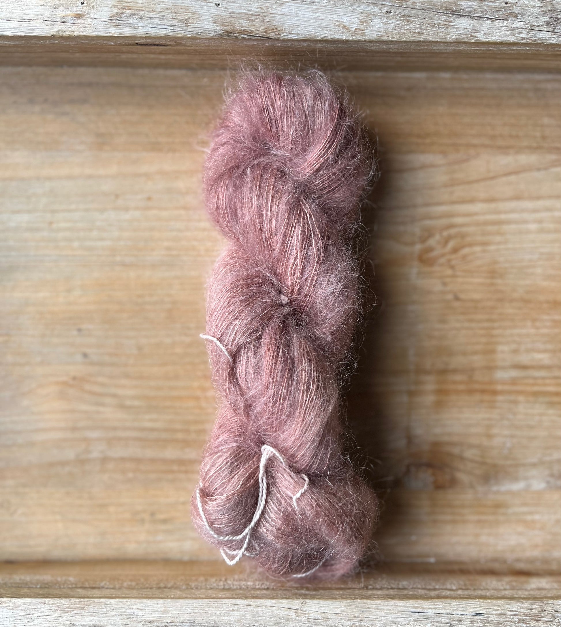 Mohair Halo Base: A delicate, lace weight yarn made up of 72% Superkid Mohair and 28% Mulberry Silk. Each skein is 50 grams and 460 yards, single ply construction. This yarn is lovely on it’s own, but is also amazing when held together with another yarn base. The fuzziness of the mohair creates a halo of colour within your project. Fibres in this base are sourced from South Africa. Hand wash only, lay flat to dry.