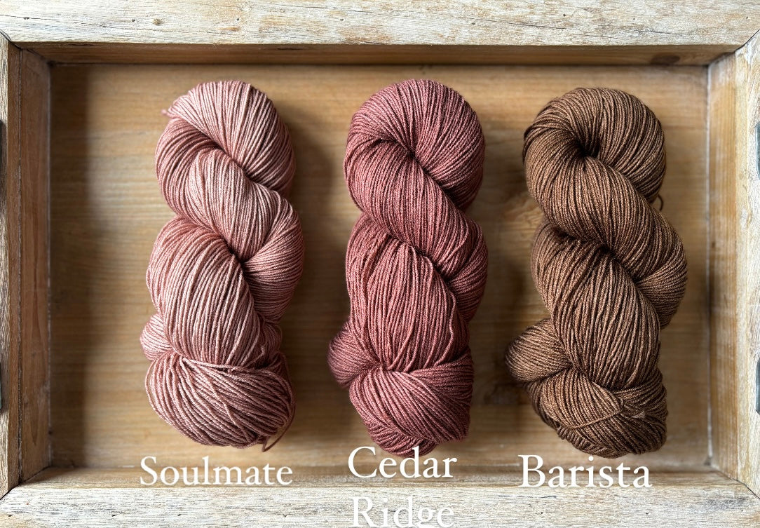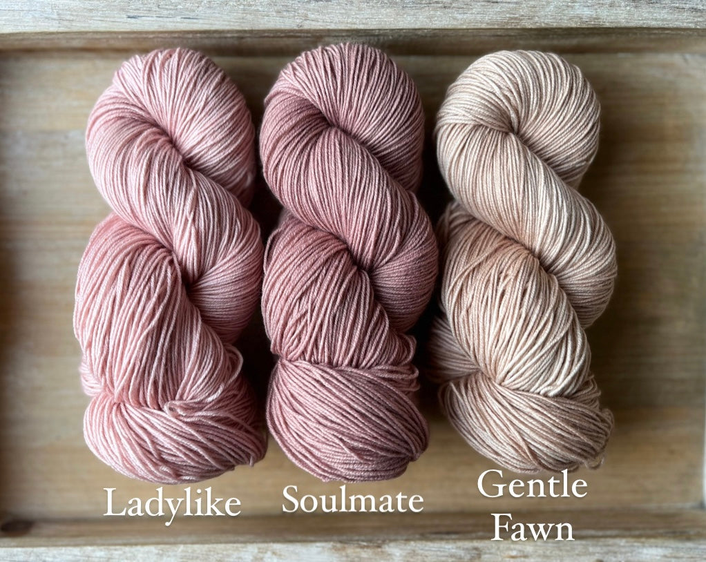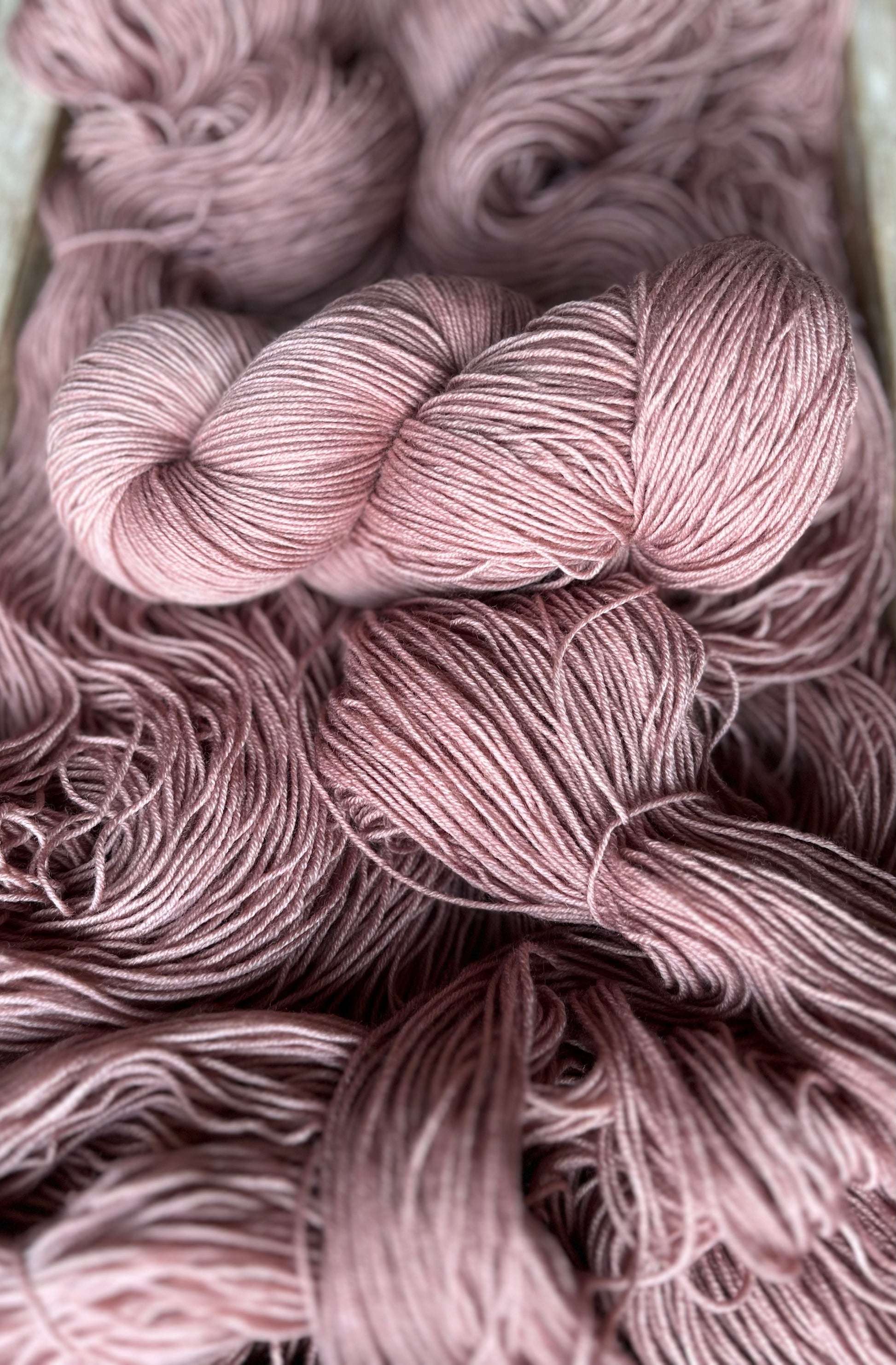 Luxe Sock Base: Luxe Sock is made up of 75% Ultra Fine Merino Wool, 15% Mulberry Silk, and 10% Cashmere. Each skien is 100 grams and 437 yards, 2ply construction. This yarn base is heavenly soft against the skin, and perfect for a special project calling for a high end fingering weight yarn. The Mulberry Silk adds drape and lustre, and the cashmere creates a fuzzy halo effect as you work with it. The colours of dye tend to shine through, looking much more striking and rich compared to some of my samples on Superwash bases. Fibres in this base are sourced from Australia, the wool used in this yarn is ethically produced from sheep that have NOT been mulesed. Hand wash only, lay flat to dry.